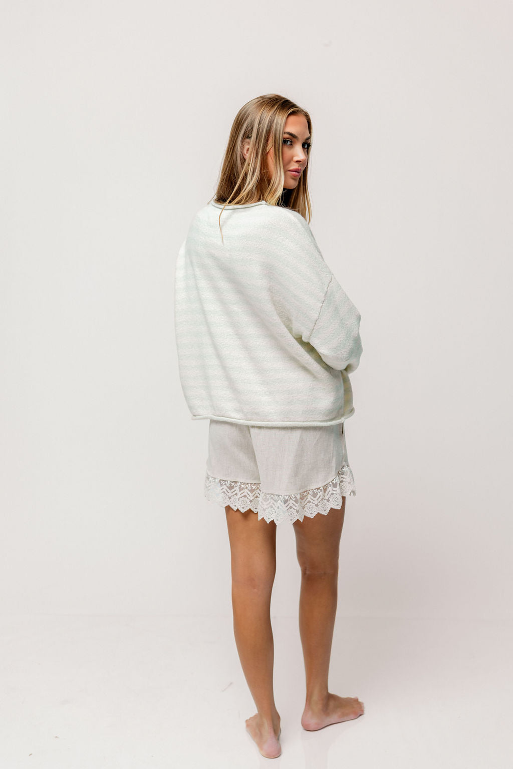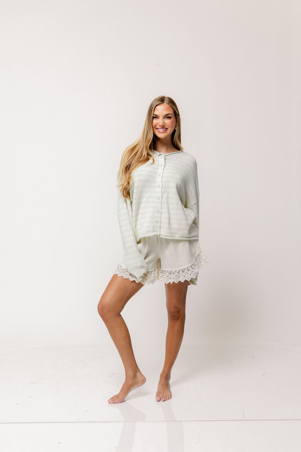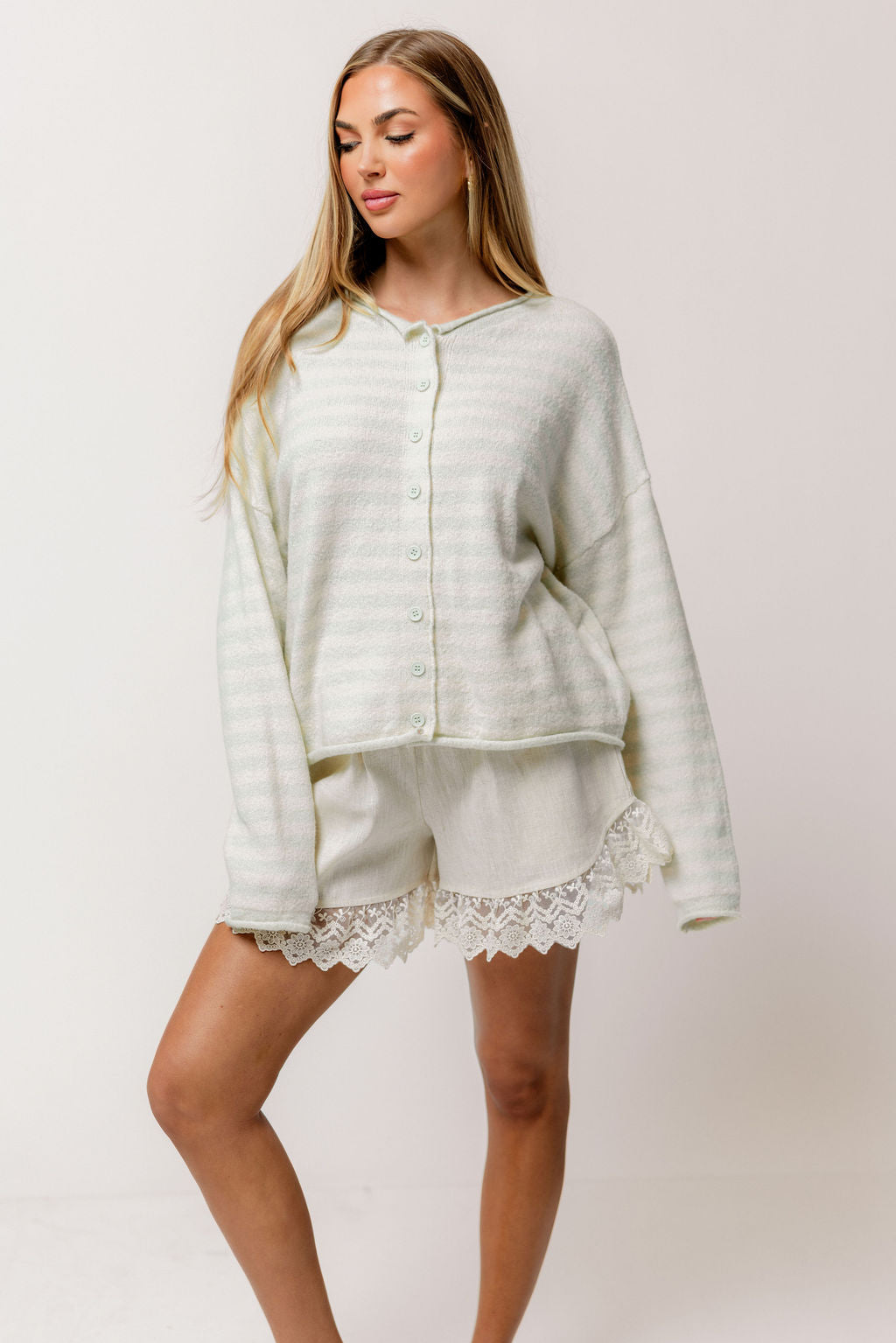 Ciela Striped Cardigan Top in Dusty Mint