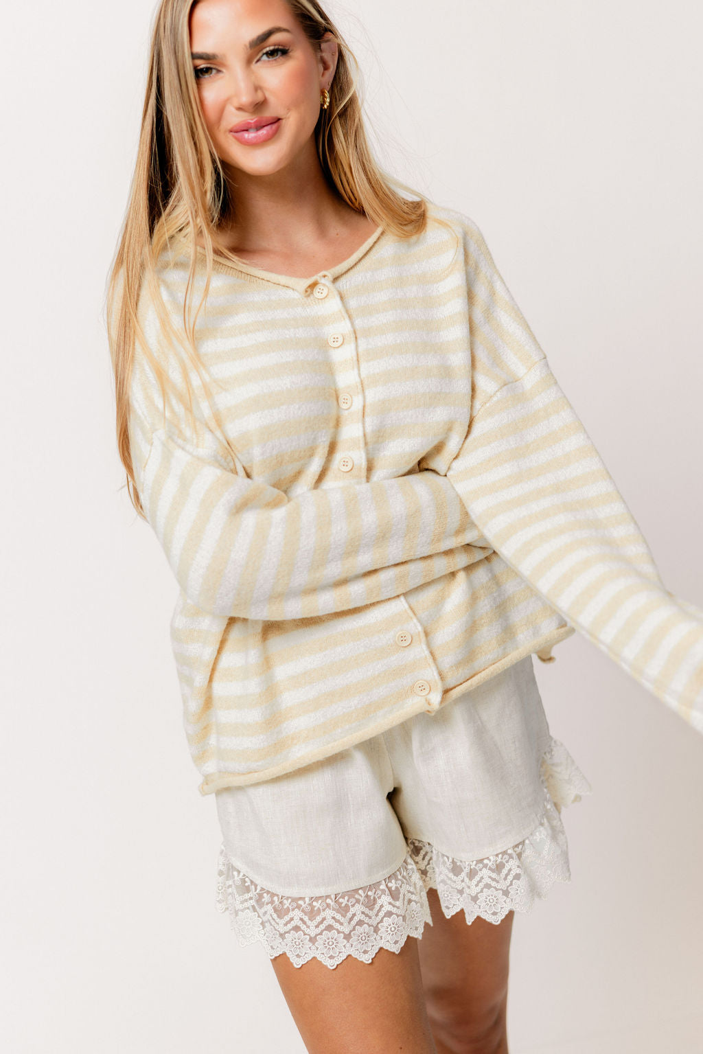 Ciela Striped Cardigan Top in Natural