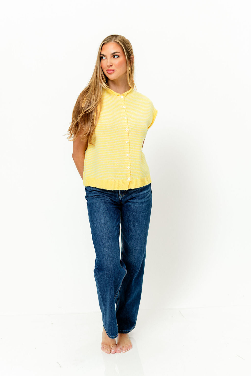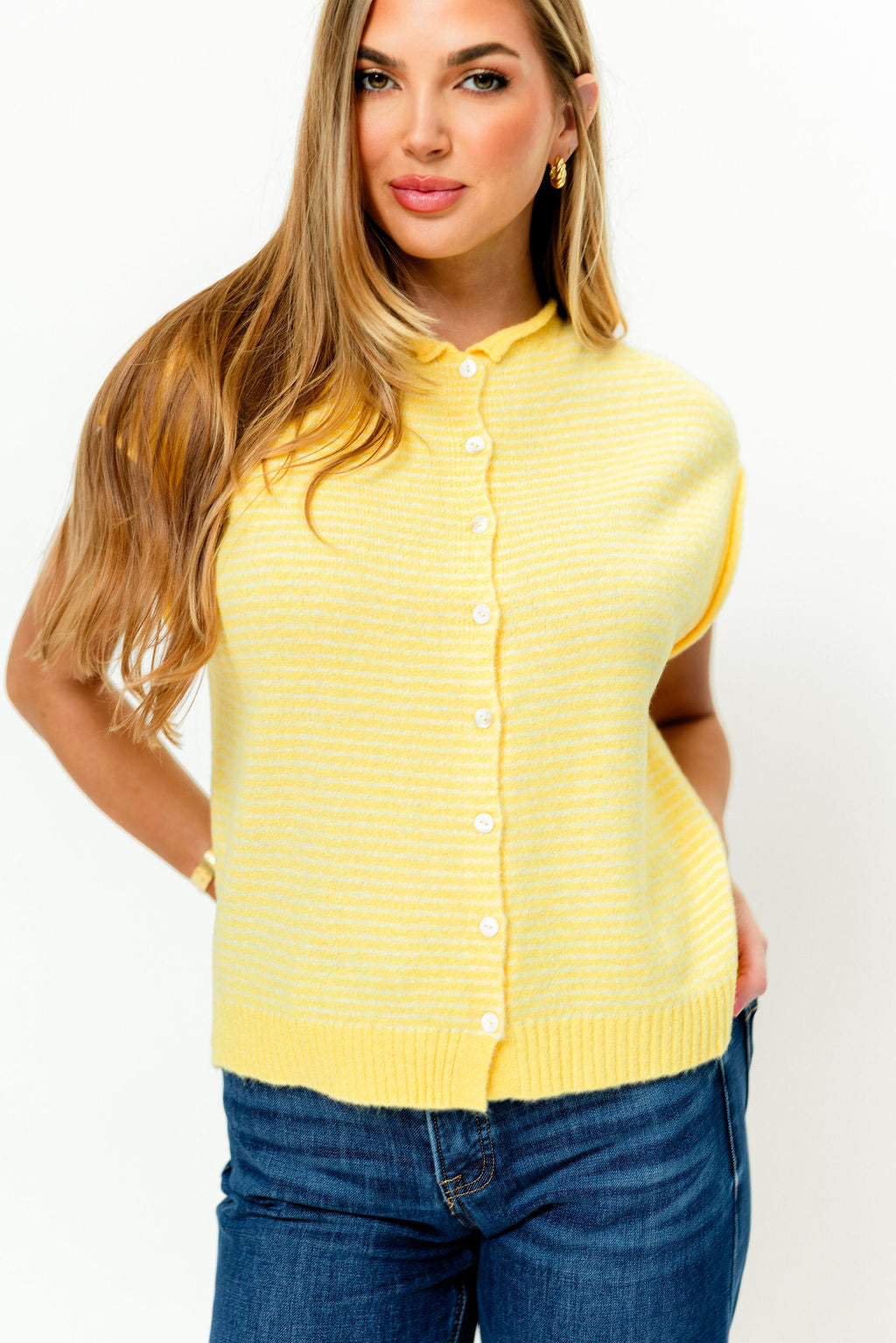 Arely Striped Sweater Vest Cardigan in Butter - Nursing Friendly