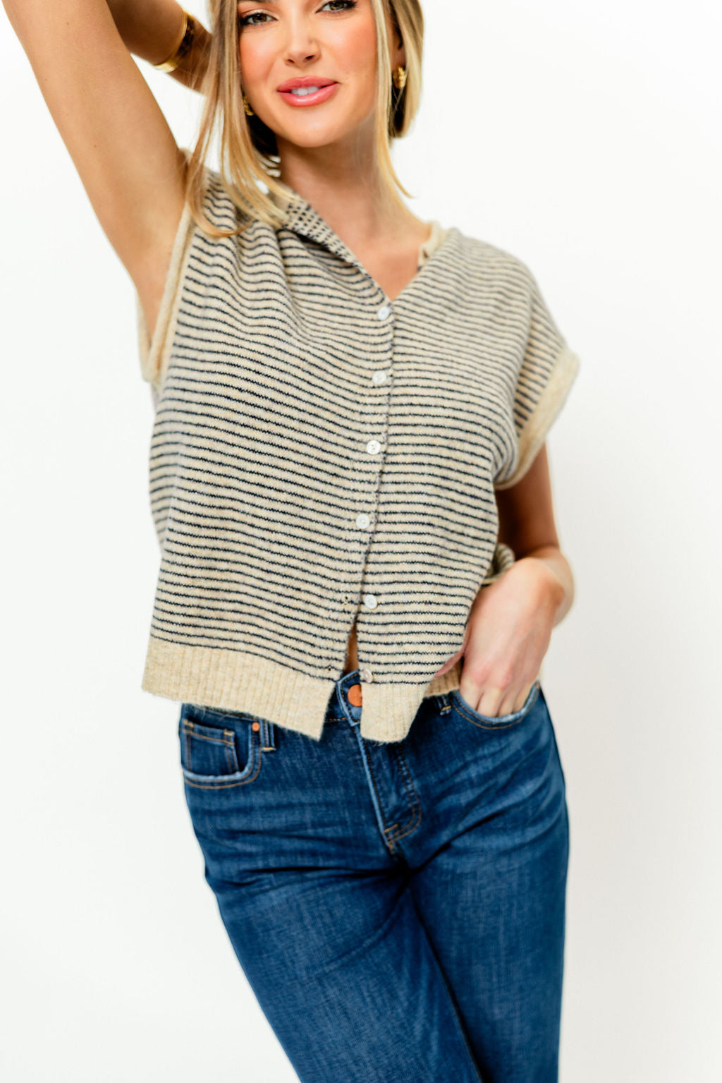 Arely Striped Sweater Vest Cardigan in Natural - Nursing Friendly
