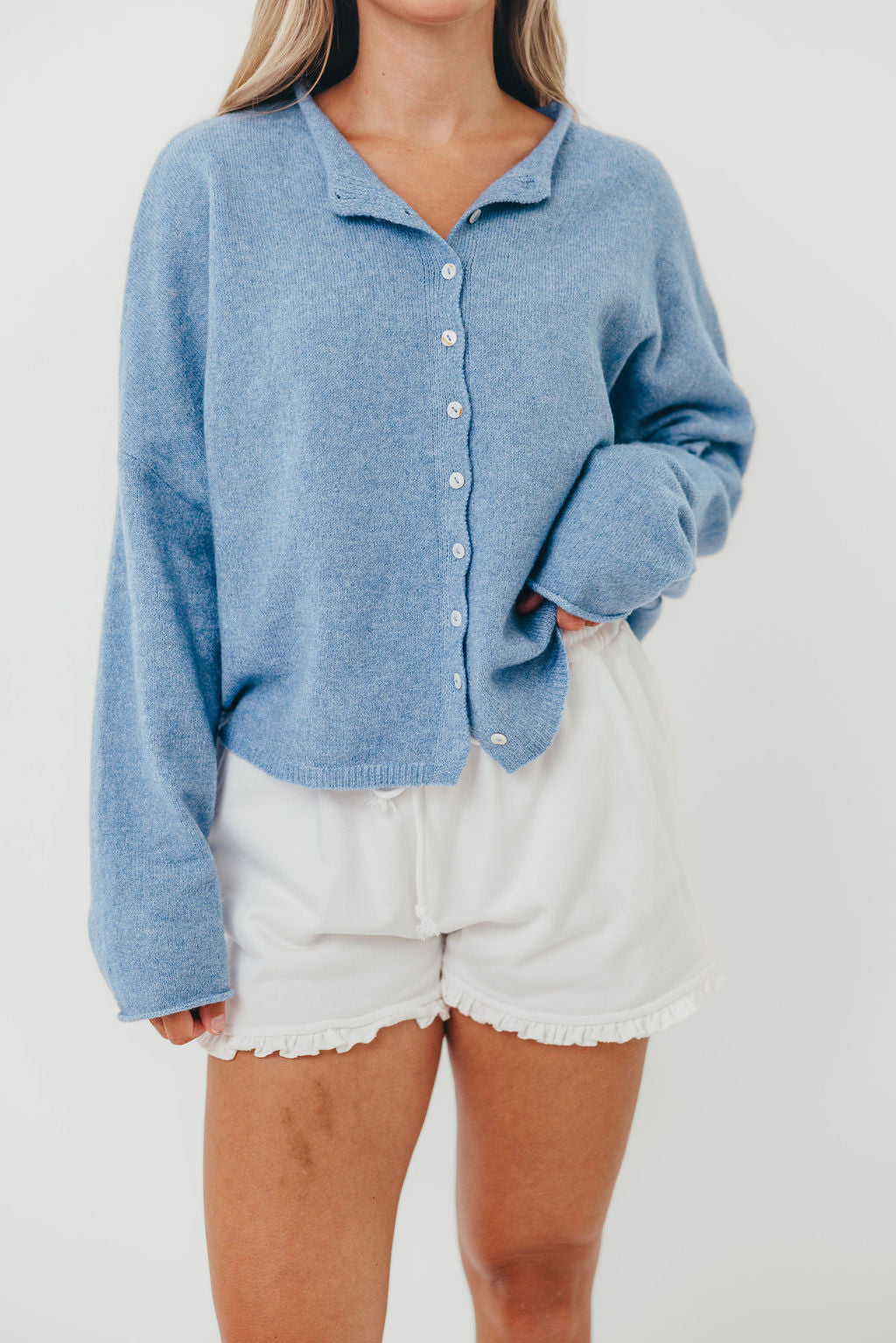 GARMENT DETAILS: Soft and feminine cardigan with long sleeves and rolled hem. Features dainty button front closure.