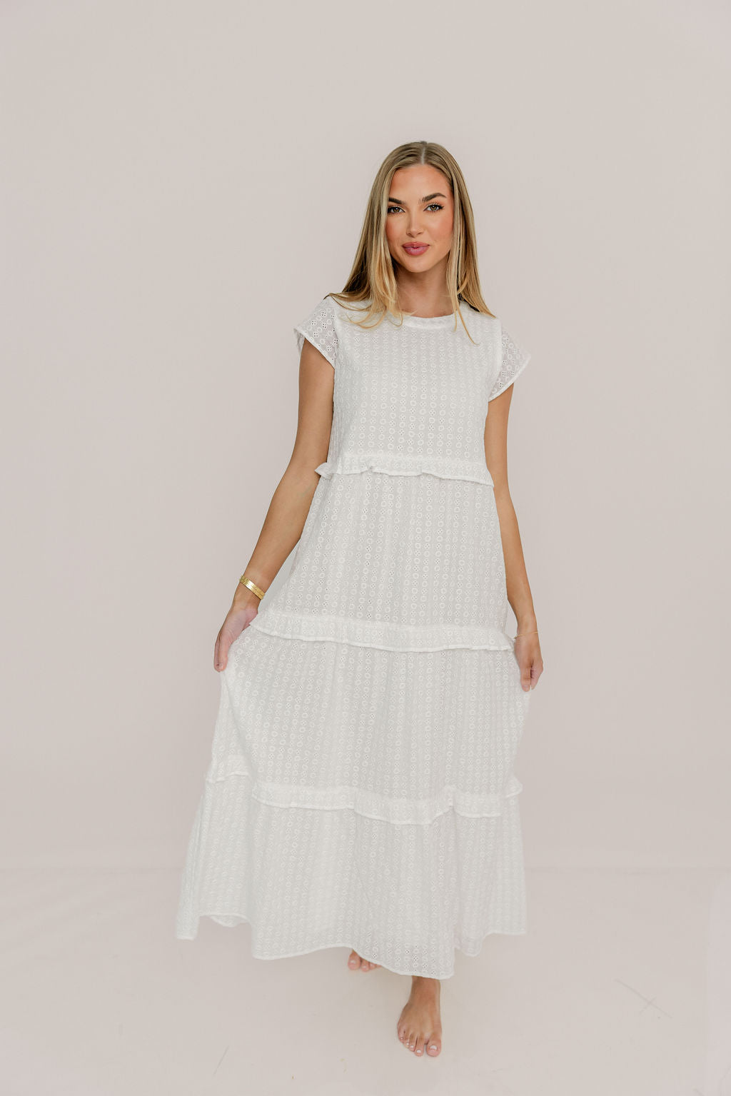 Helen Ruffle Tiered Maxi Dress in Off-White