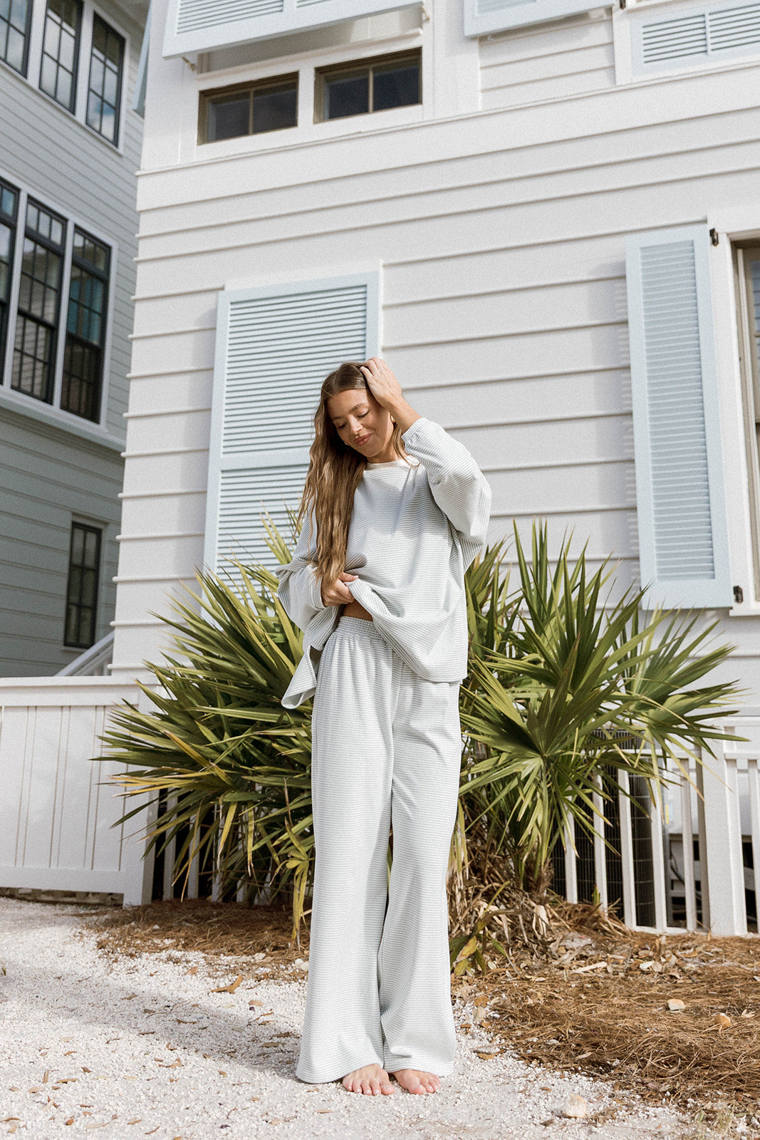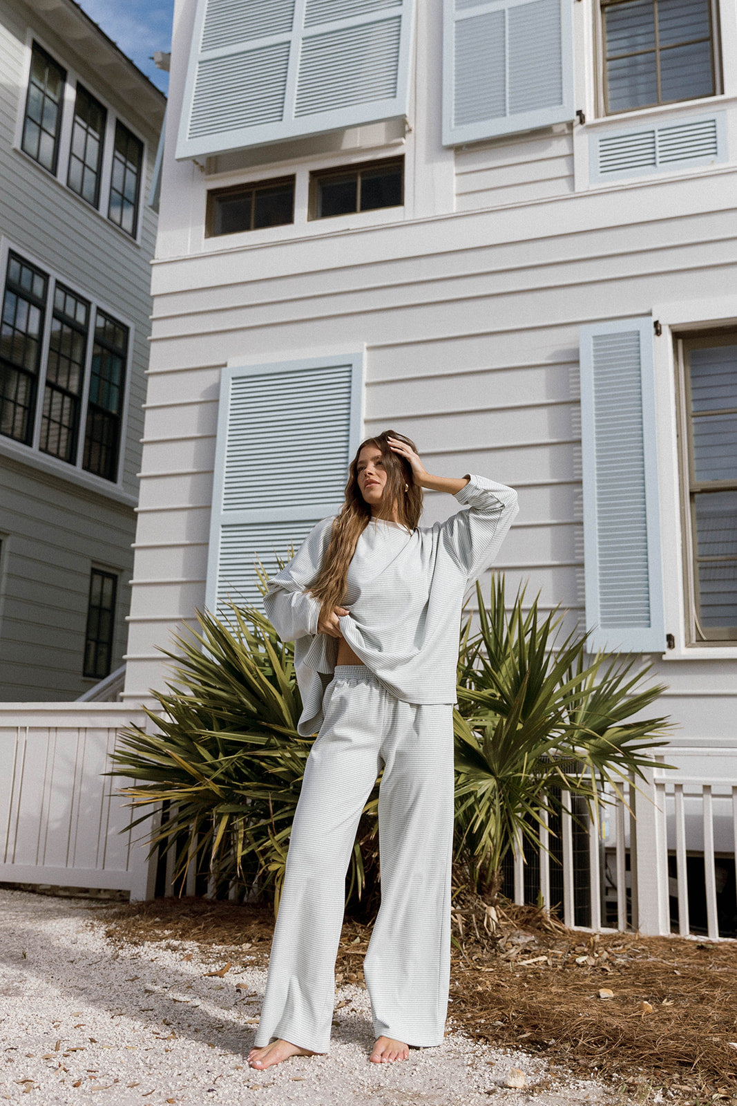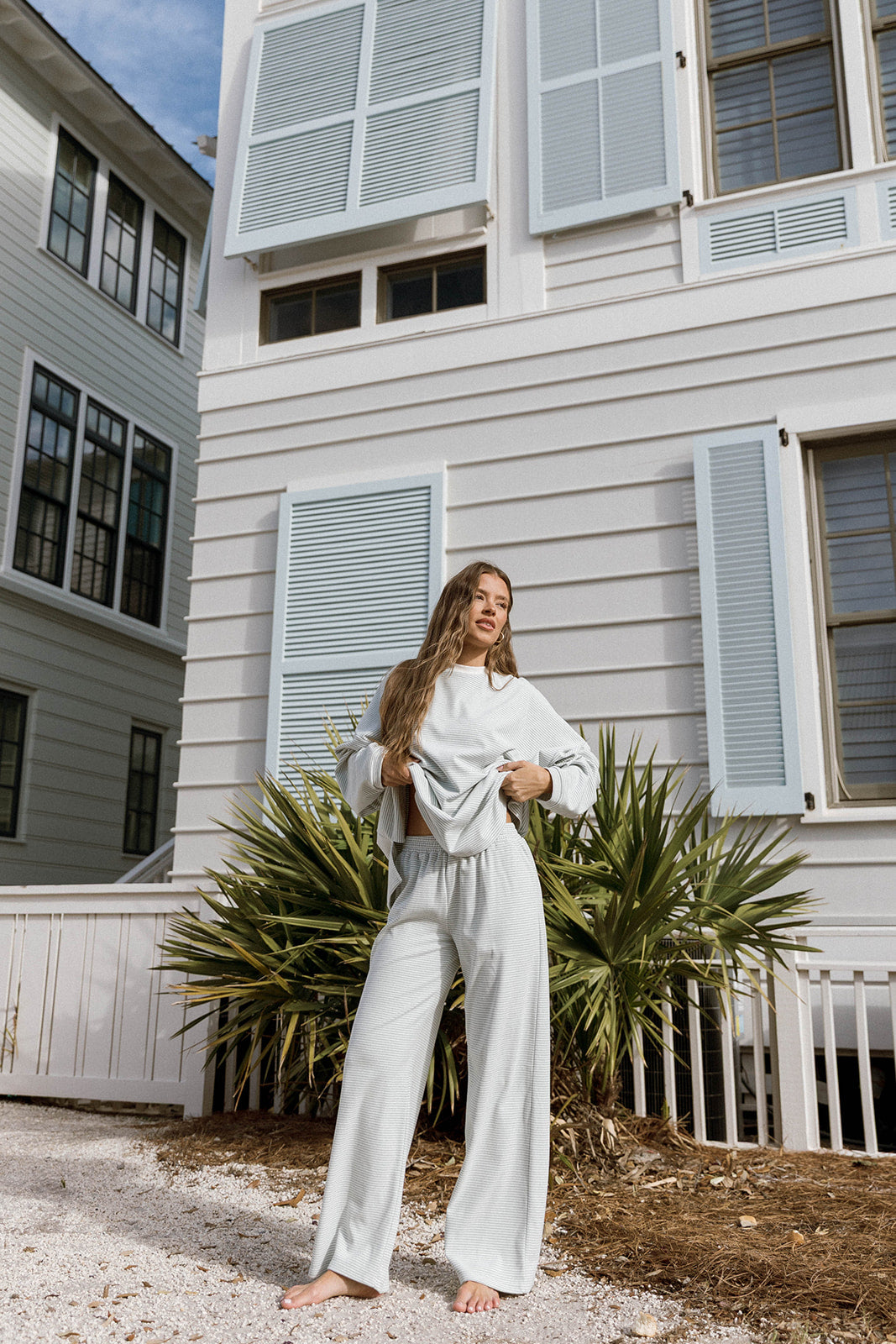 Campbell Striped Fleece Lounge Pants in Hamptons Blue *PRE-ORDER*