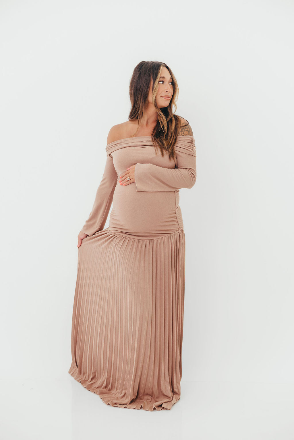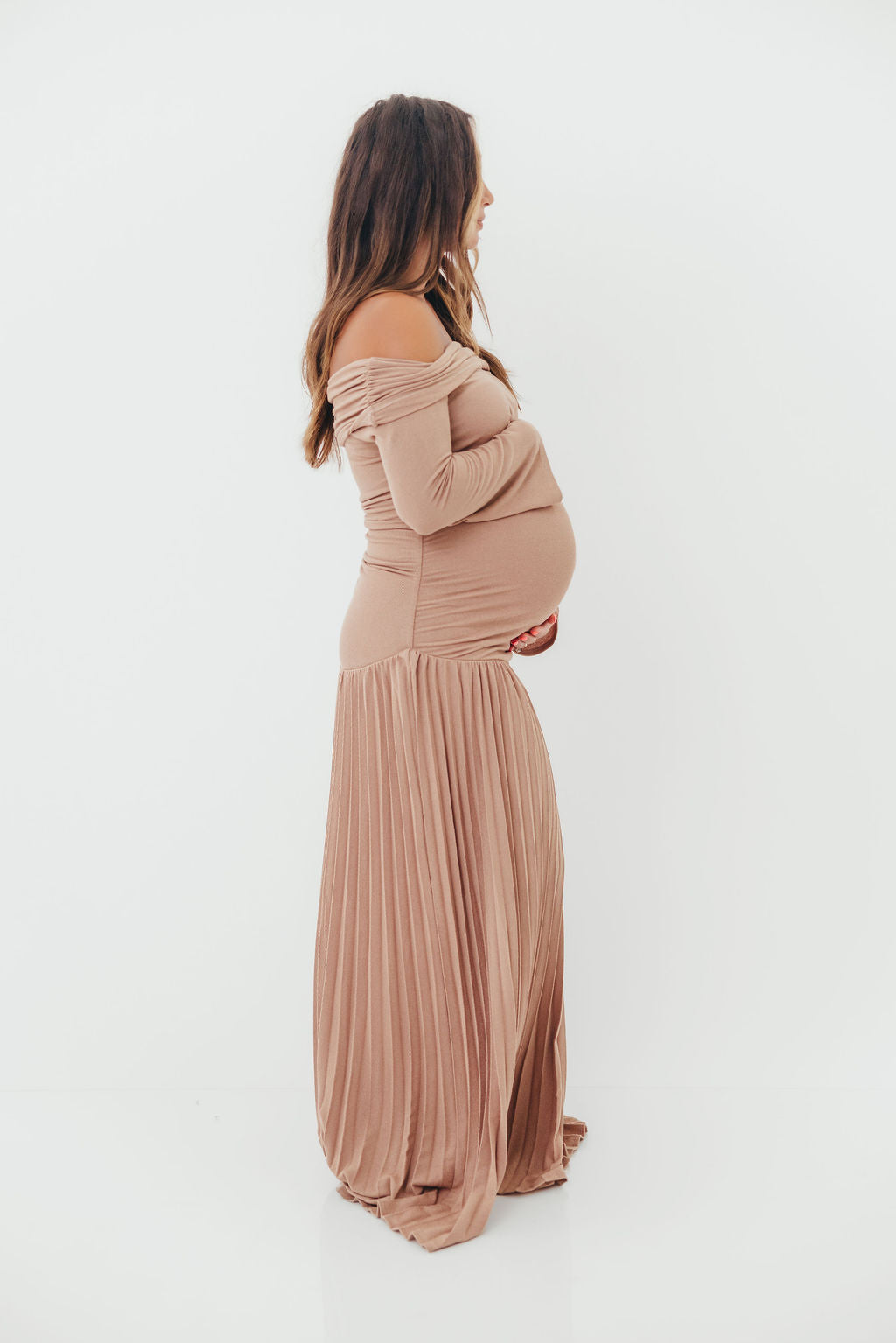 Lennox Long Sleeve Maxi Dress in Taupe - Bump Friendly *Final Sale*