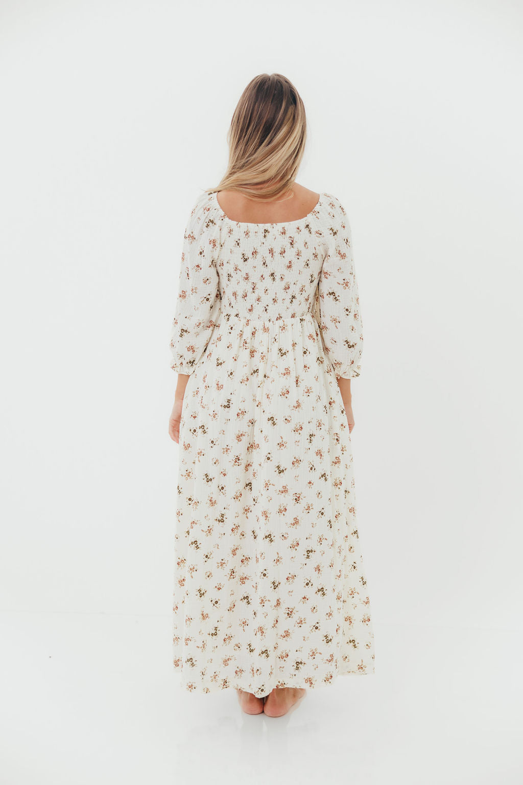 Cecilia 100% Cotton Smocked Maxi Dress in Cream - Bump Friendly