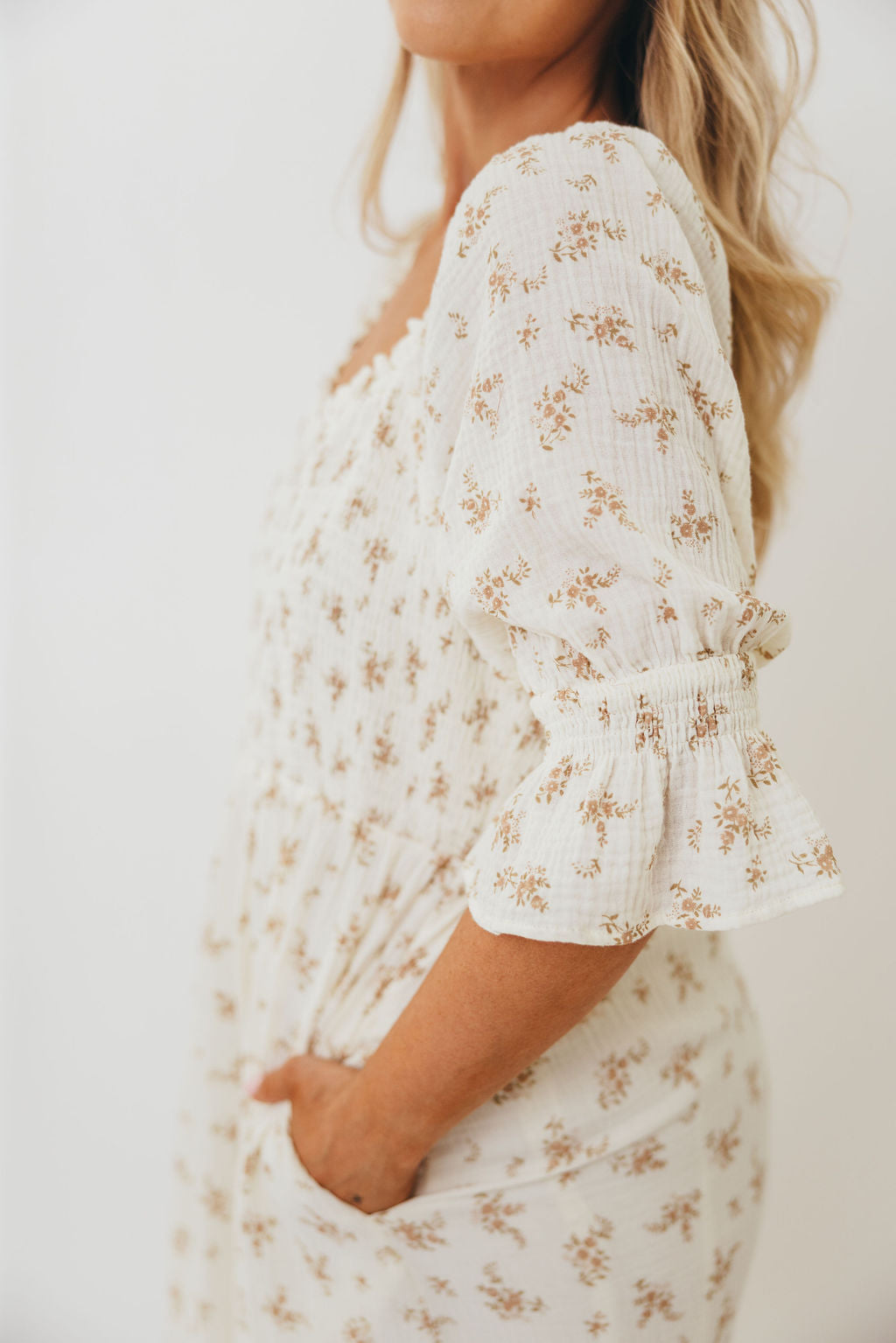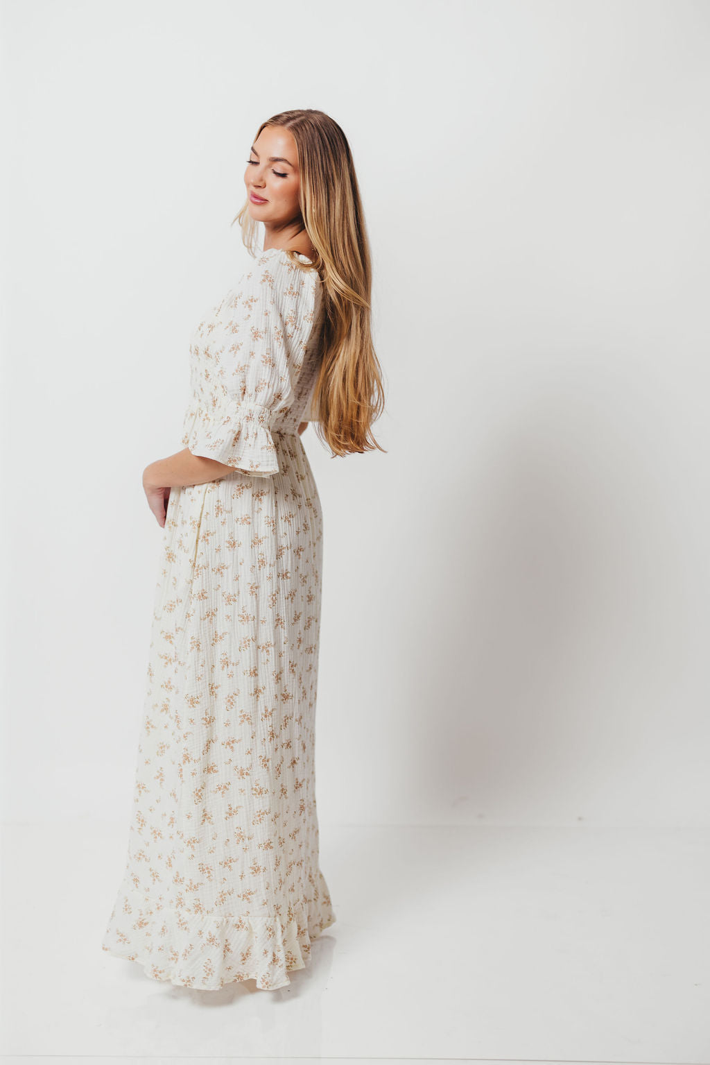 Sienna 100% Cotton Puff Sleeve Maxi Dress in Cream - Bump Friendly