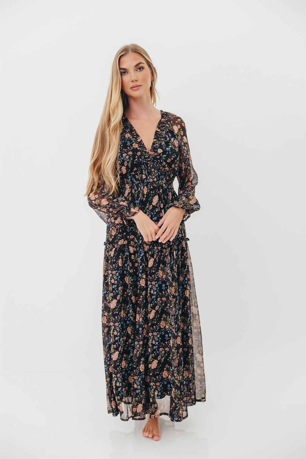 Meet one of our new favorite statement dresses for Fall 2025! The Rosita Maxi offers a premium Yoryu chiffon in a charming floral print, with lots of stretchy smocking and voluminous sleeves that add the perfect amount of zhuzh to this gown. You'll be accepting compliments left and right!
