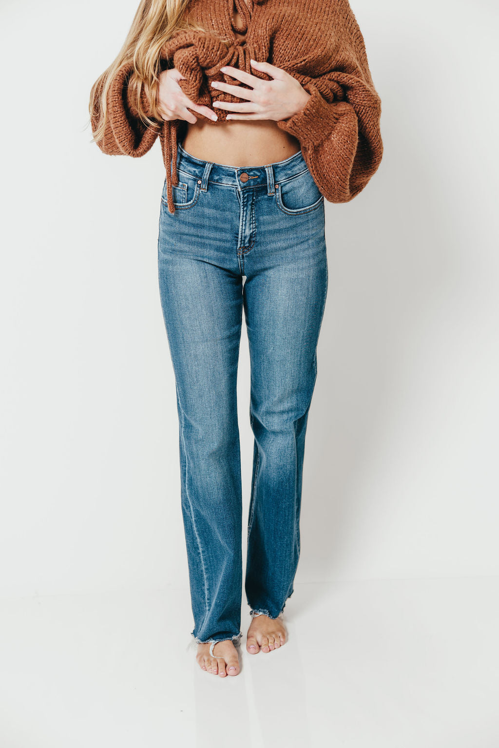 These are IT jeans that'll turn heads! These premium denim jeans hug your waist just right, and feature an effortlessly cool flare with a raw cut hem for a little bit of edge. Dress them up or dress them down, just make these your new favorite denim ASAP!