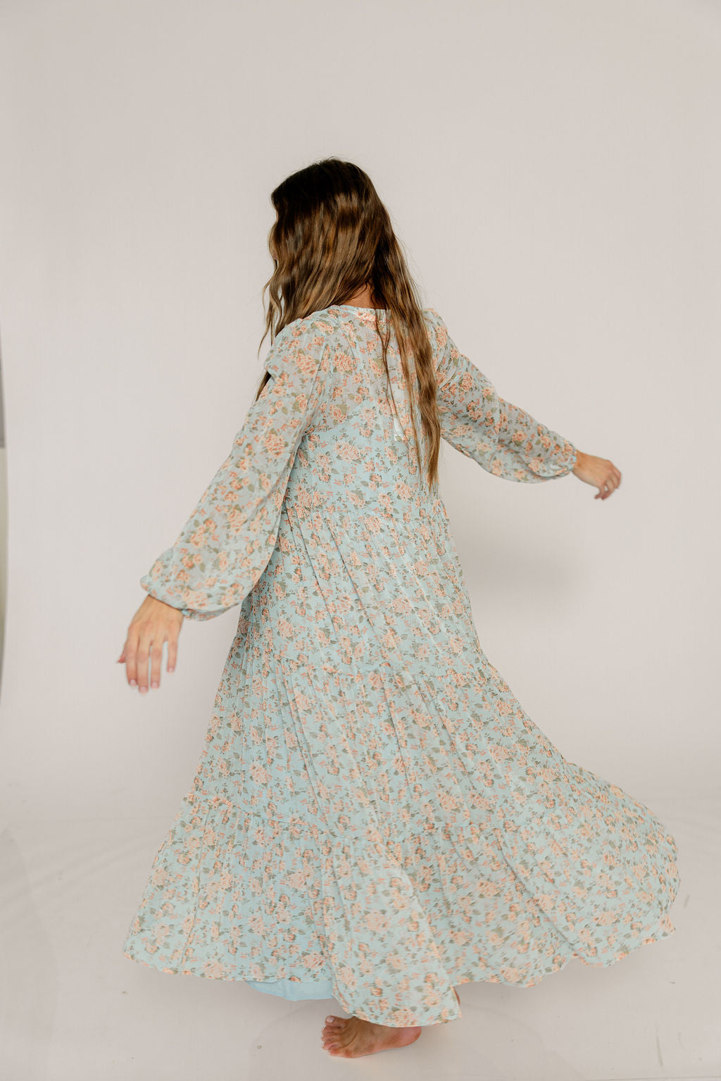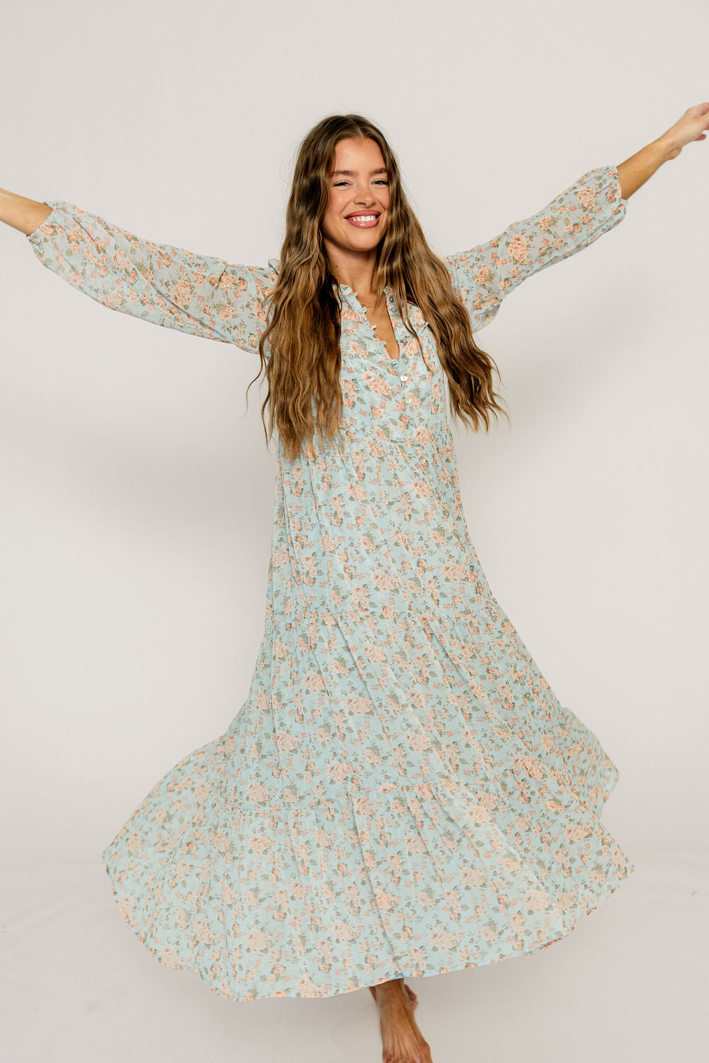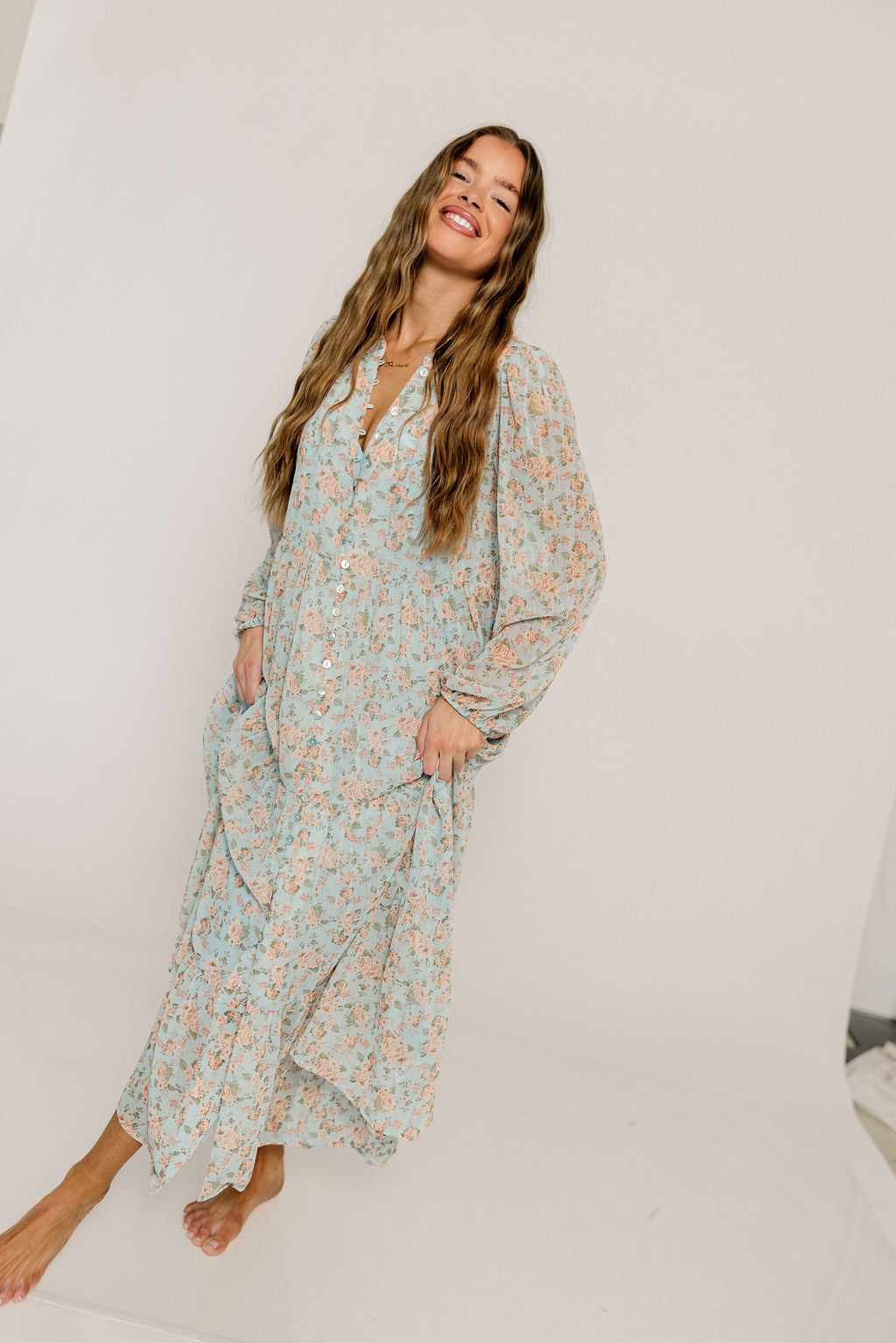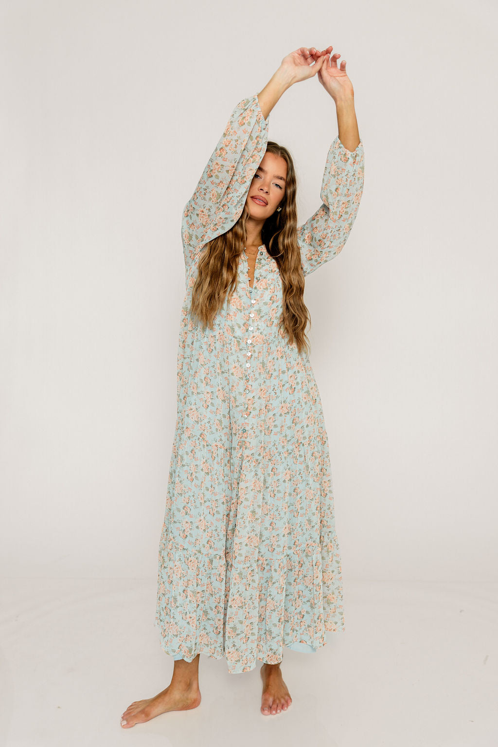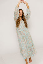 Anna Floral Button-Down Maxi Dress in Light Blue - Bump Friendly