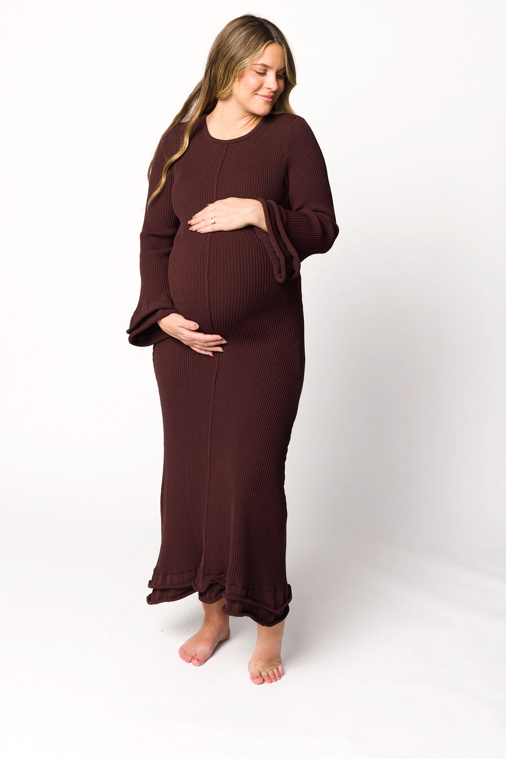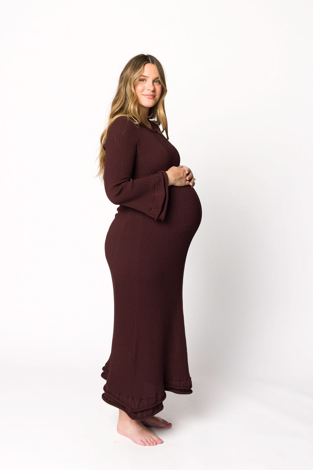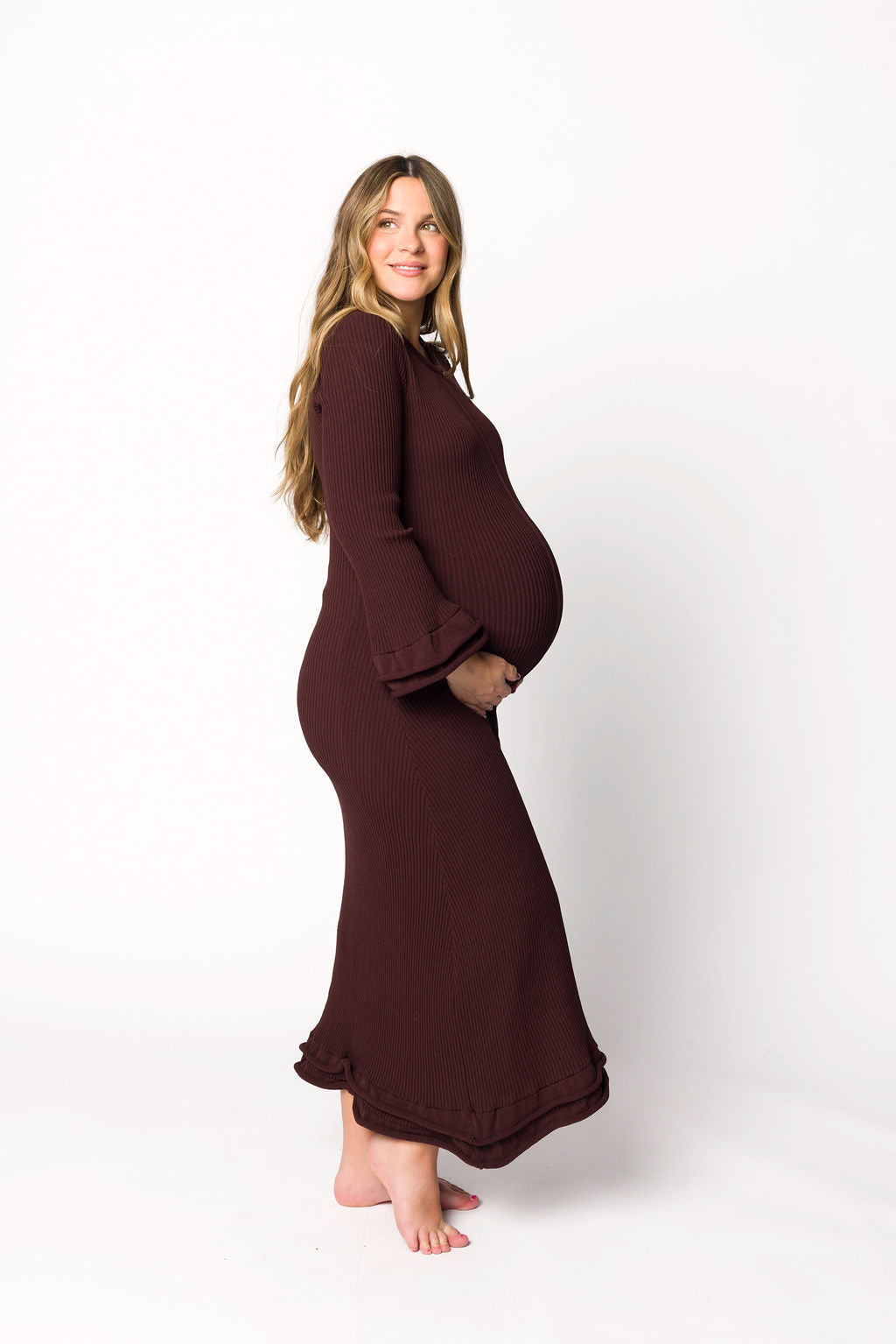 FIT: Runs true to size. For maternity, we suggest sizing up for your third trimester. This dress is slightly fitted and very stretchy.