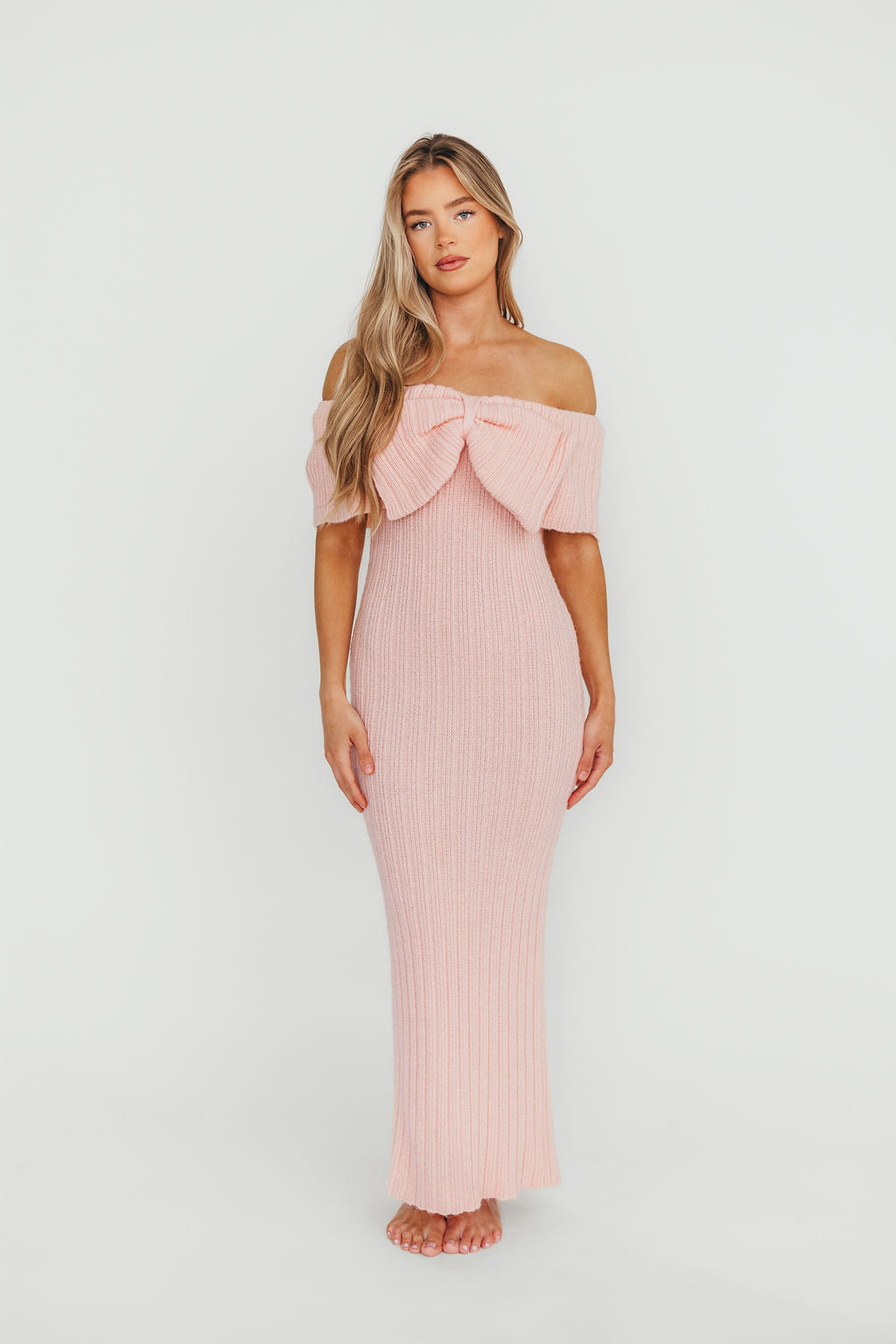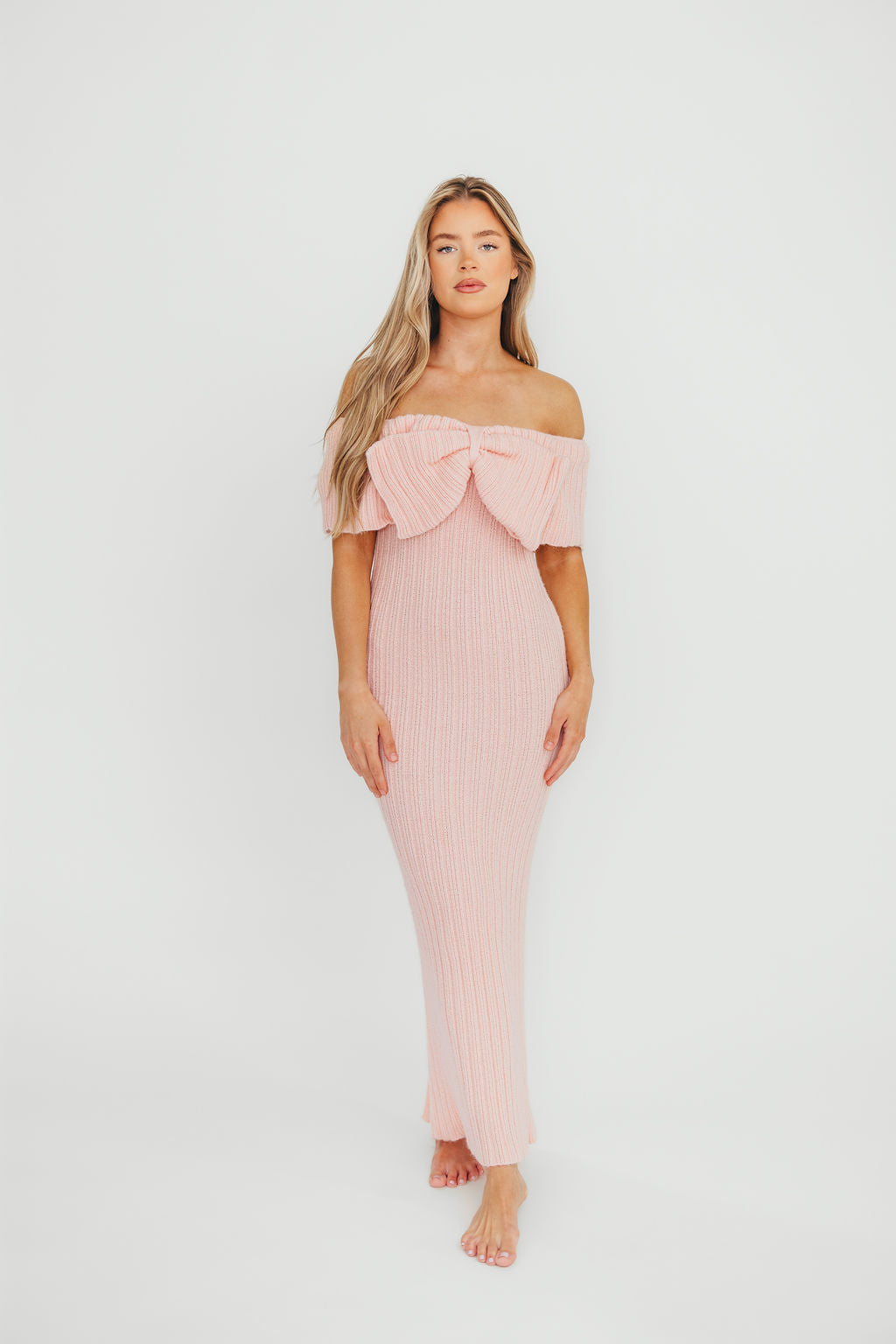 Aston Bow Front Maxi Sweater Dress in Pinkish Petal – Bump Friendly & Inclusive Sizing (XS-3XL) - Restocking in Dec