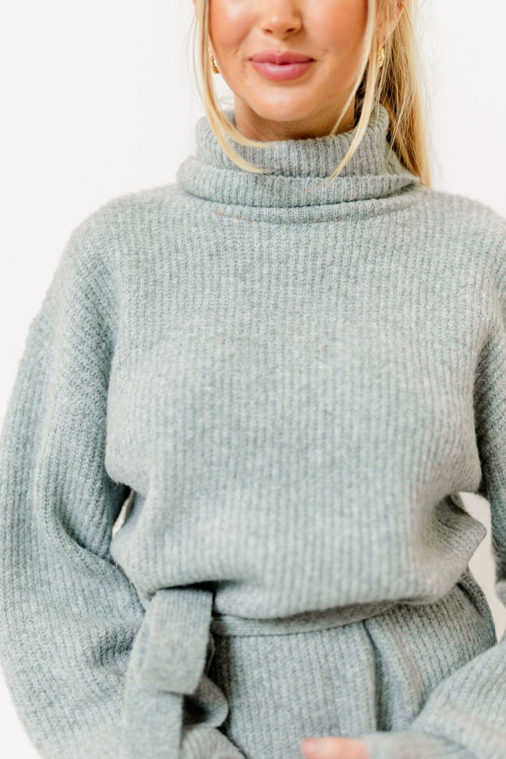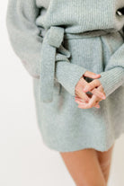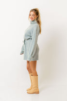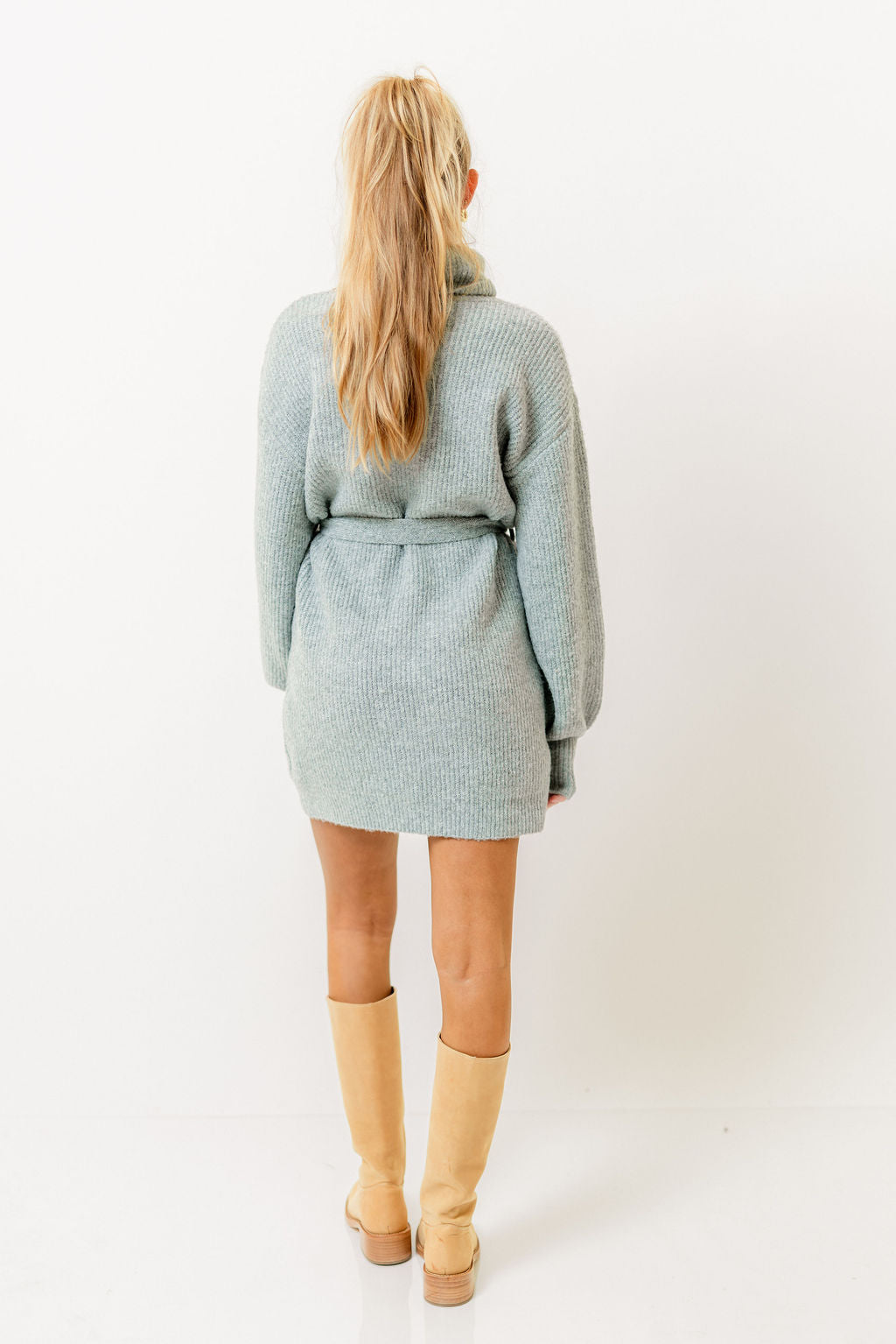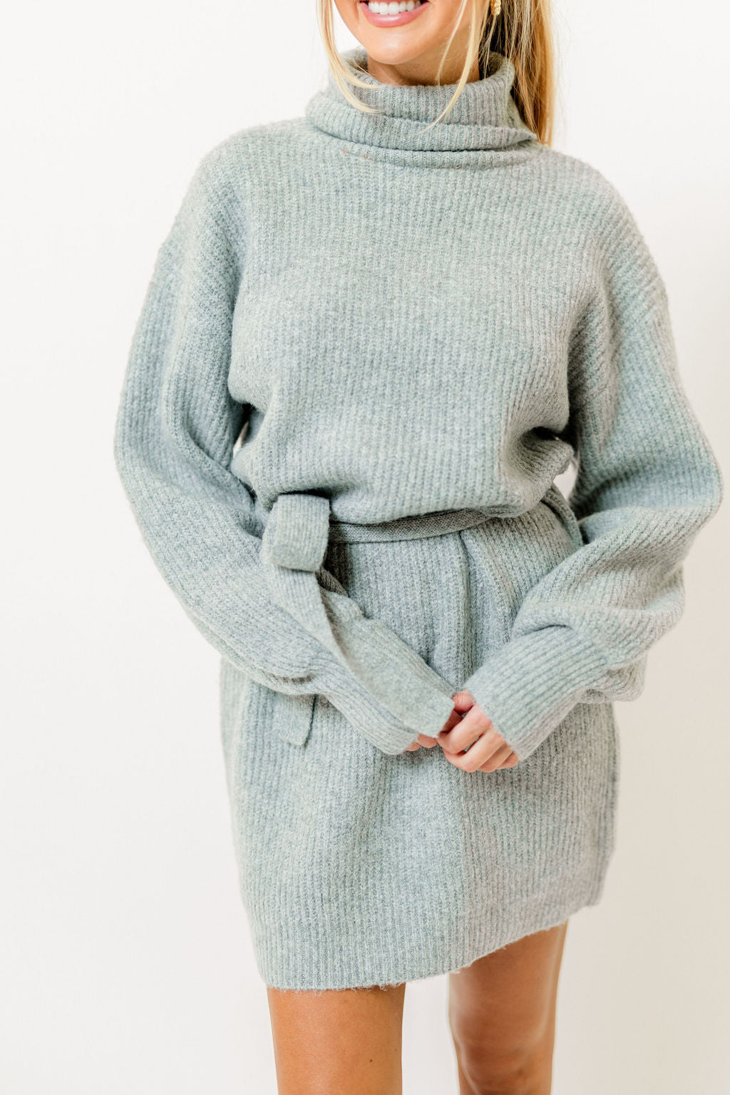 Audrina Turtleneck Sweater Dress with Tie Waist in Heather Grey