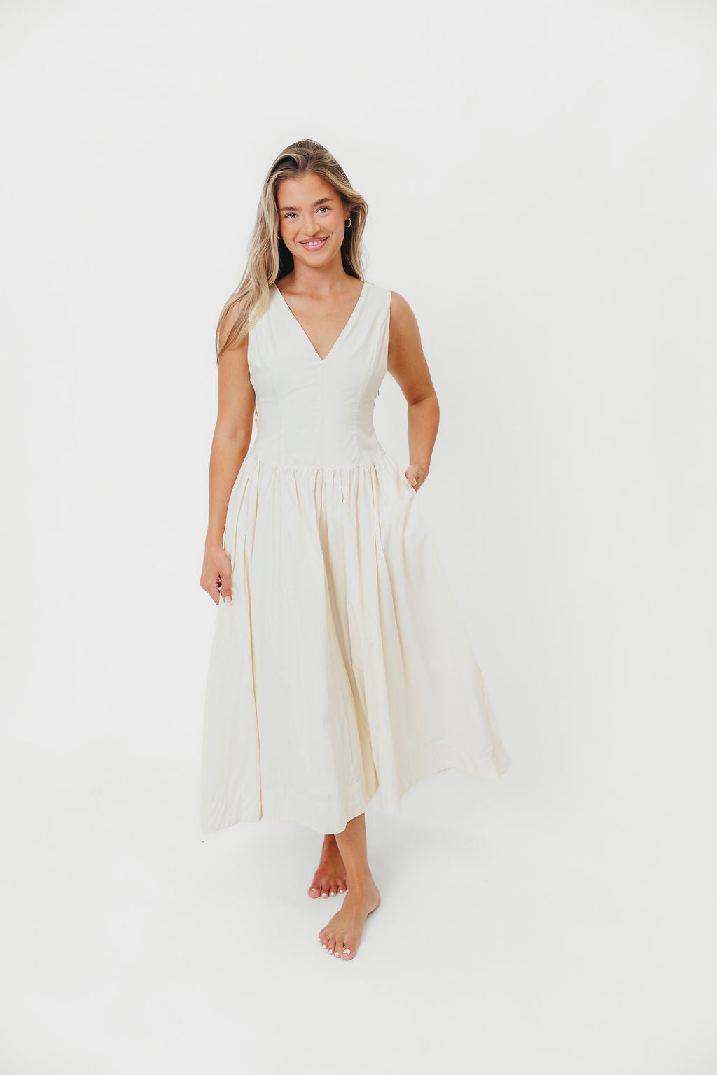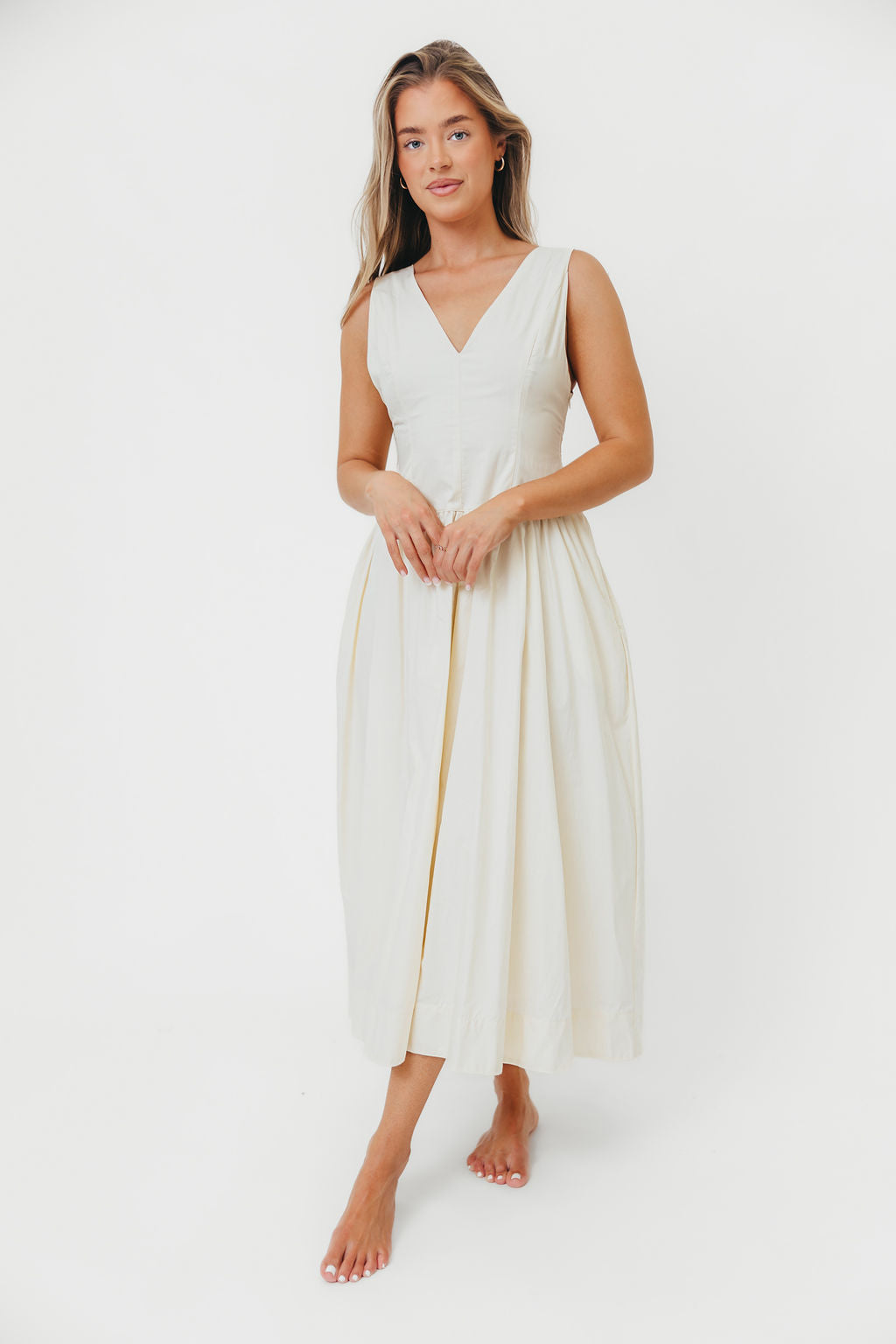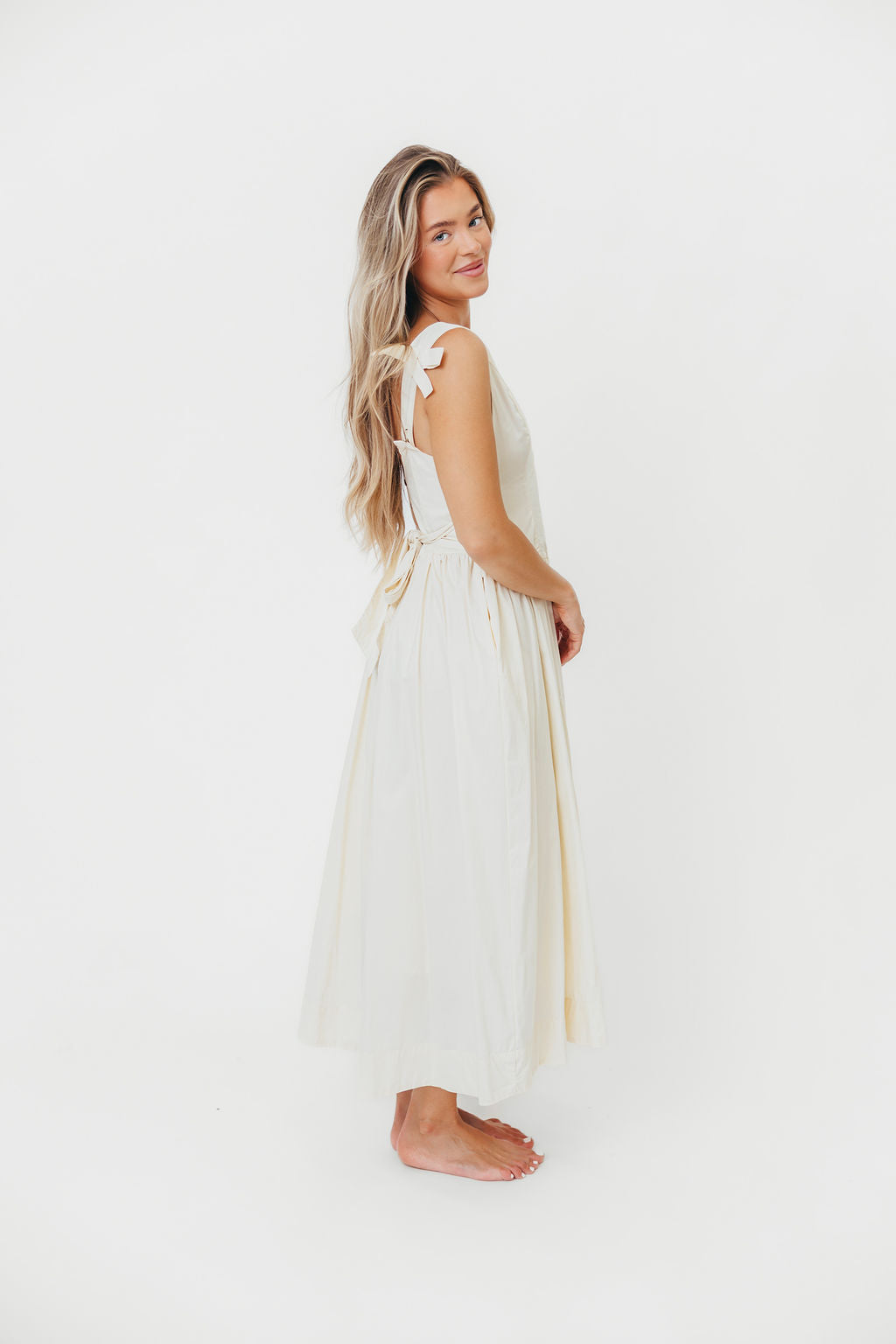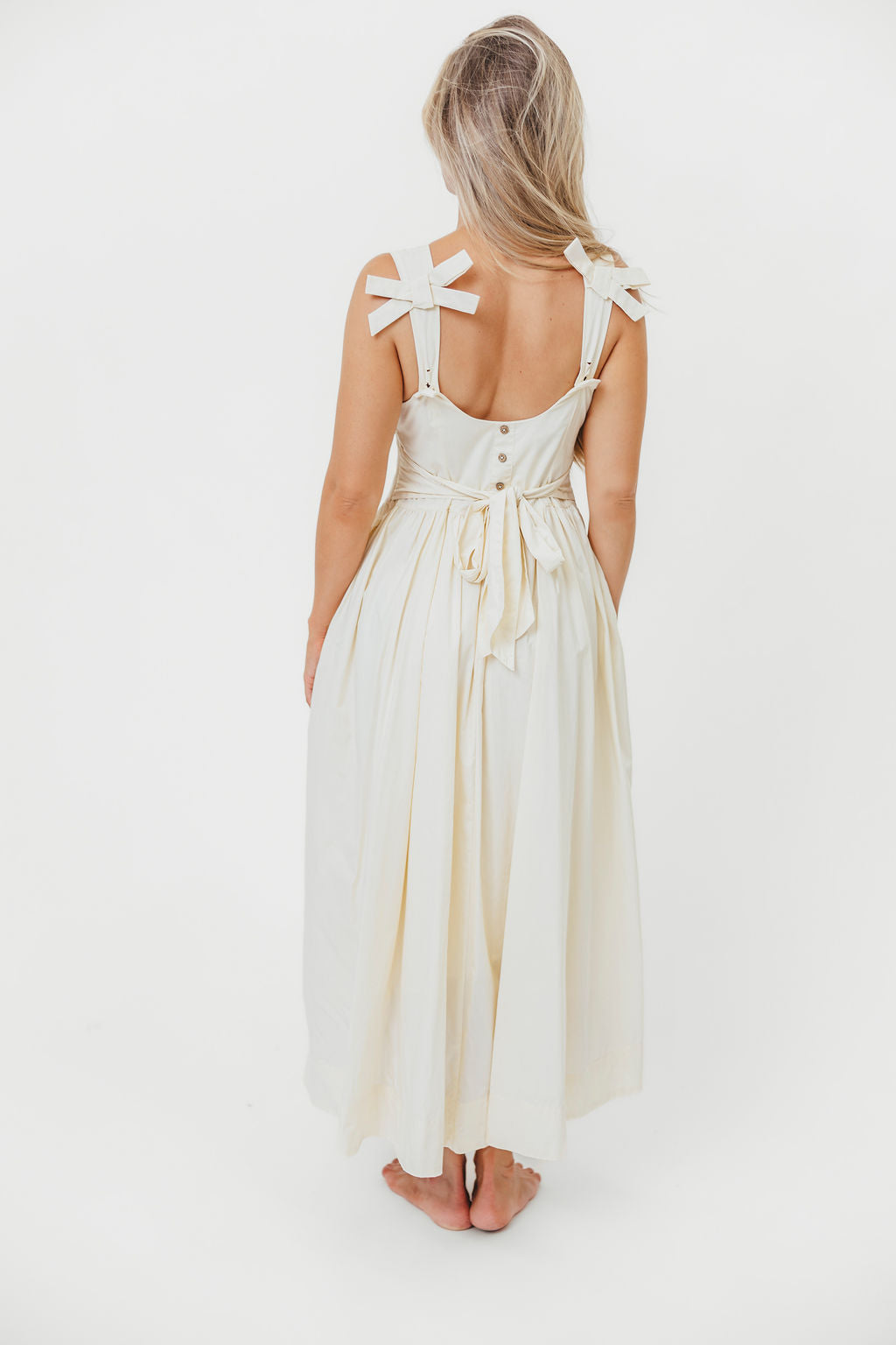 Cece 100% Cotton Bow Detail Woven Maxi Dress in Off-White