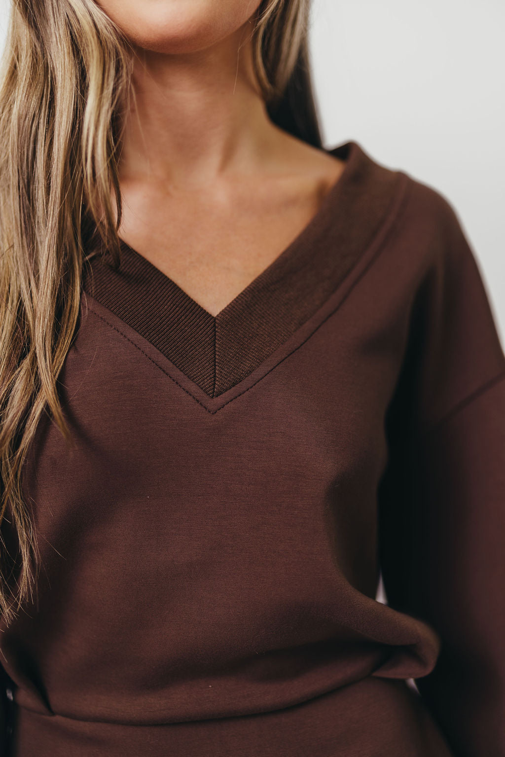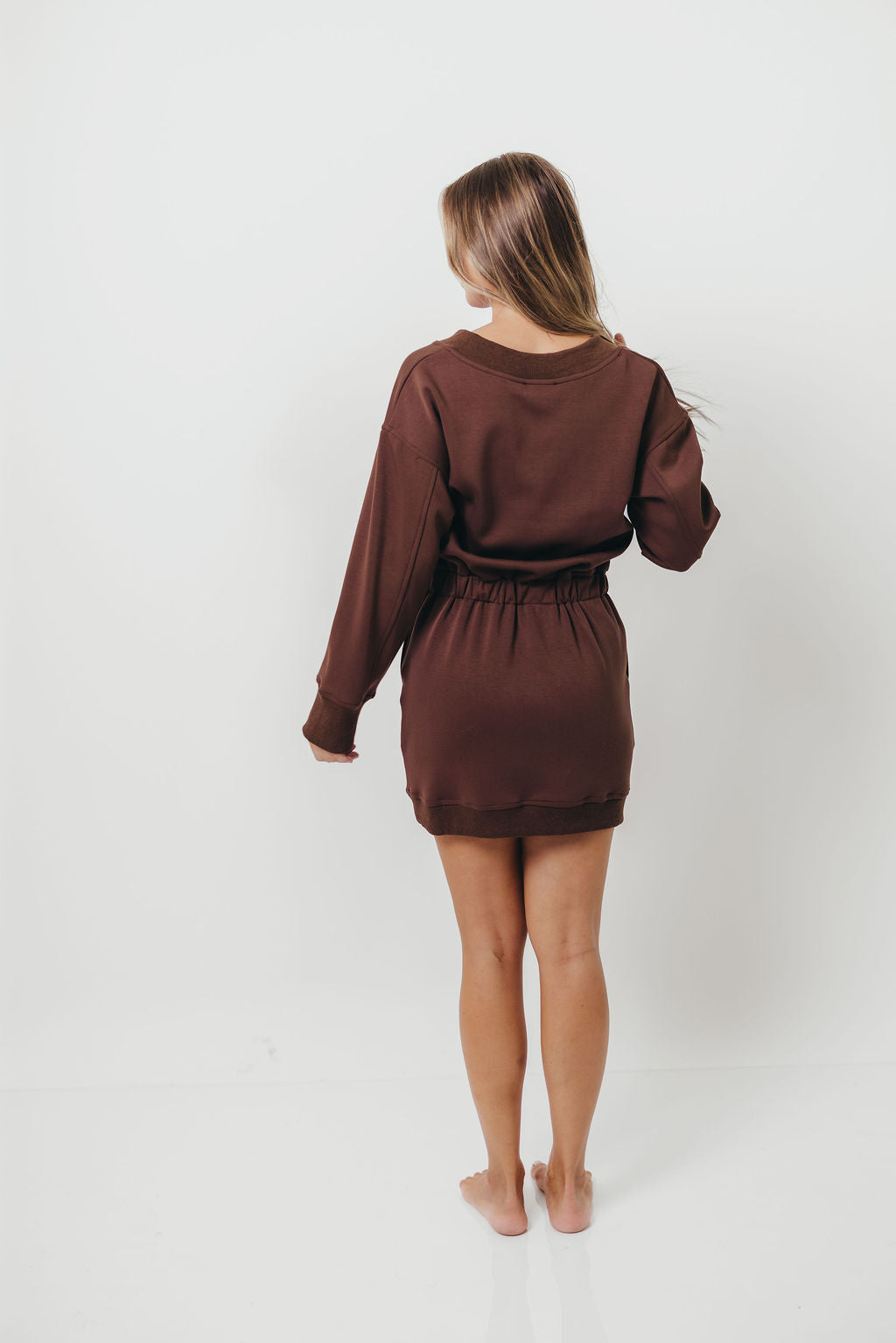 Sansa Butter Modal V-Neck Ribbed Contrast Mini Dress in Cocoa
