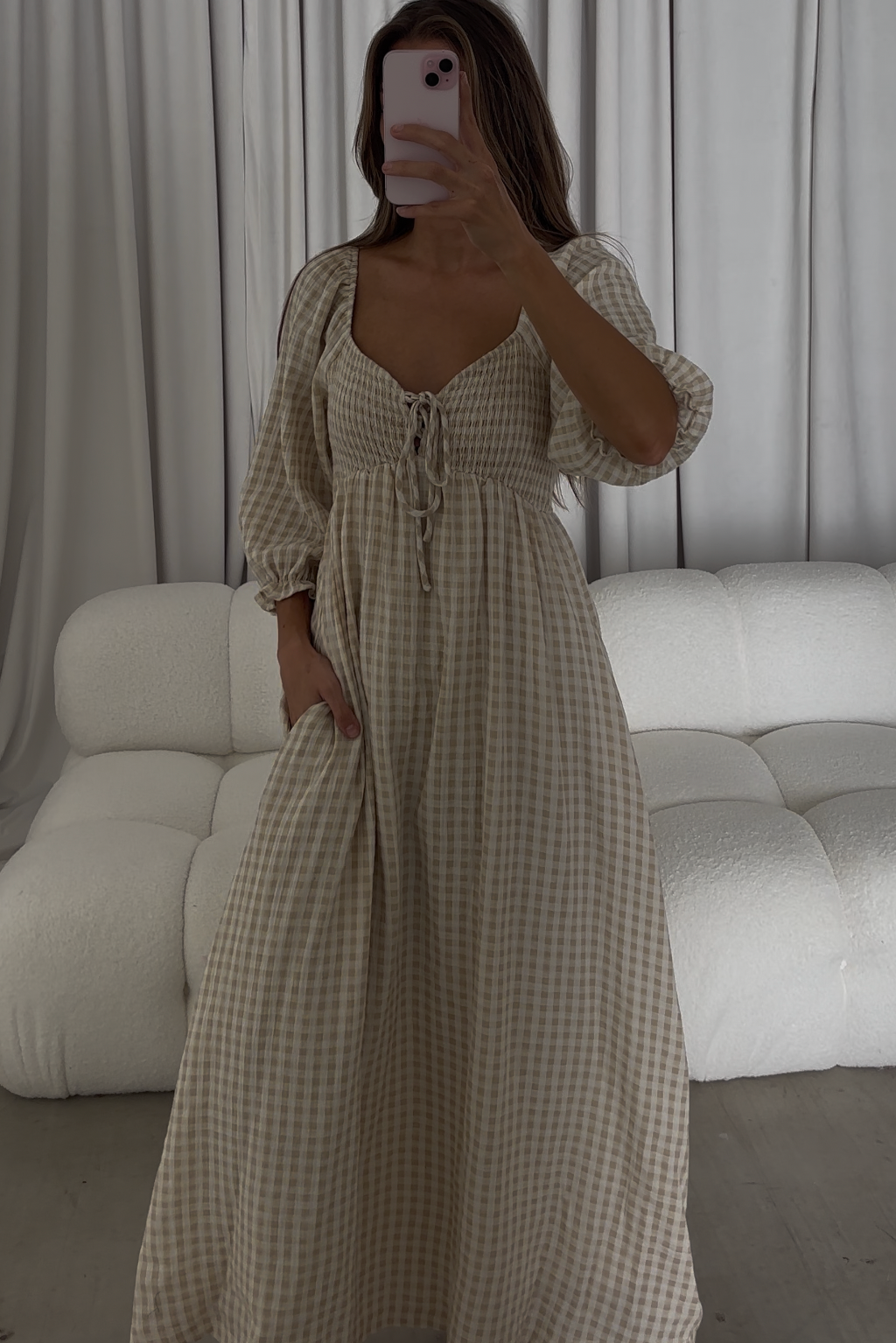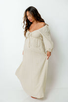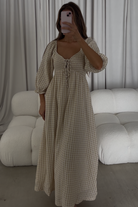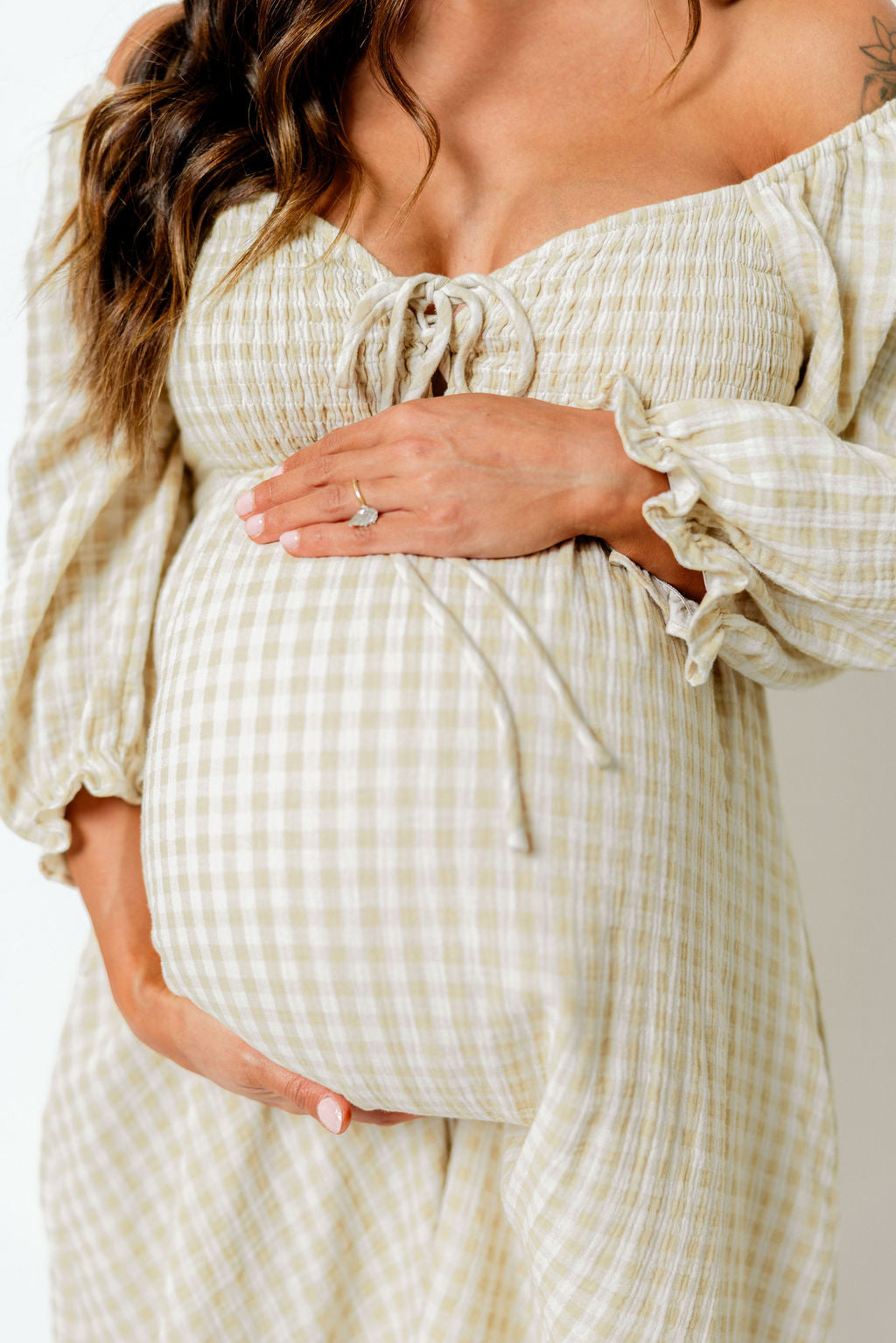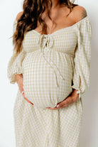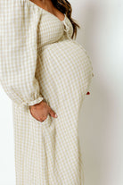Cecilia 100% Cotton Smocked Maxi Dress in Muted Gold Plaid - Bump Friendly