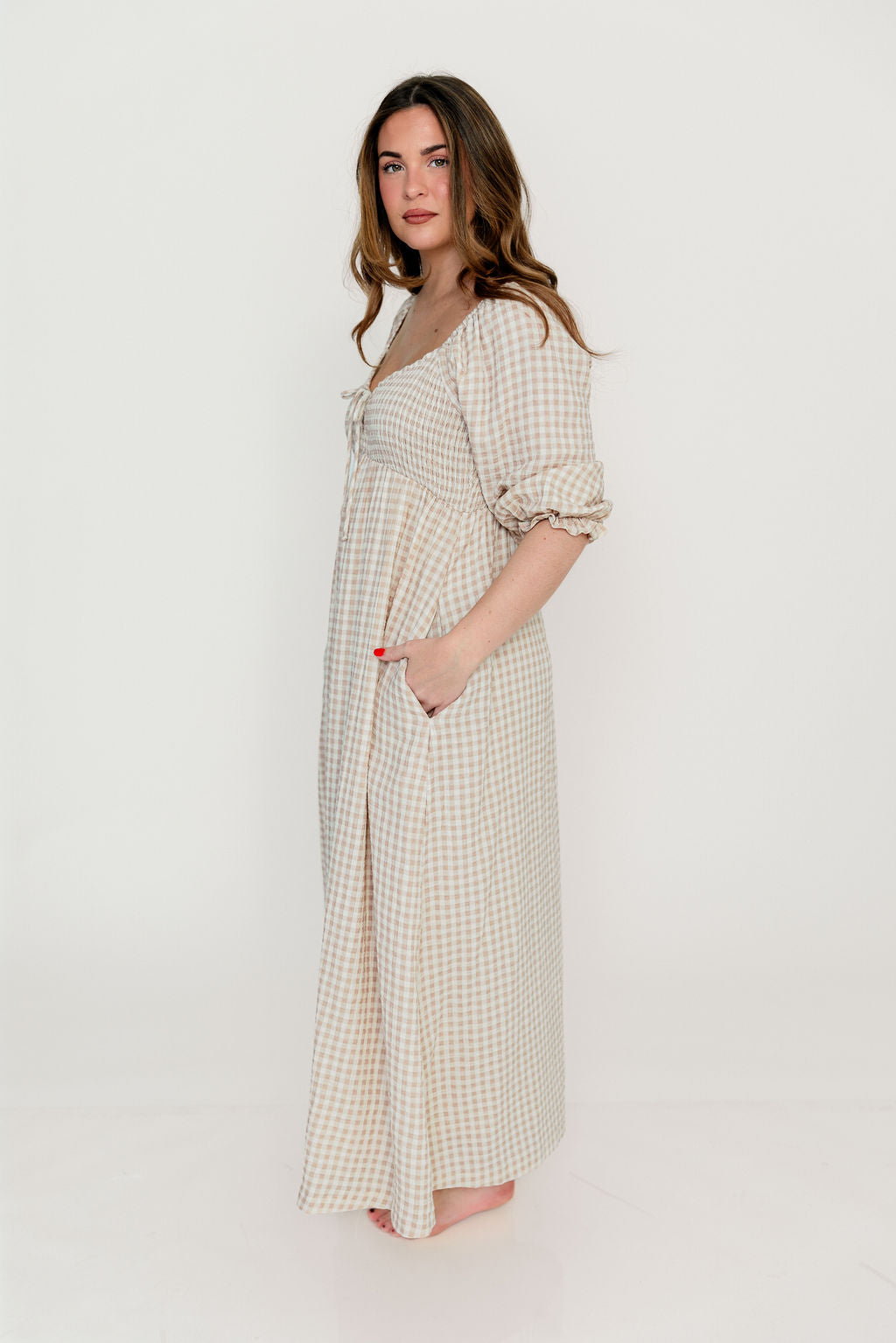 Cecilia 100% Cotton Smocked Maxi Dress in Rose Plaid (Lined) - Bump Friendly