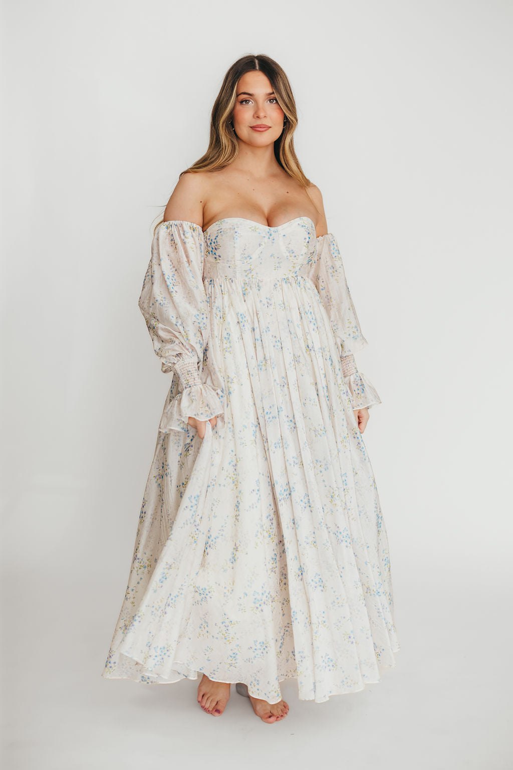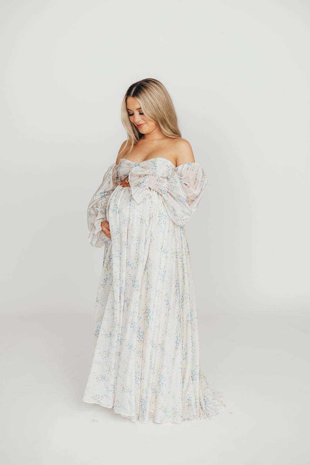 This luxurious and ethereal maxi dress will have you looking like a goddess this season! Meet the Dear Skye gown, a new addition to our Dress Shoppe and one that's already a crowd favorite. Crafted from over seven yards of premium fabric, this dress offers a gorgeous neckline and renaissance-style sleeves, with a sweeping skirt that flatters every body type. This gown is the ideal choice for photos: family sessions, maternity and newborn photo ops, and even christenings and gender reveals!