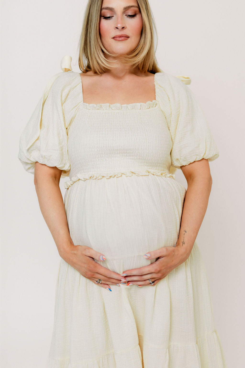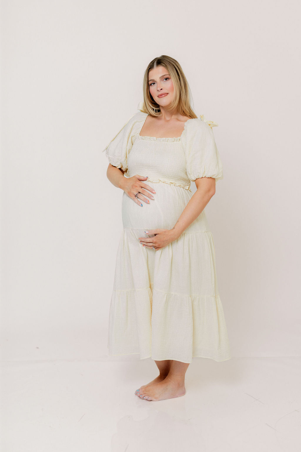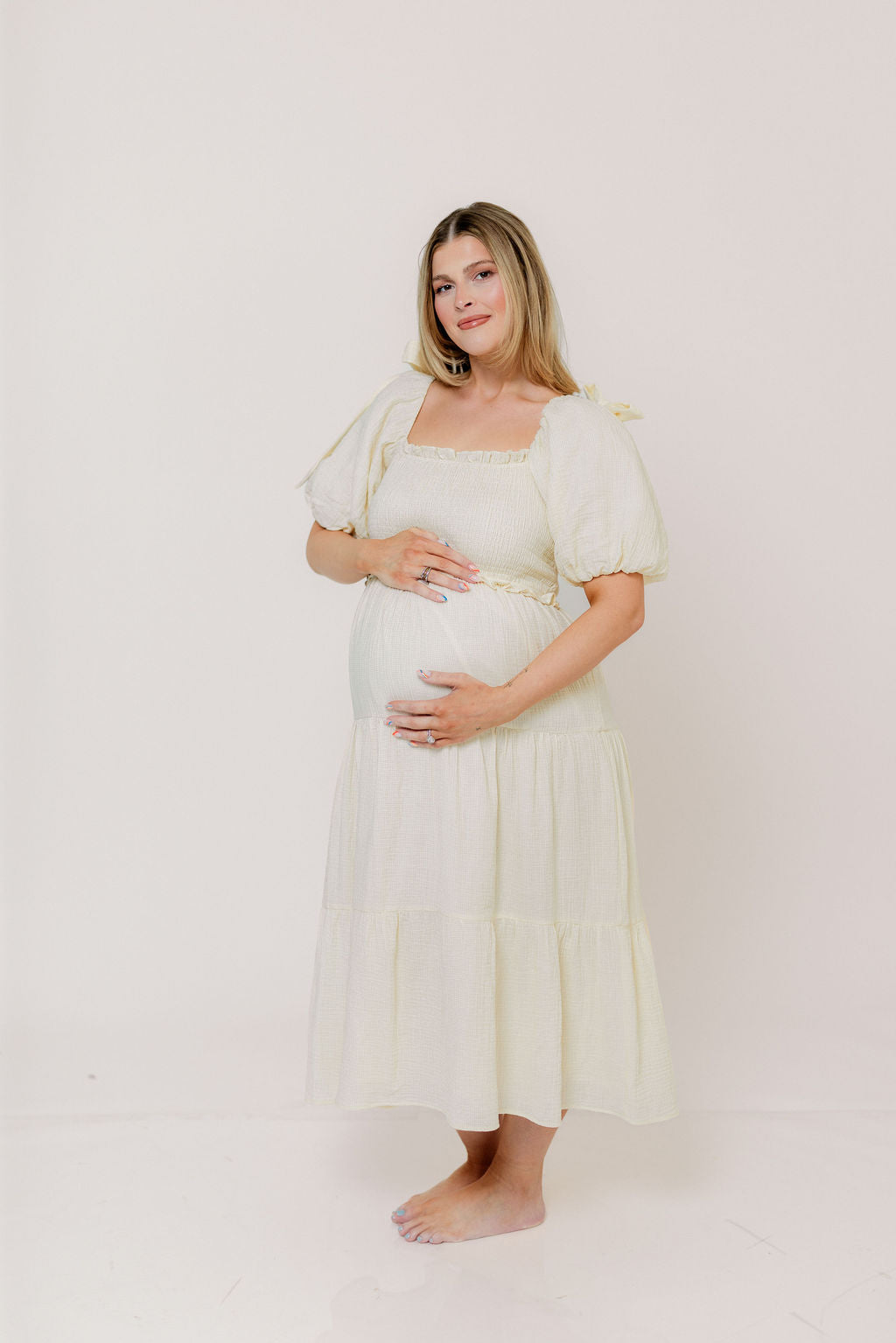 This picture-perfect midi dress is ready for your next special occasion! The Elena Midi features a classic, feminine silhouette that we just adore, plus a comfortable smocked bodice and statement puffed sleeves. It's flattering and comfortable for every body, including expecting mamas!
