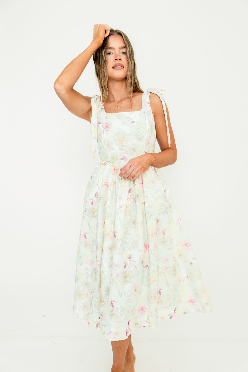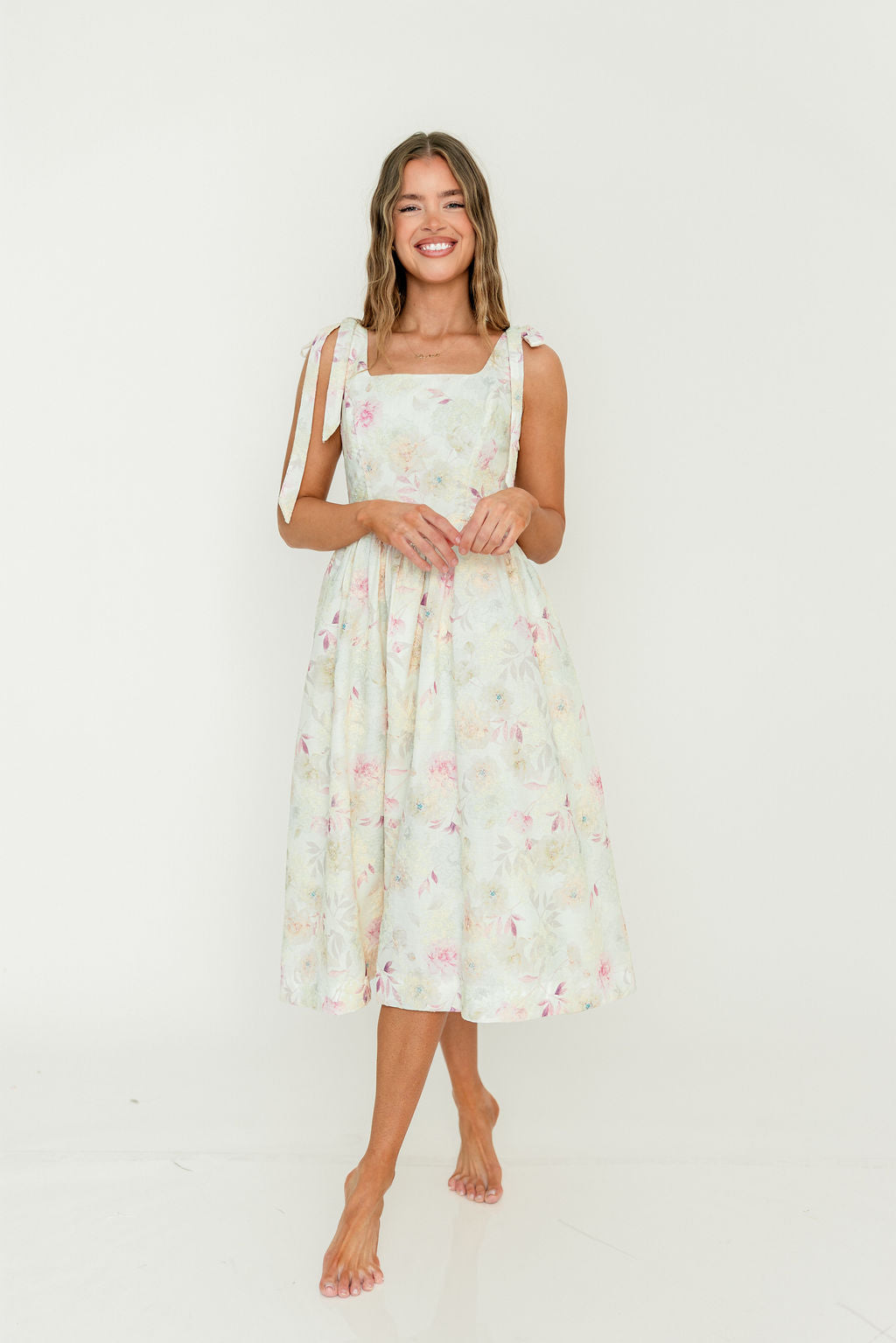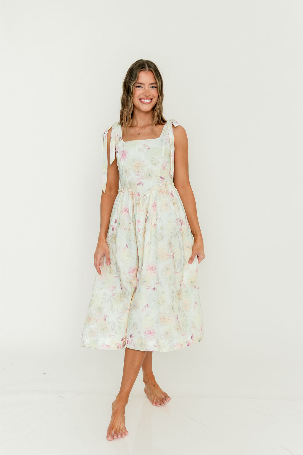 The Jenny Floral Midi Dress is the perfect tea party dress! Constructed from lightweight floral-print cotton, this charming midi dress has a hint of vintage allure; it's a lovely choice for a warm-weather special event.