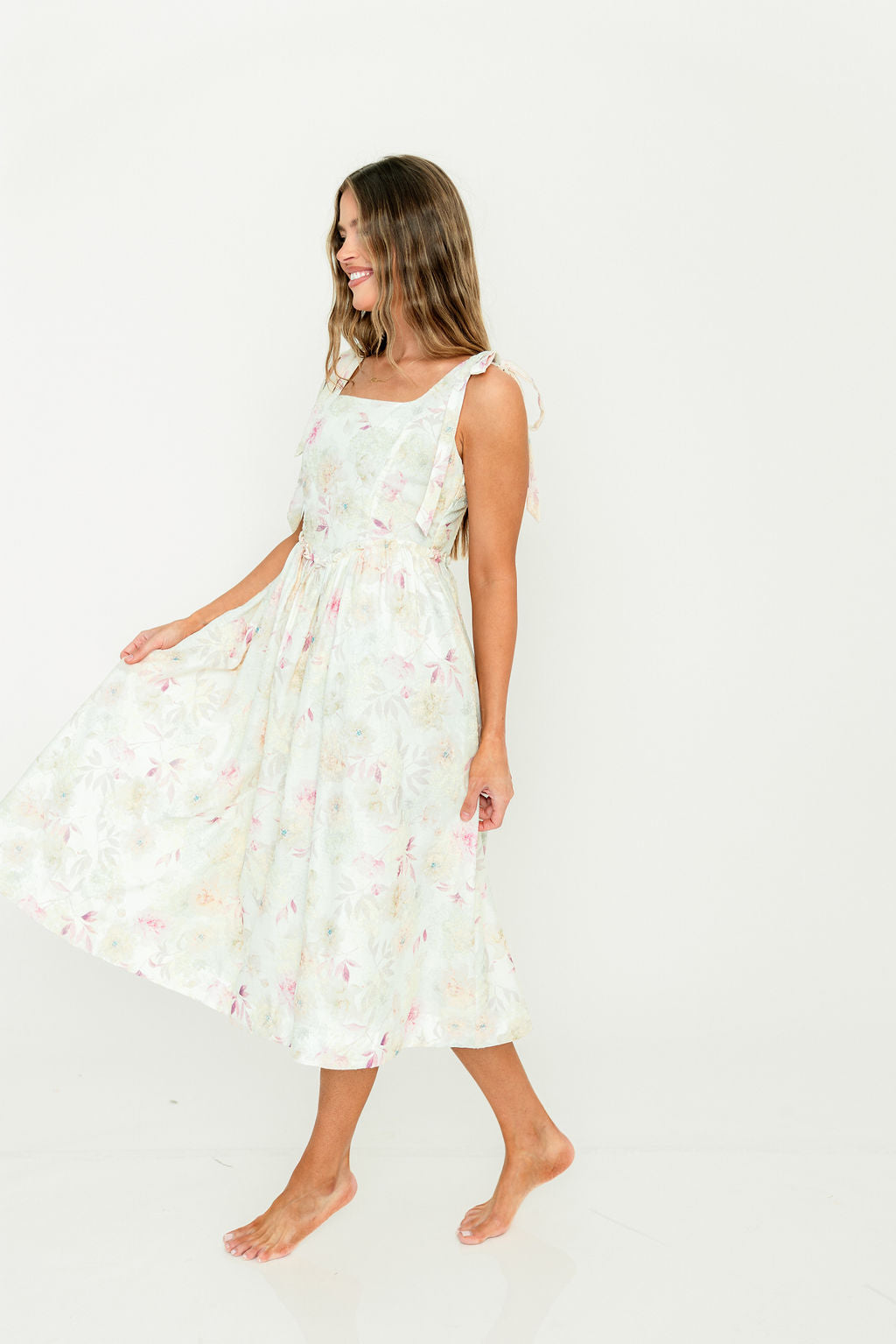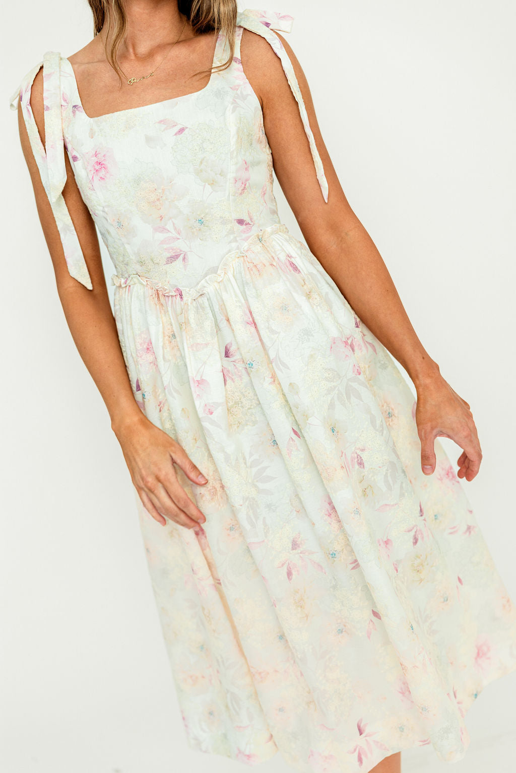 Jenny Floral Midi Dress in Light Pink