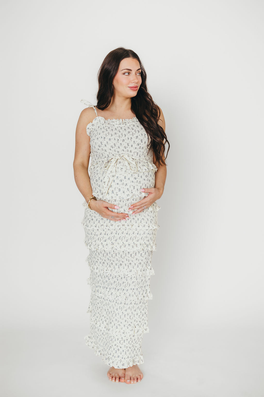 Harley Maxi Dress in Gray Floral - Bump Friendly *Final-Sale*