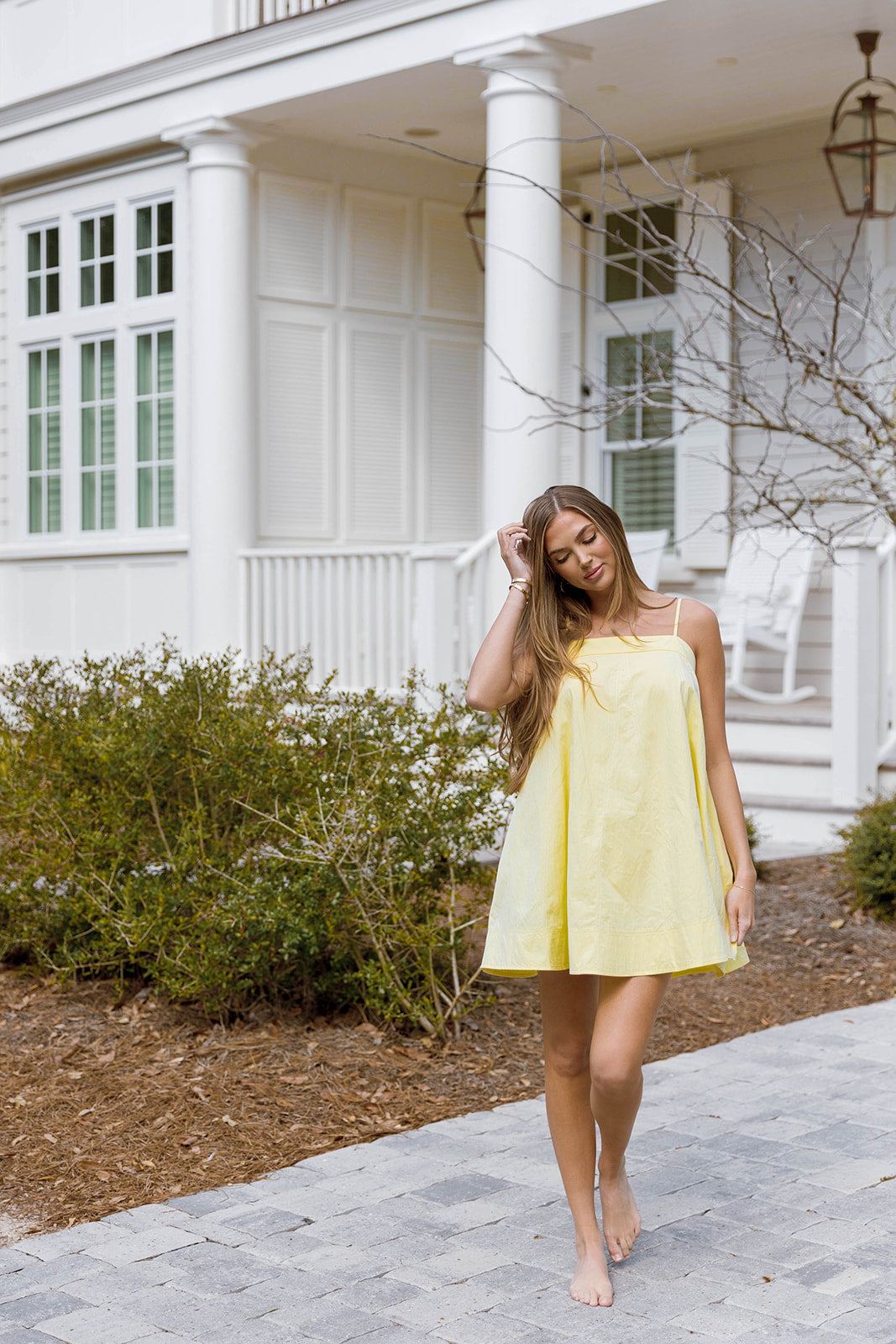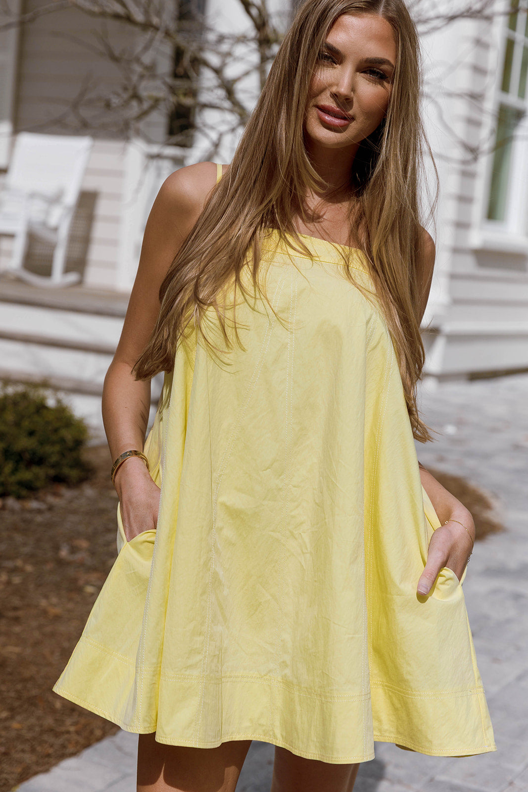 The Mari Mini Dress is all sunshine and lemondrops! This lightweight cotton poplin dress features a flattering babydoll silhouette, with adjustable tie straps and handy side pockets; it's an effortless choice for any day of the week.