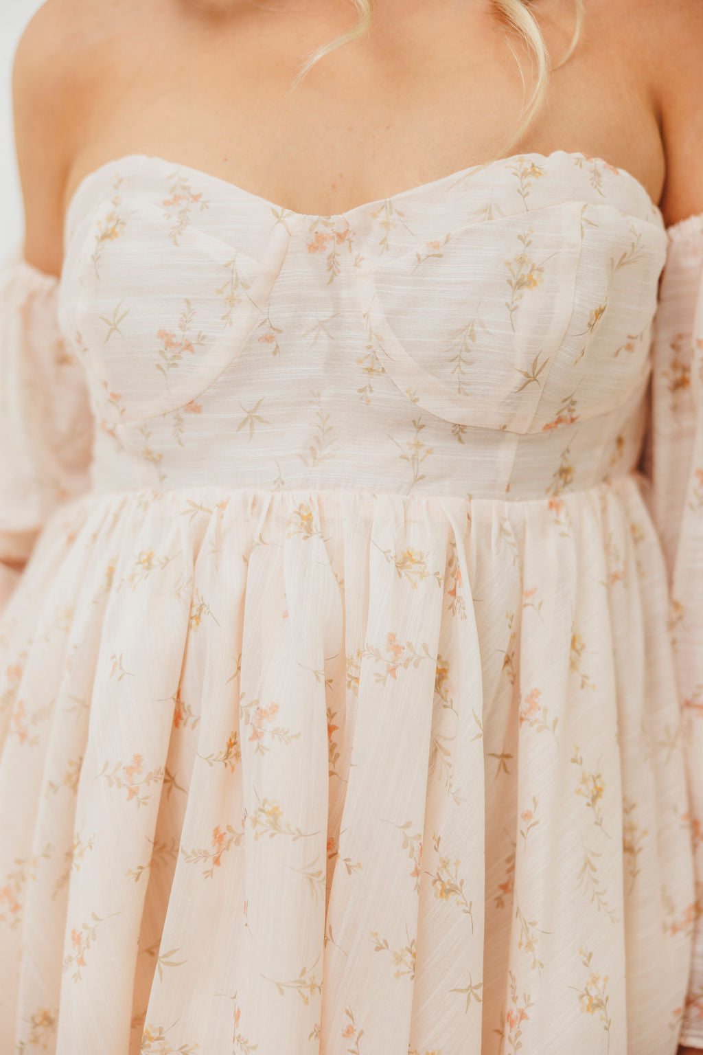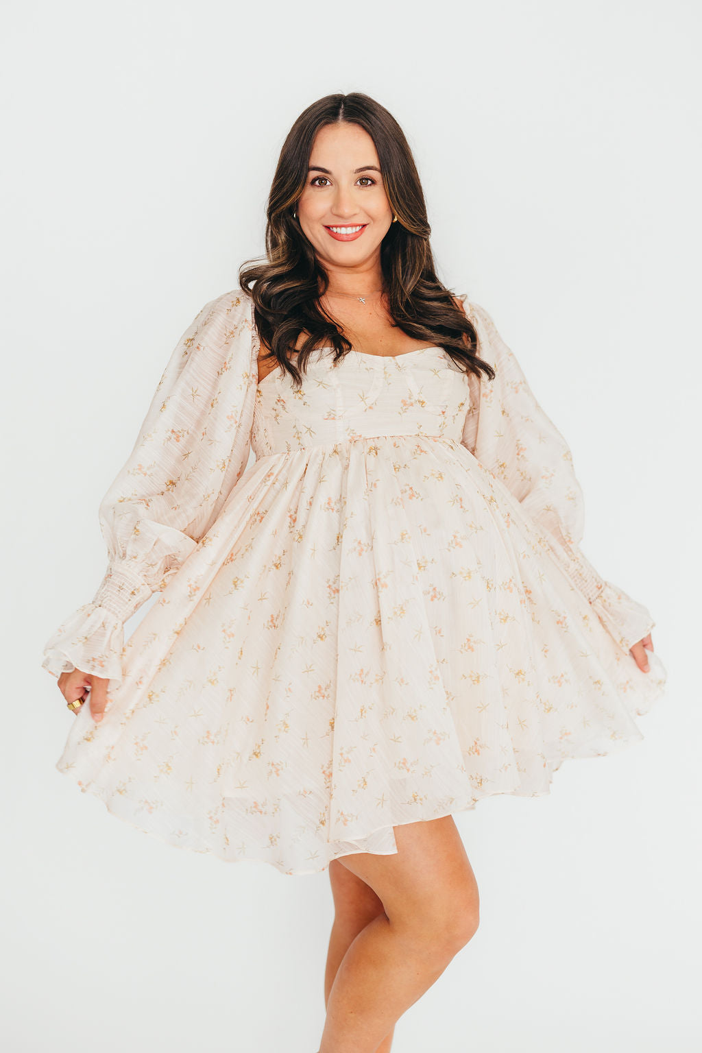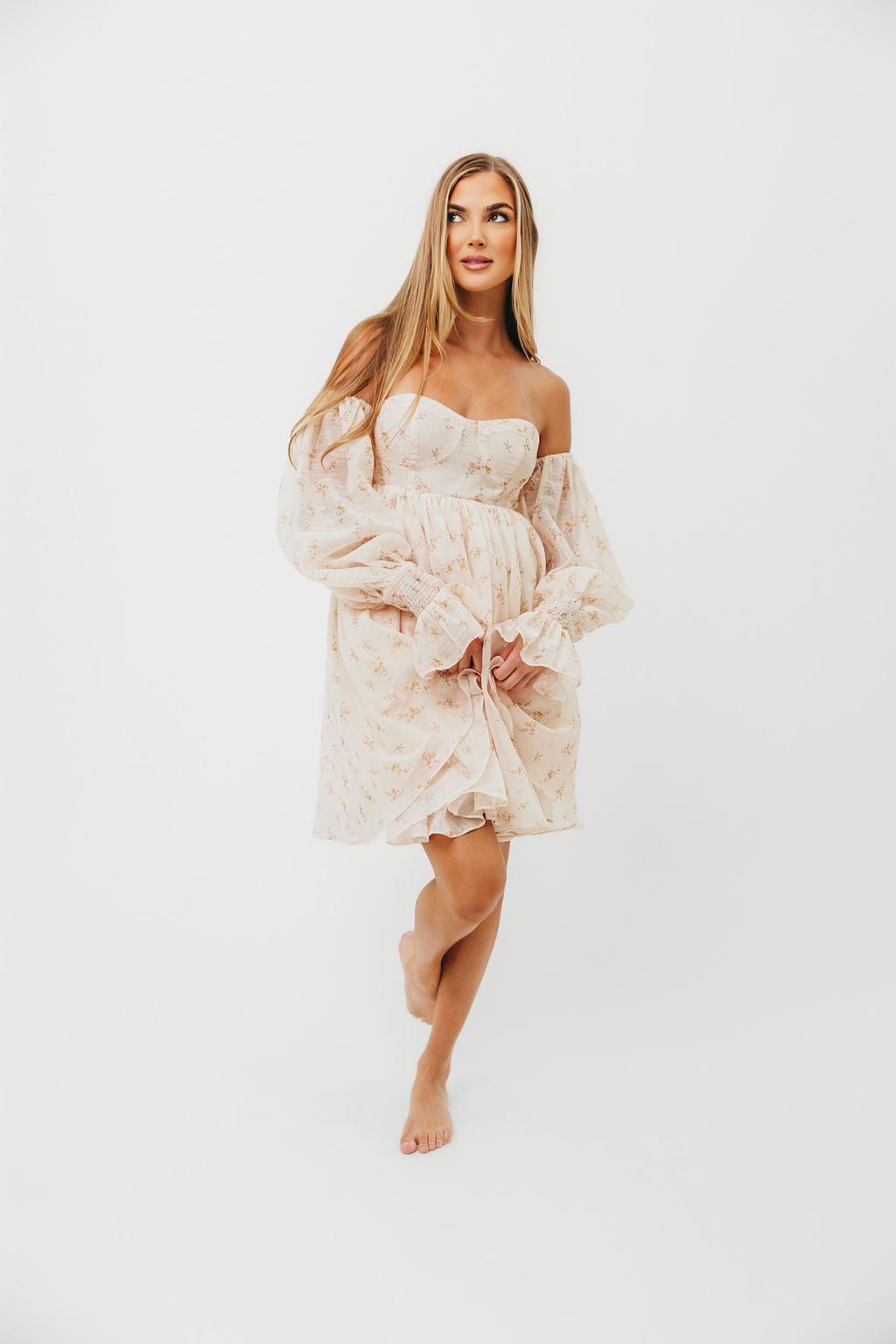 Kennedy Floral Mini Dress in Cream- Bump Friendly *Final-Sale*
