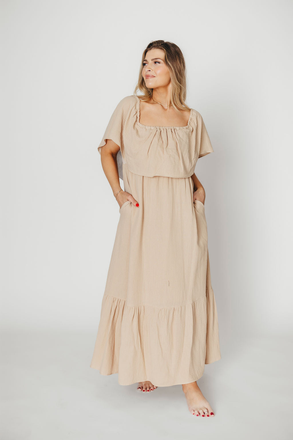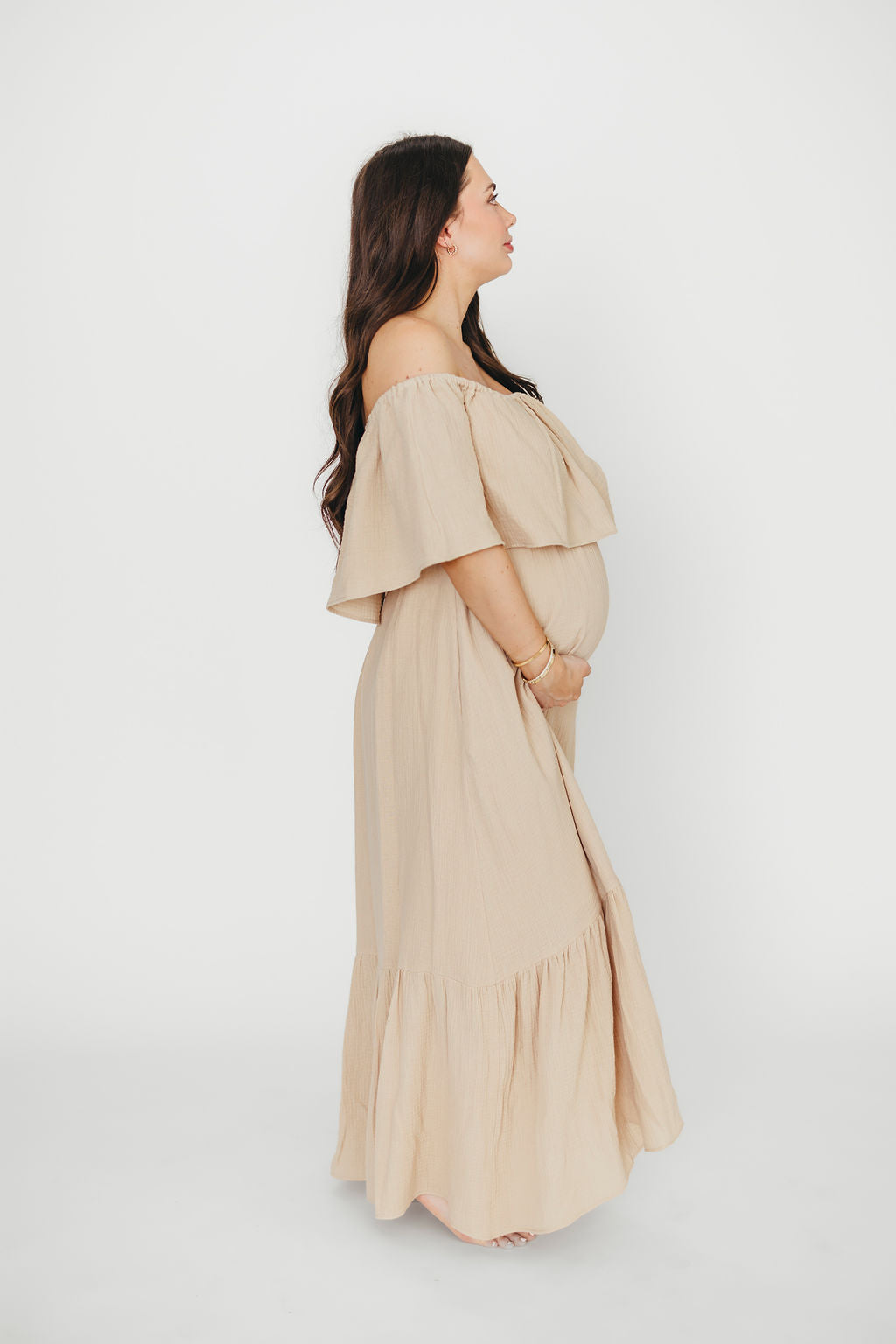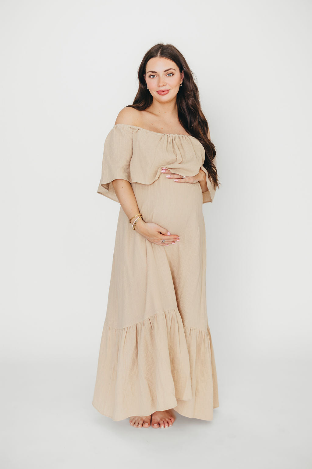 Josie 100% Cotton Maxi Dress in Beige - Bump & Nursing Friendly *Final-Sale*