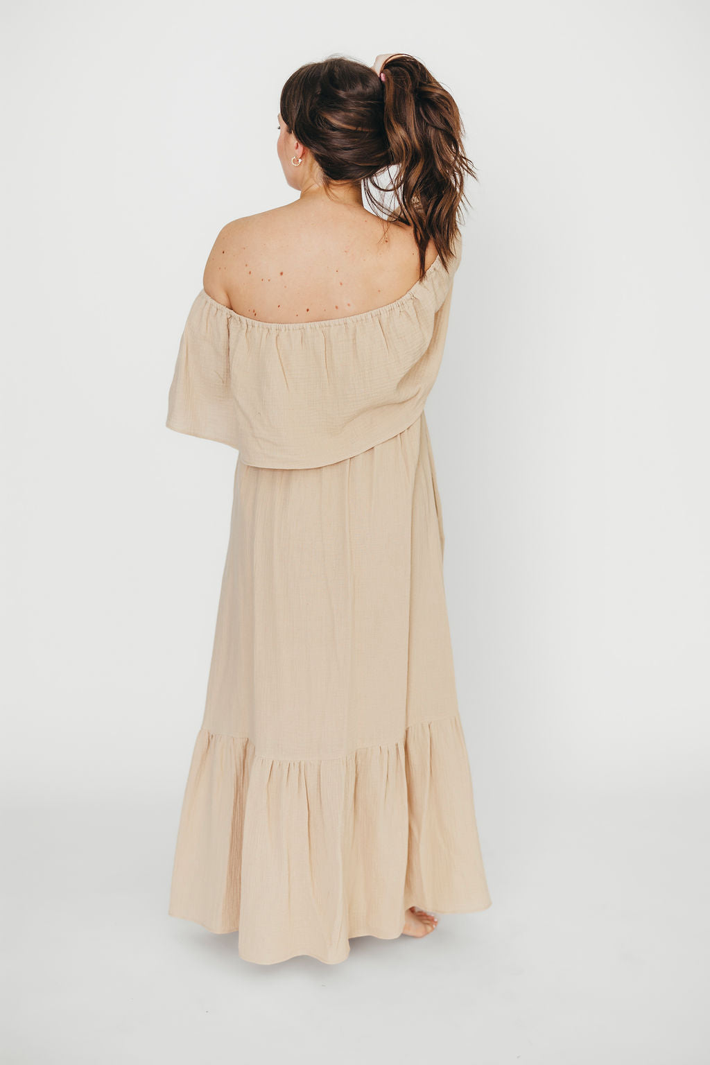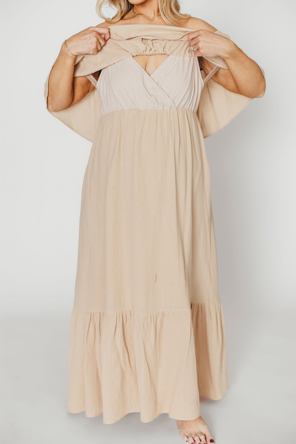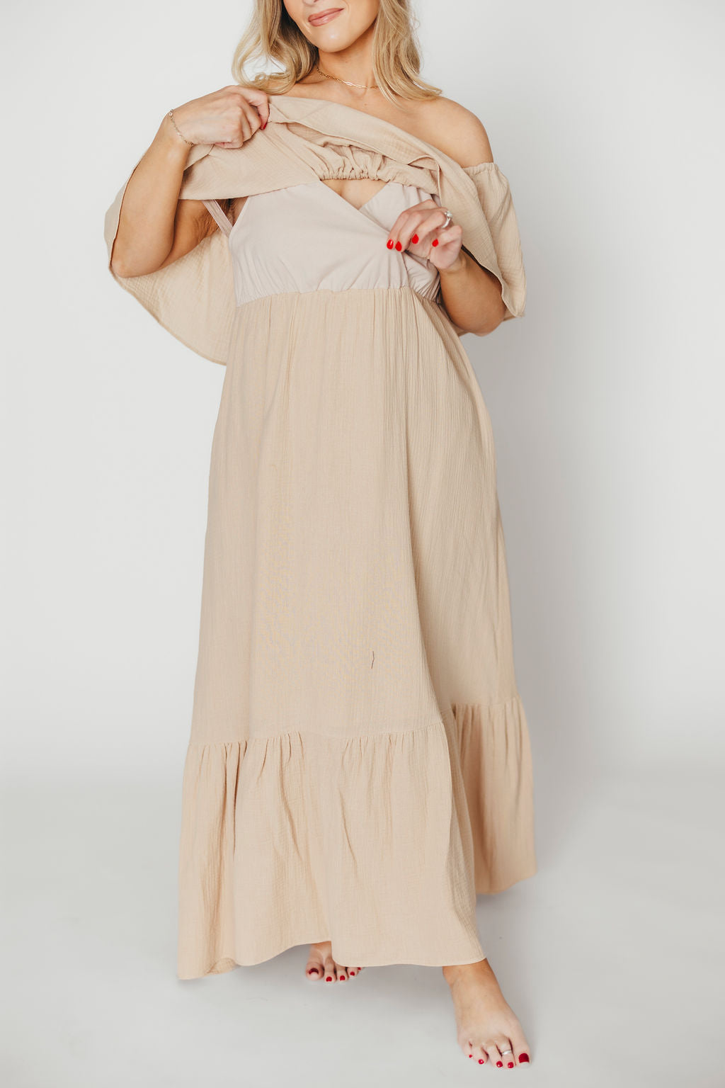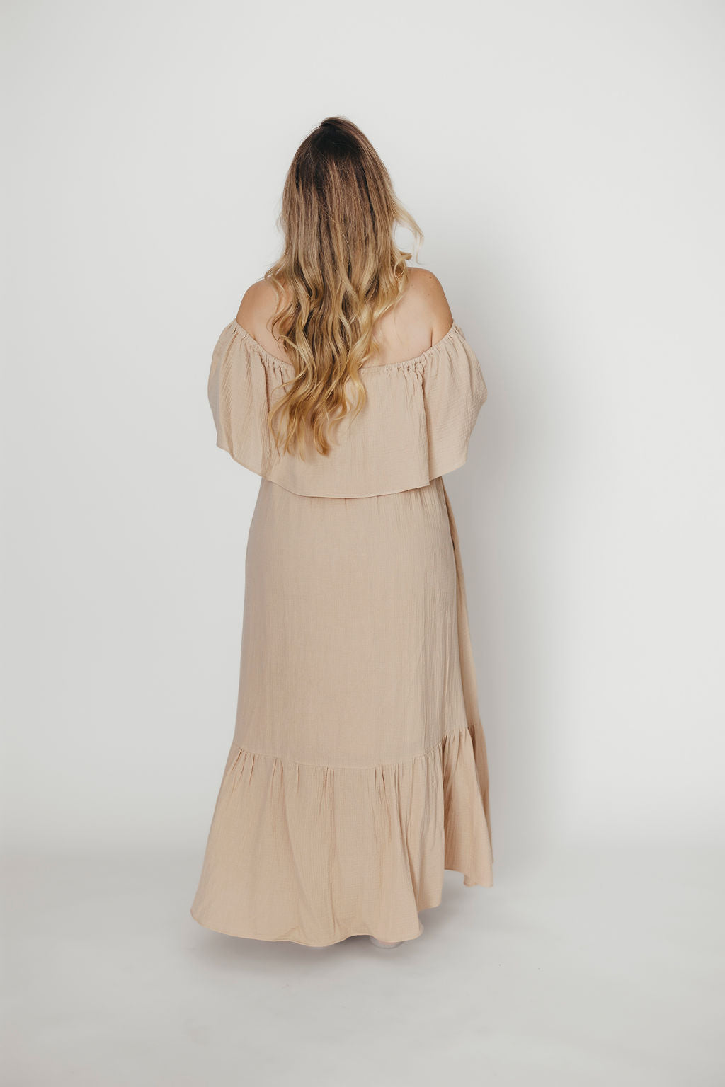 Josie 100% Cotton Maxi Dress in Beige - Bump & Nursing Friendly *Final-Sale*