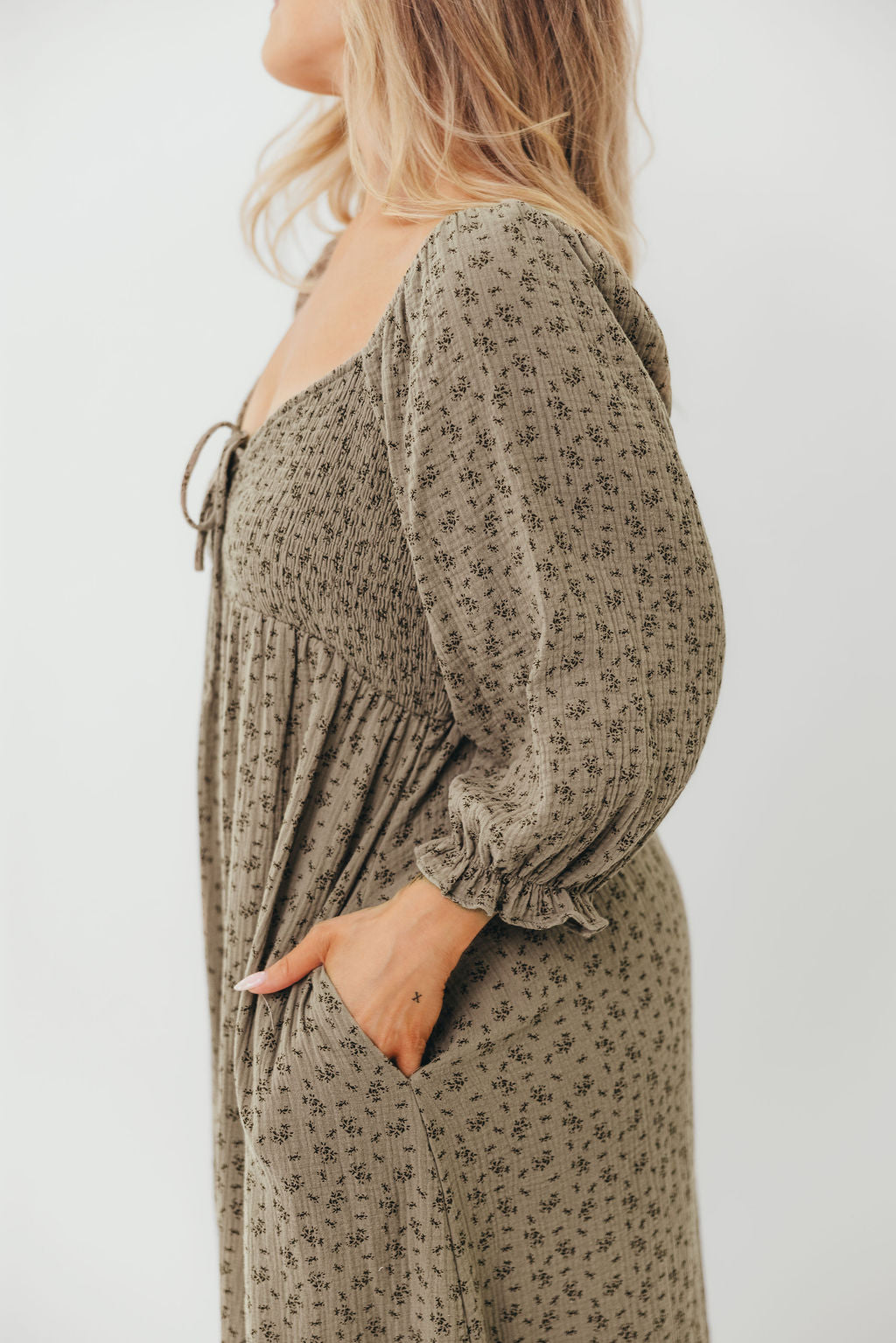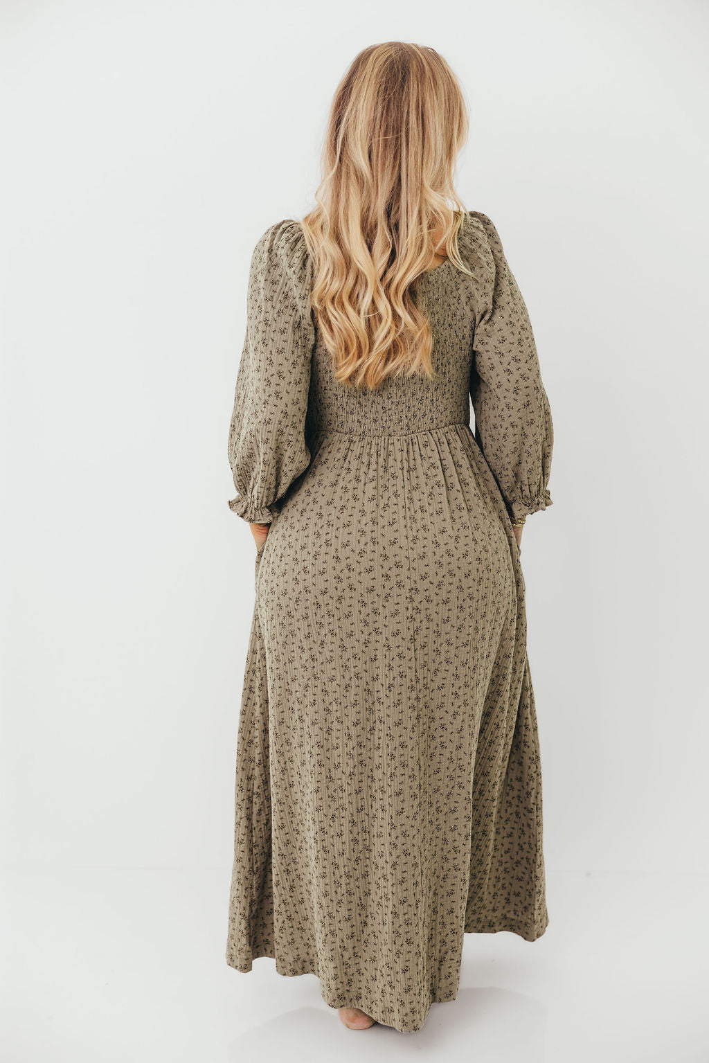 Cecilia 100% Cotton Smocked Maxi Dress in Olive Foliage - Bump Friendly (Restocking in Dec)