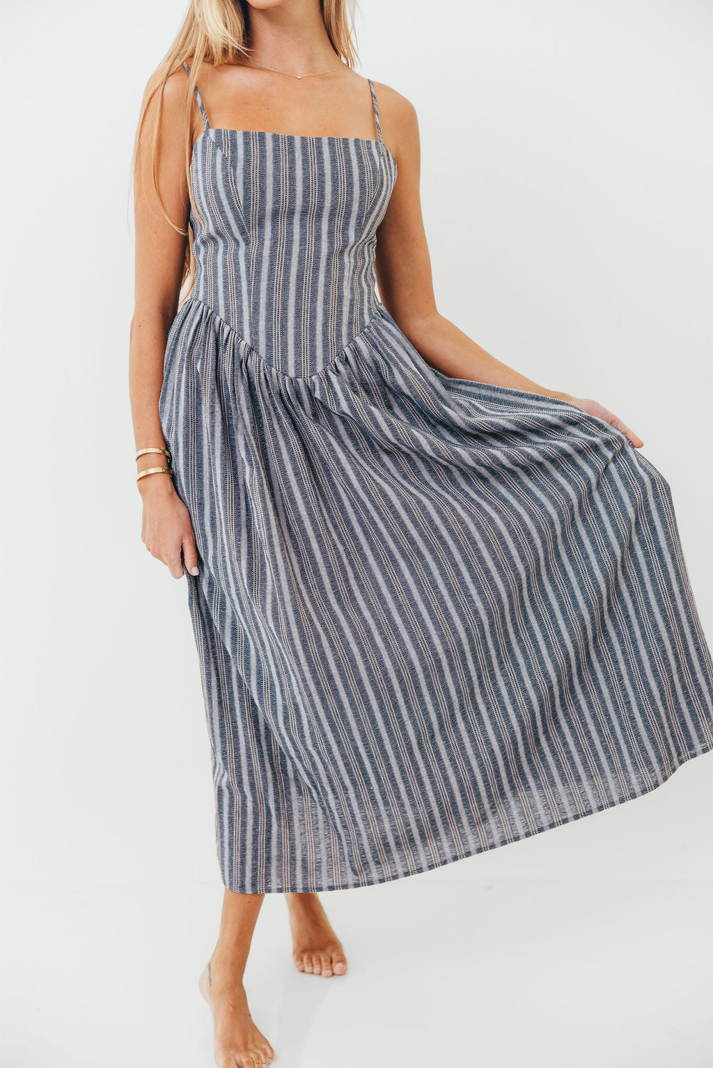 Nantucket 100% Cotton Midi Dress in Harborline