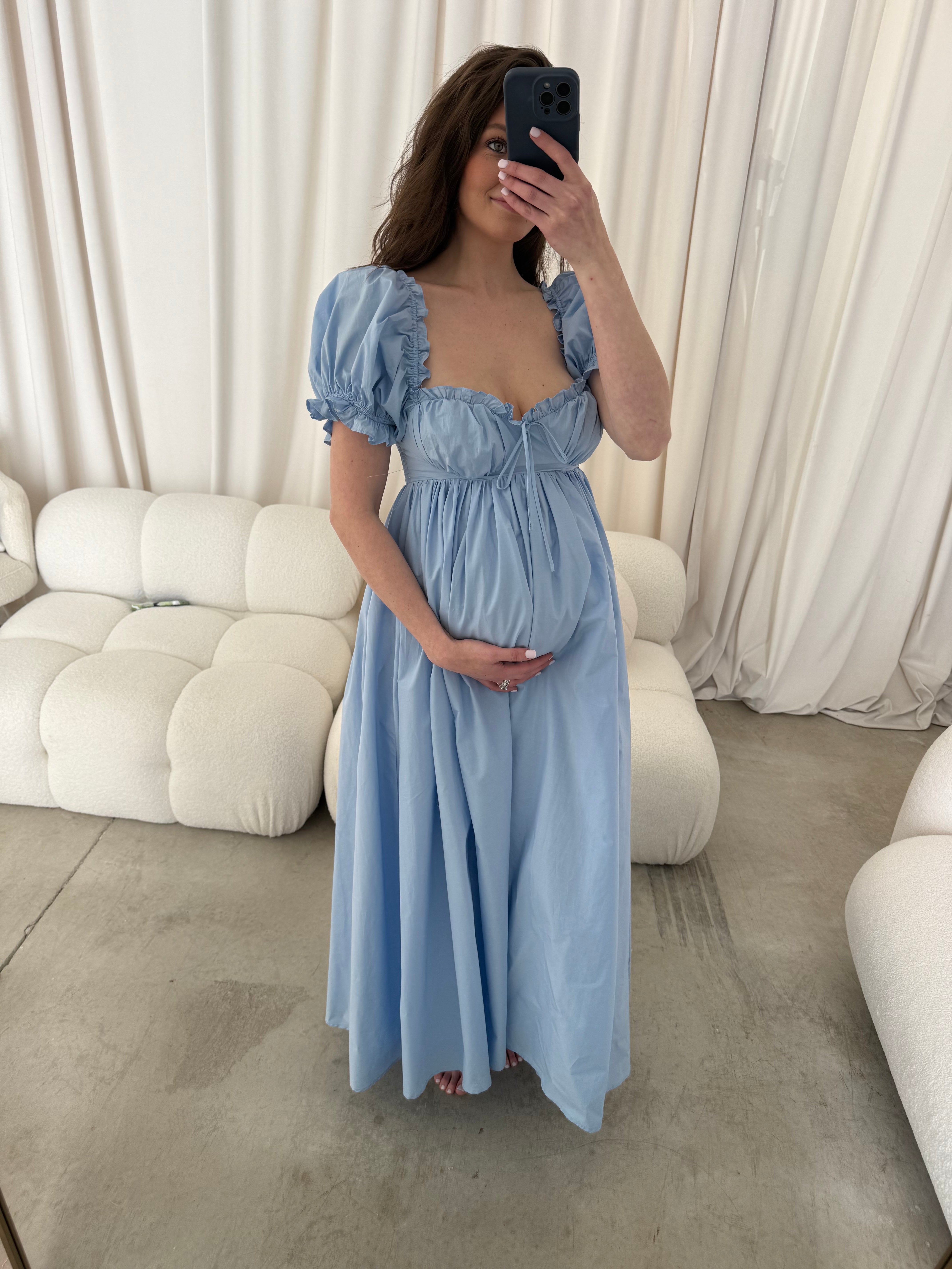 Olivia 100% Cotton Maxi Dress in Deep Blue - Bump Friendly