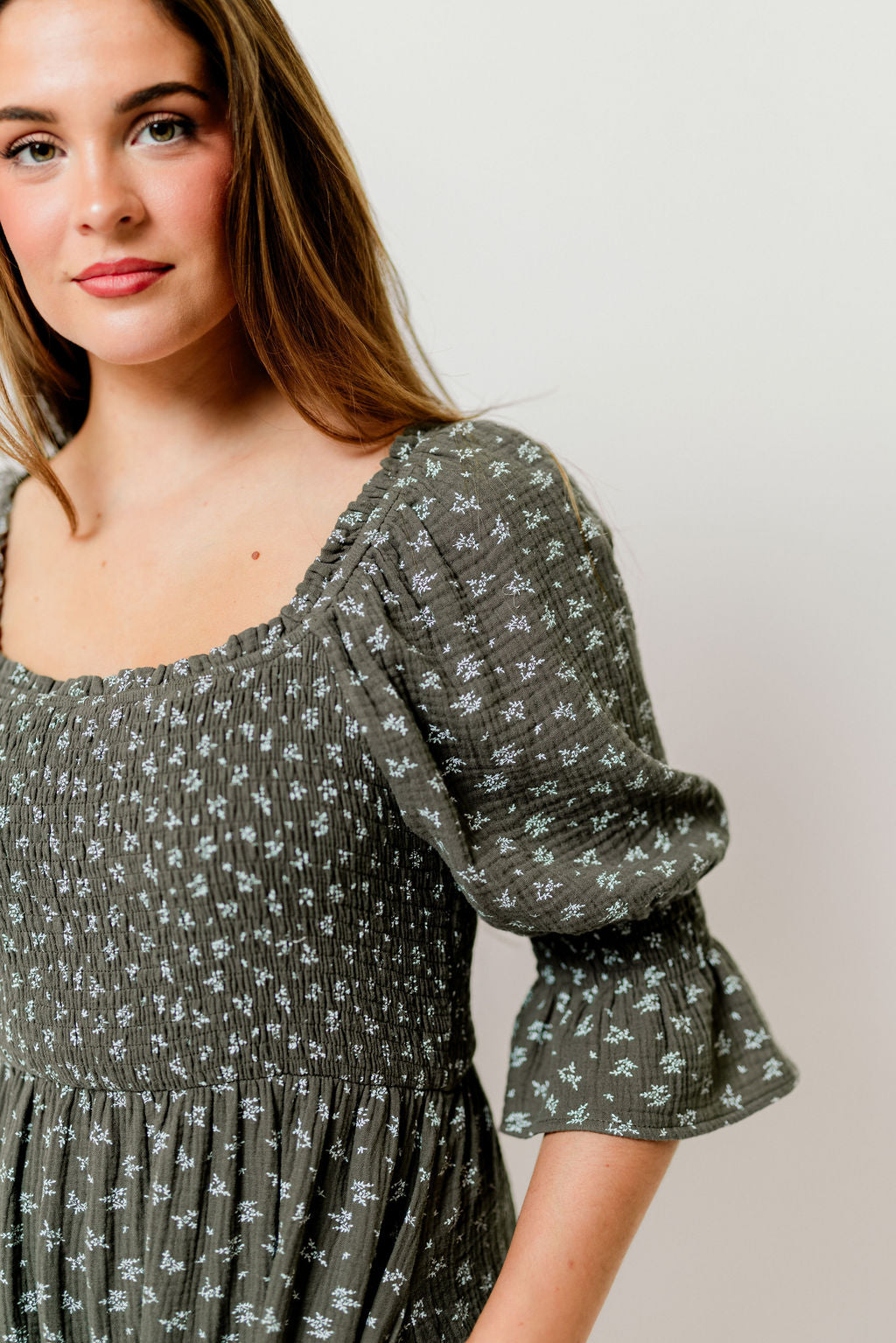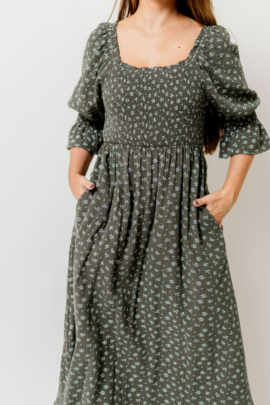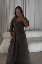 Sienna 100% Cotton Puff Sleeve Maxi Dress in Forest Foliage - Bump Friendly