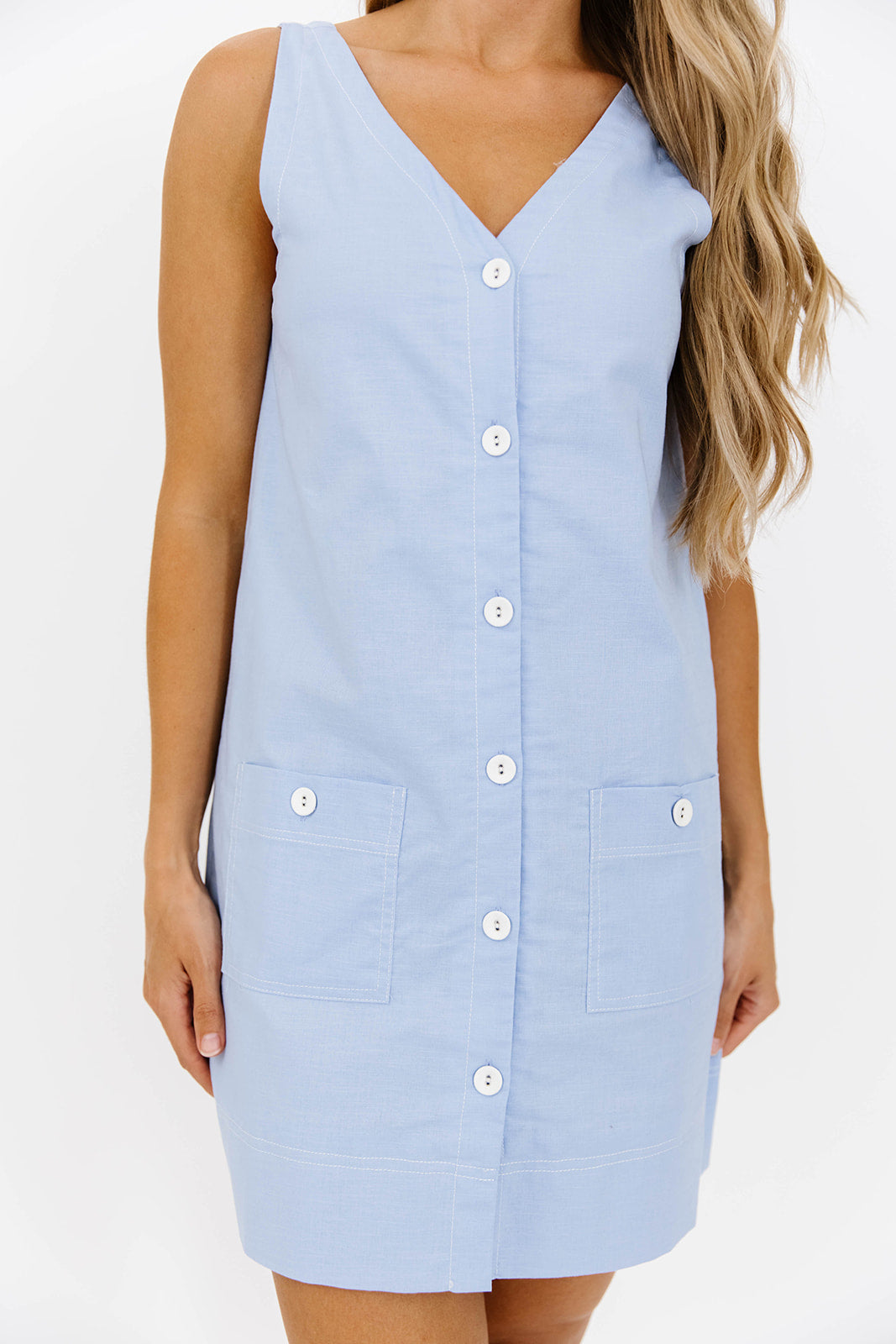Tasi Contrast Stitch Mini Dress in Chambray *Final-Sale*