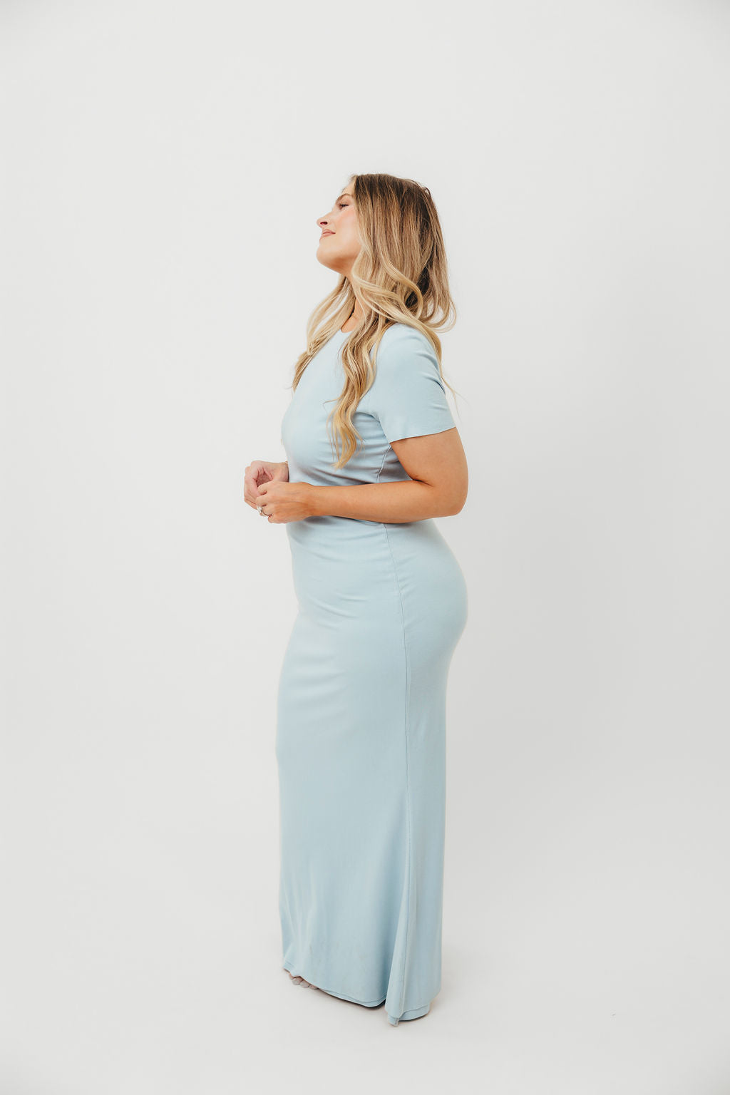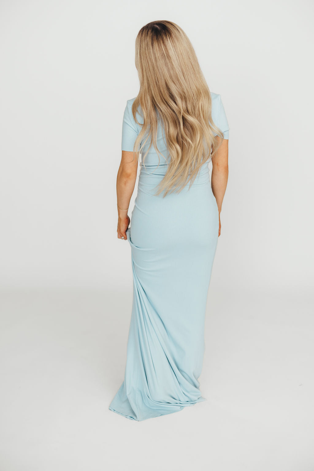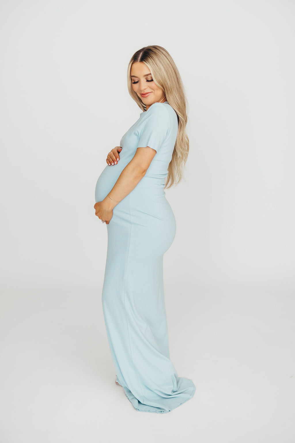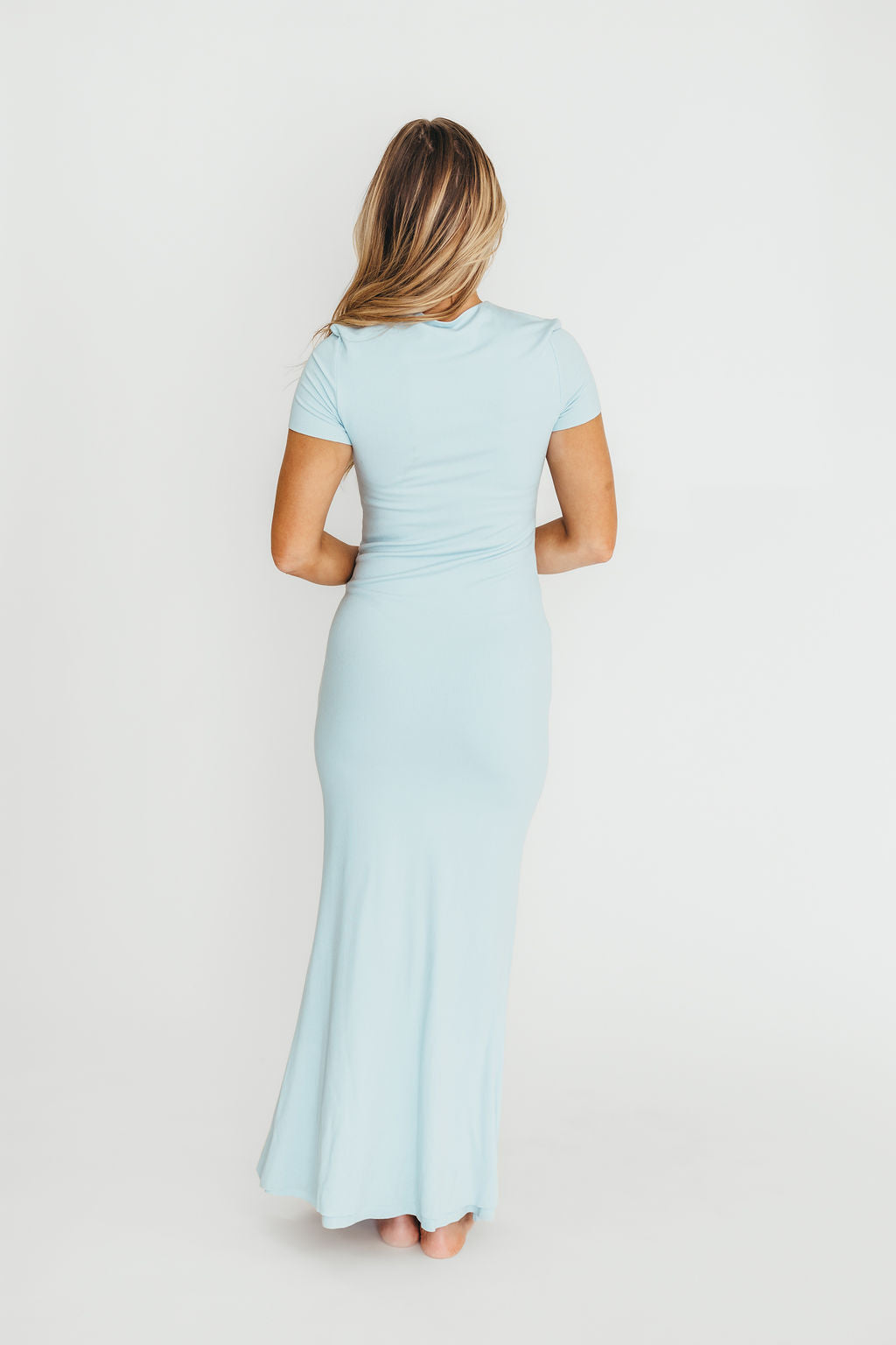 The Charlie Ribbed Maxi Dress in Baby Blue -Bump Friendly