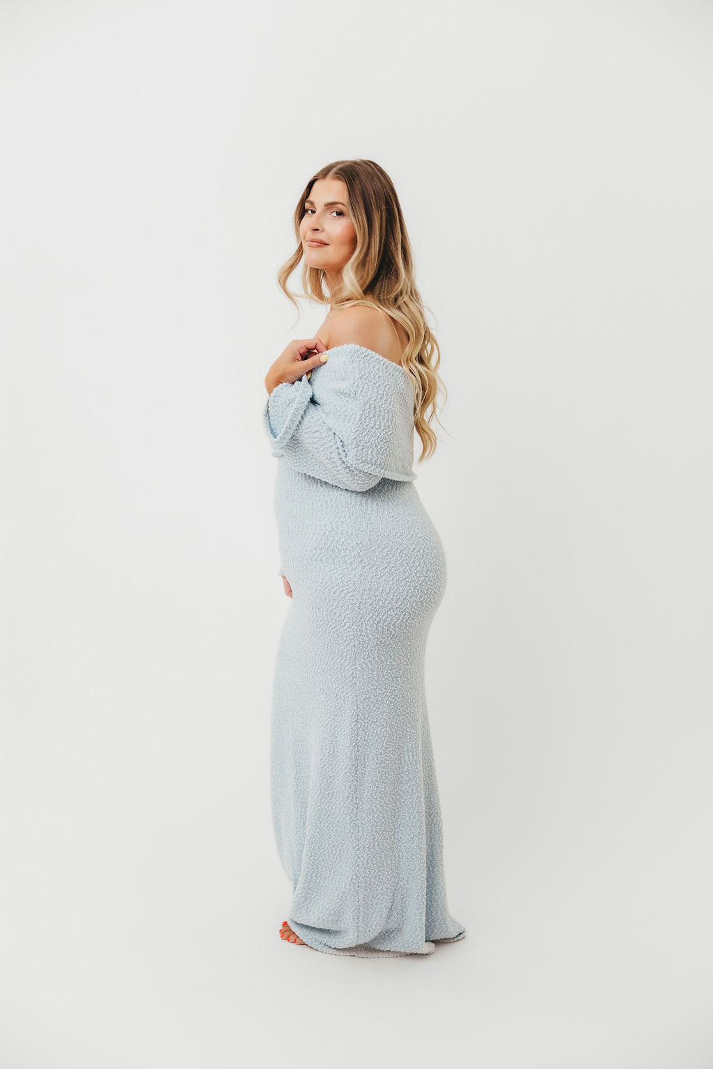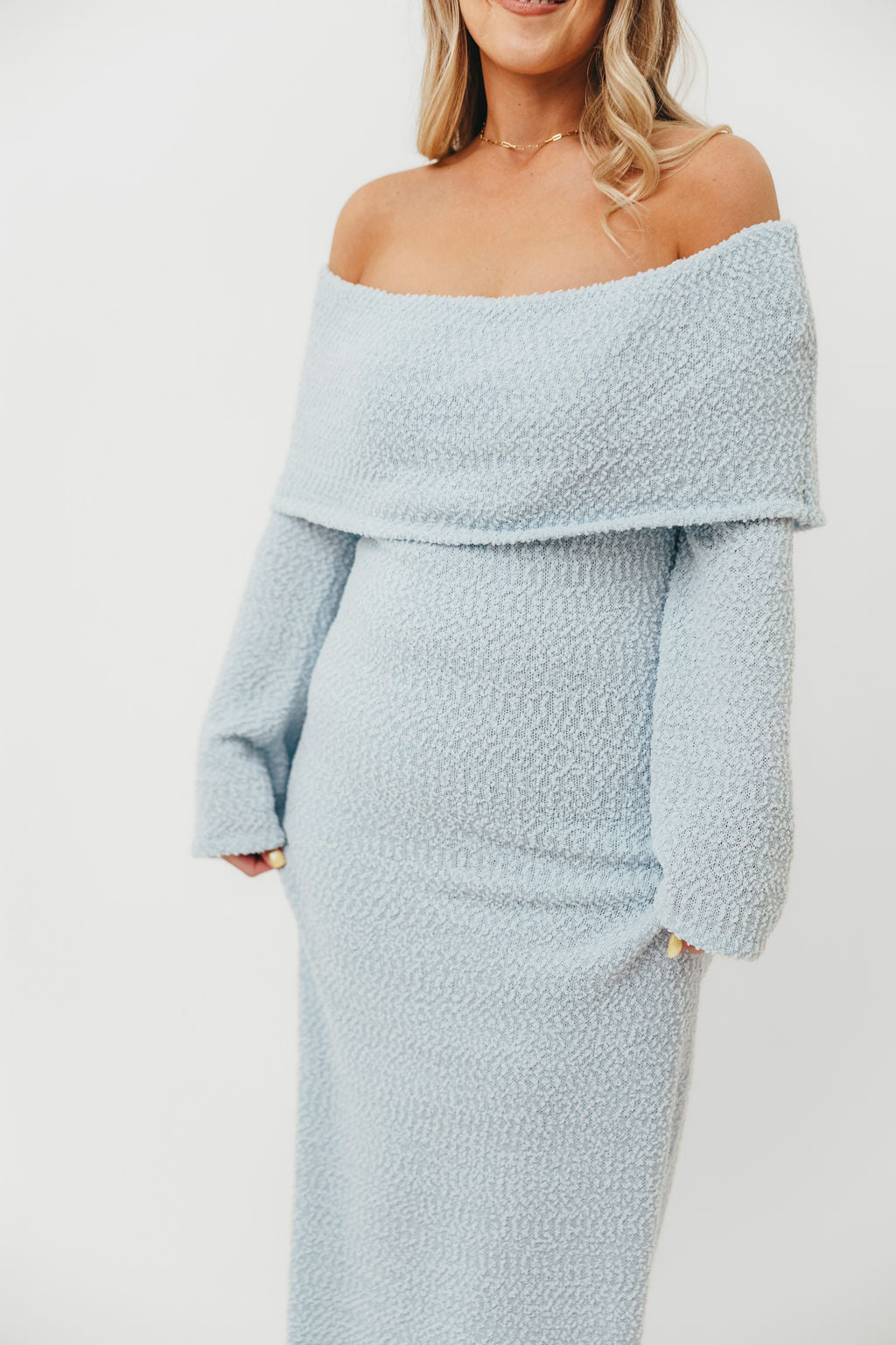 Nora Knit Maxi Dress in Dusty Blue - Bump Friendly
