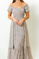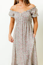 Valeria Romantic Floral Maxi Dress in Taupe
