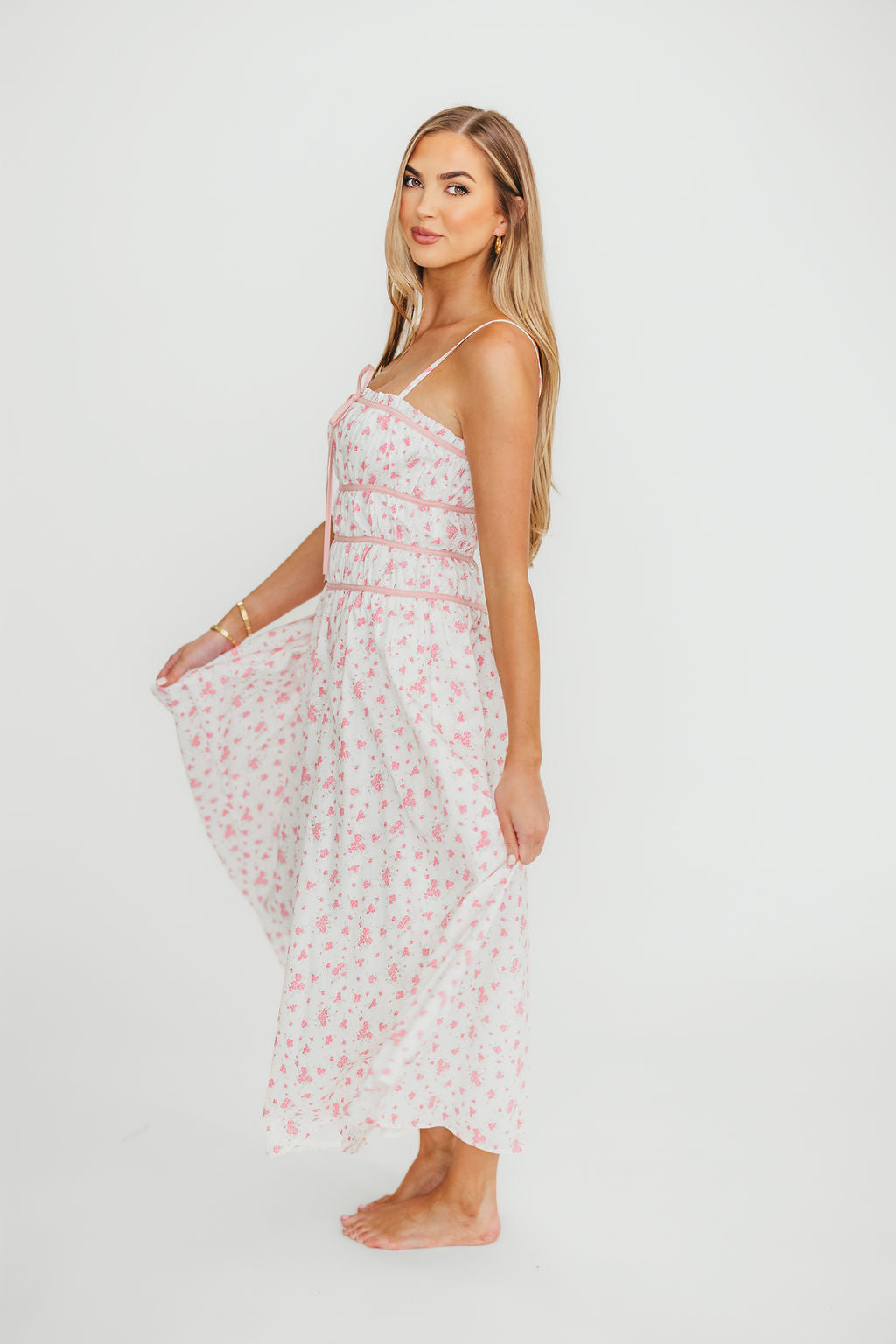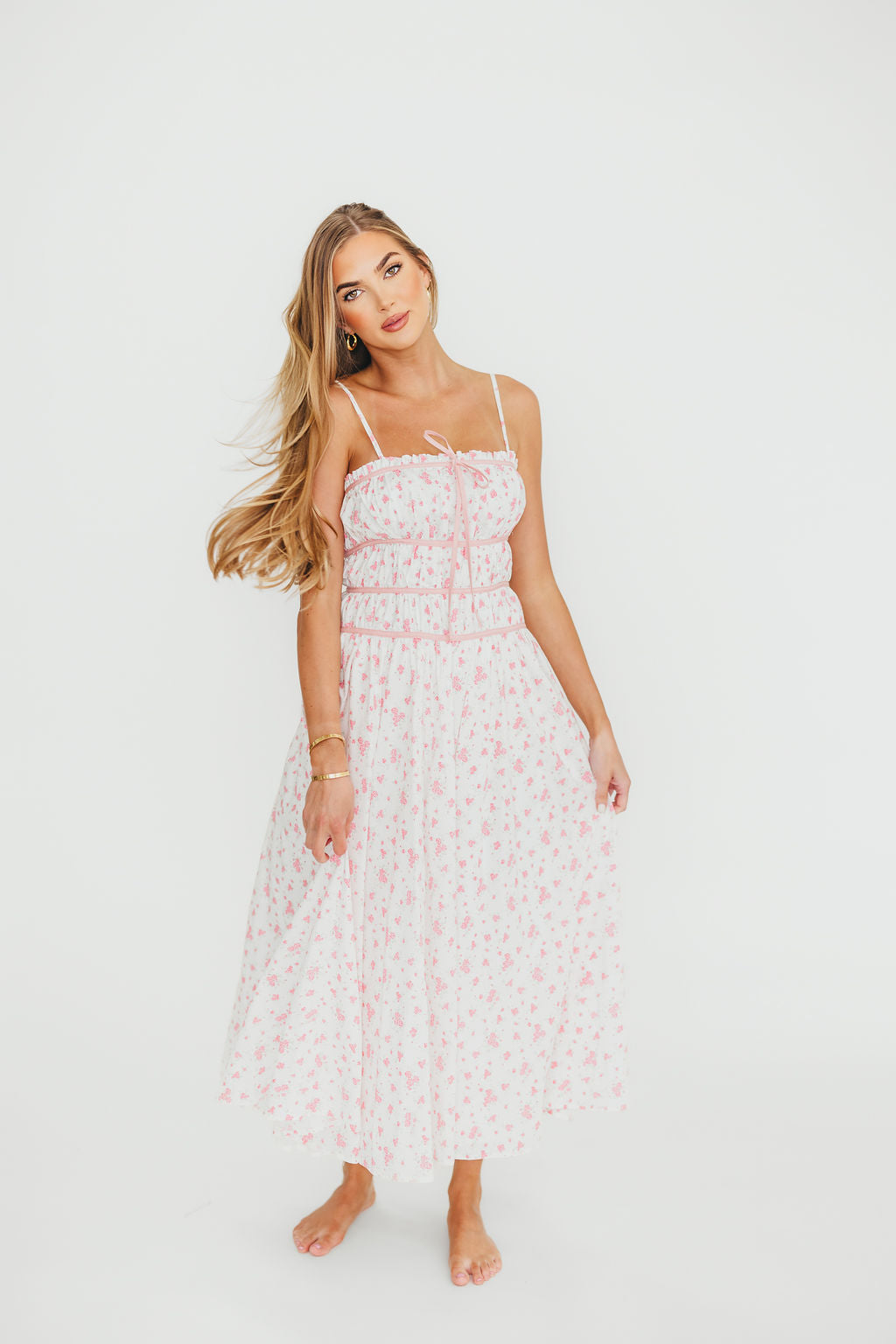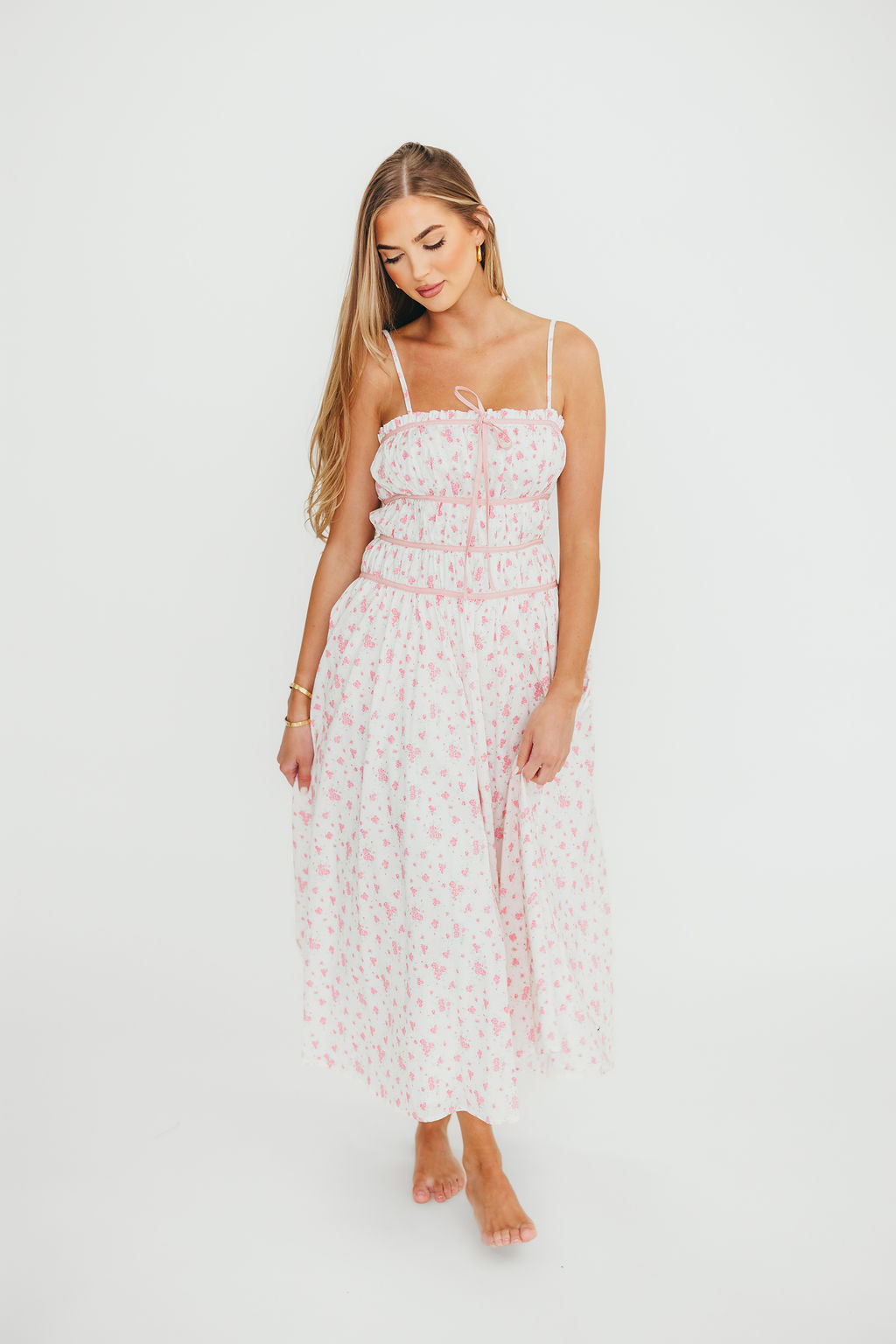 Prepare to be obsessed--meet the new Vanessa Midi Dress from Mable, a flirty chiffon number that you can wear all season long! This delightful gown features a beautiful floral print and flattering gathered bodice, with a cute bow accent and flowy midi skirt that will make you want to dance the night away!