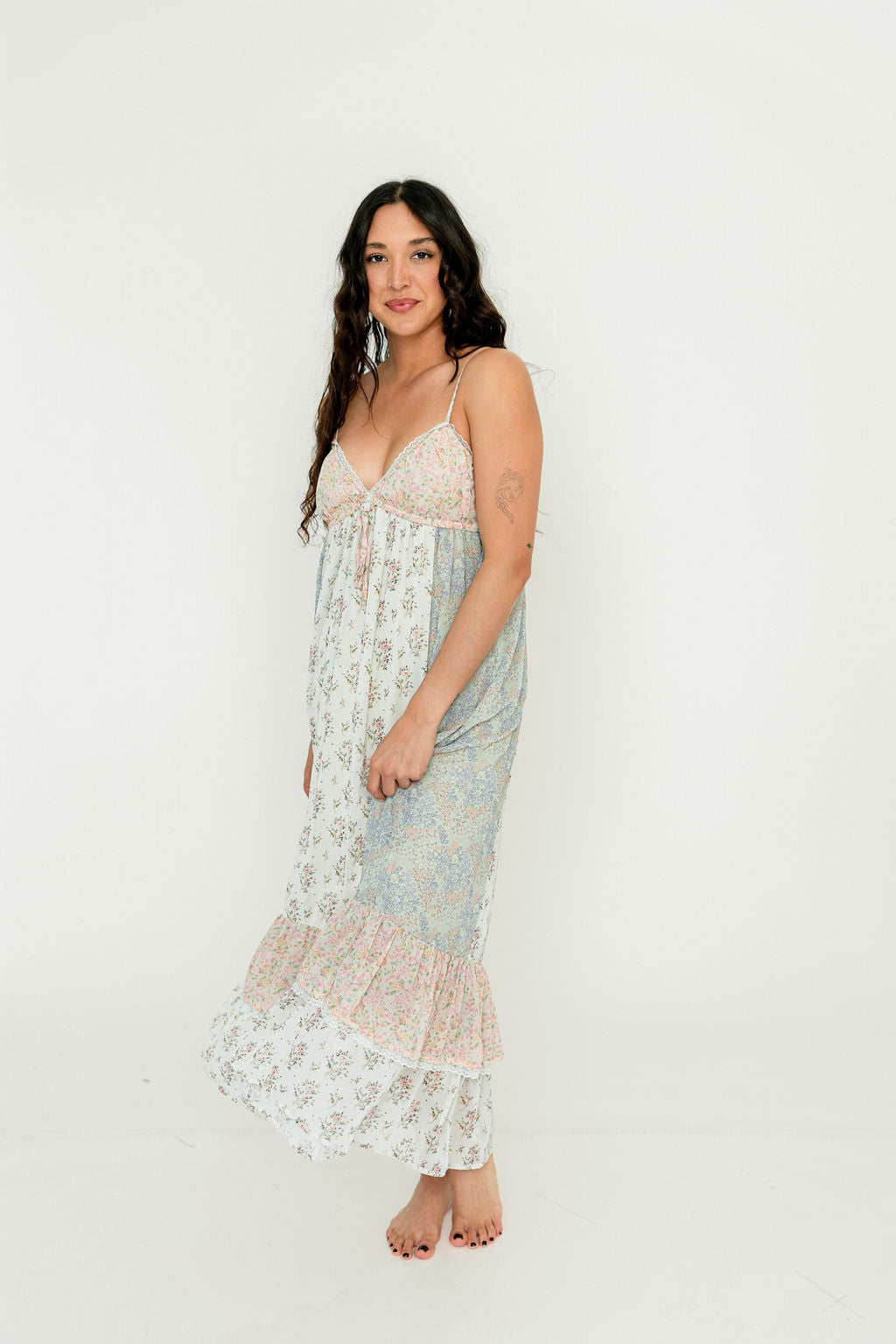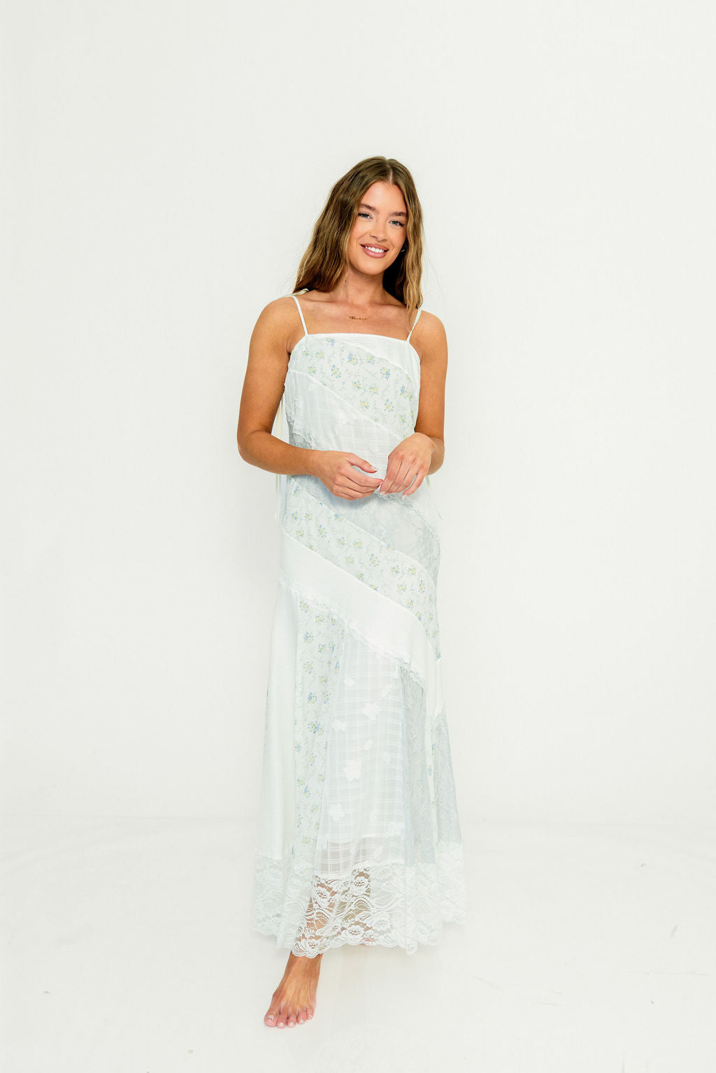 Garner Floral and Lace Maxi Dress in Ivory/Blue