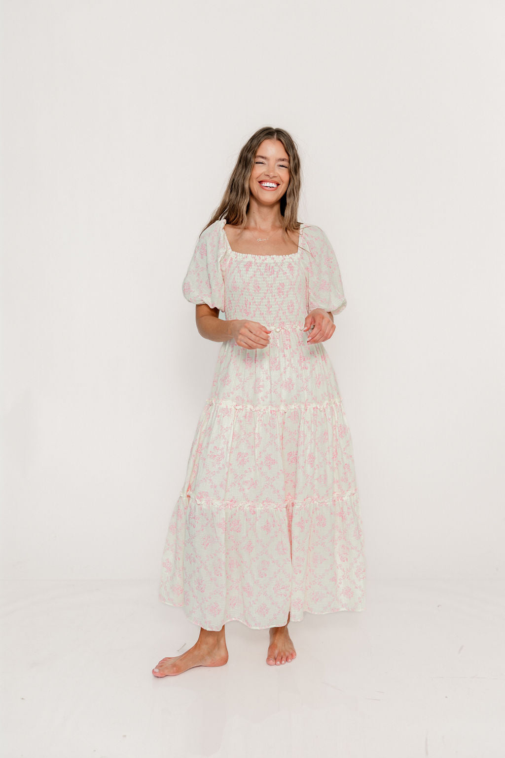 Karolyn Antique Puff Sleeve Tiered Maxi Dress in Pink