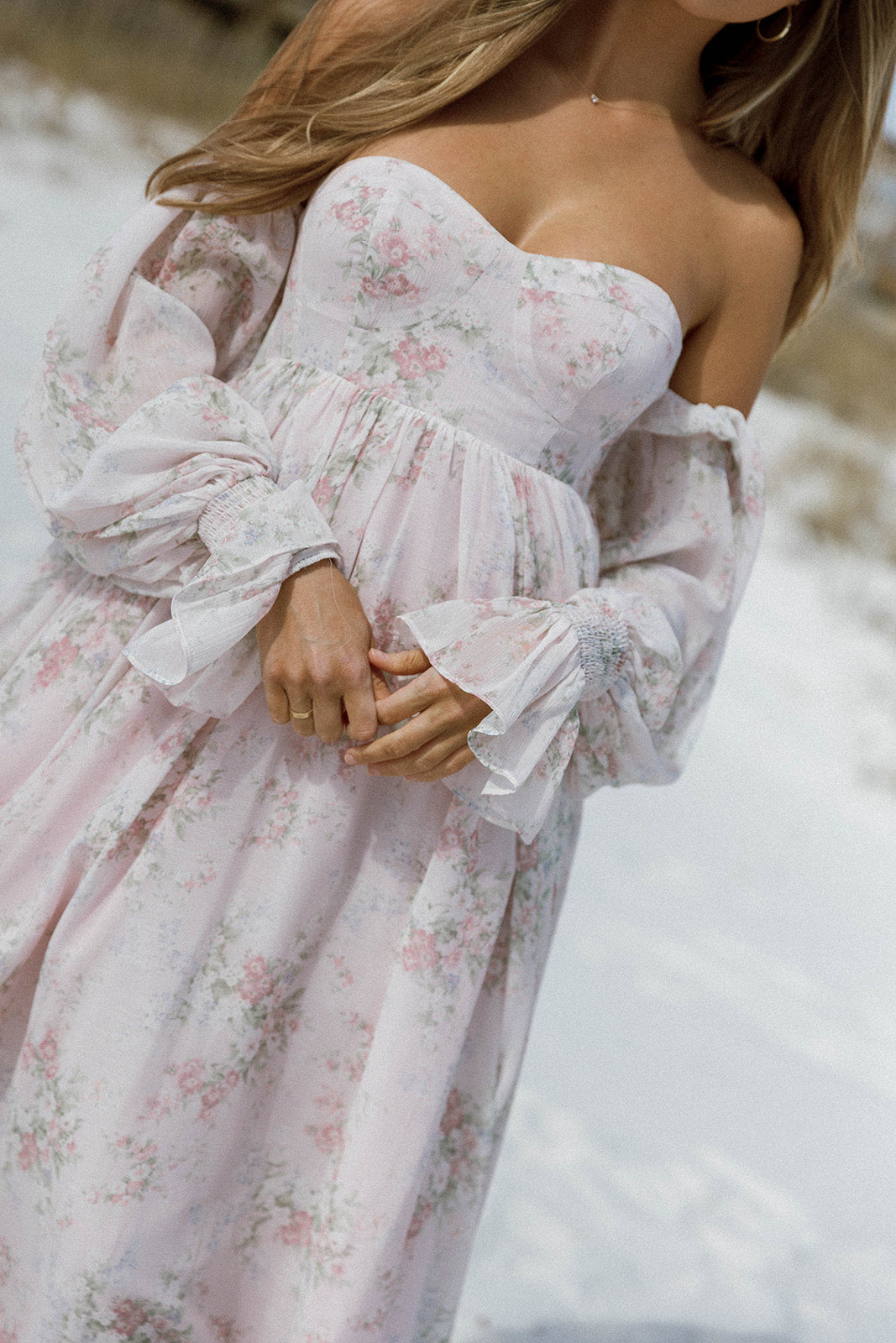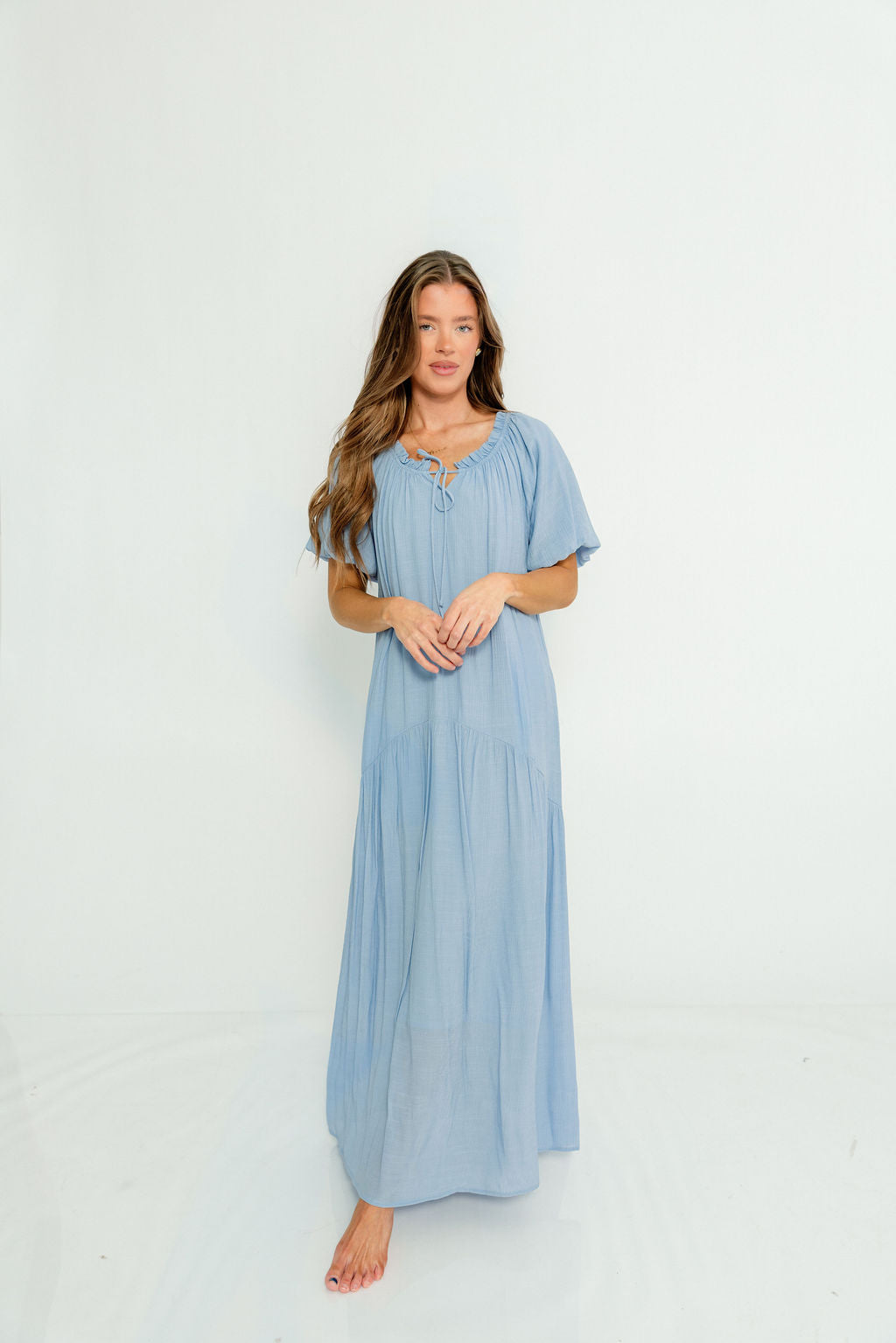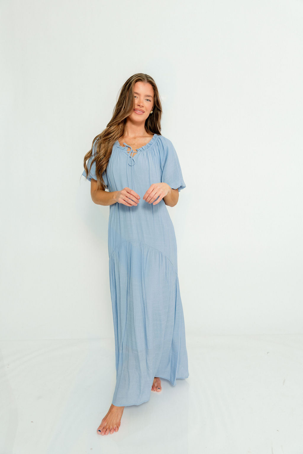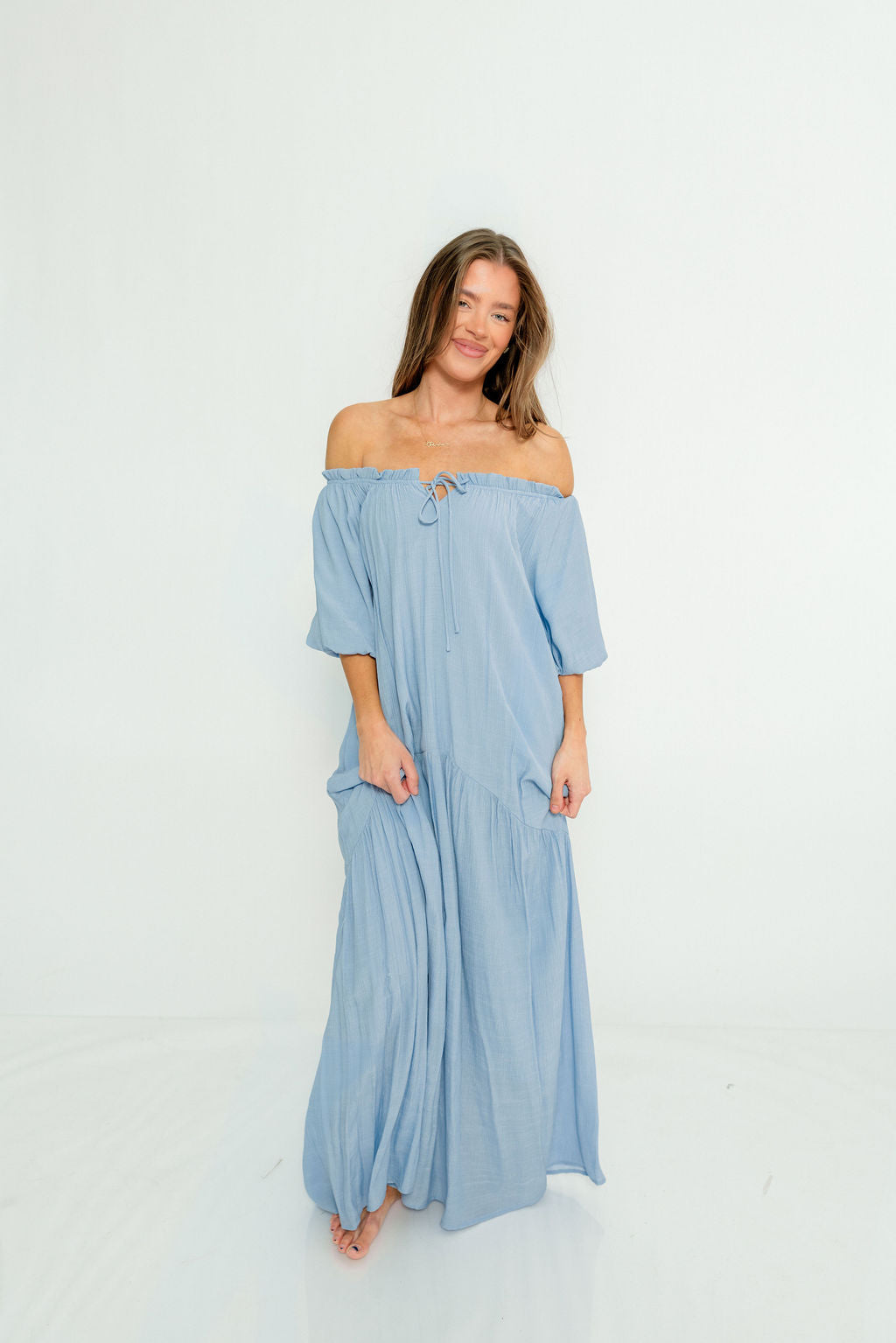 Christina Puffed Sleeve Maxi Dress in Cloud - Bump Friendly