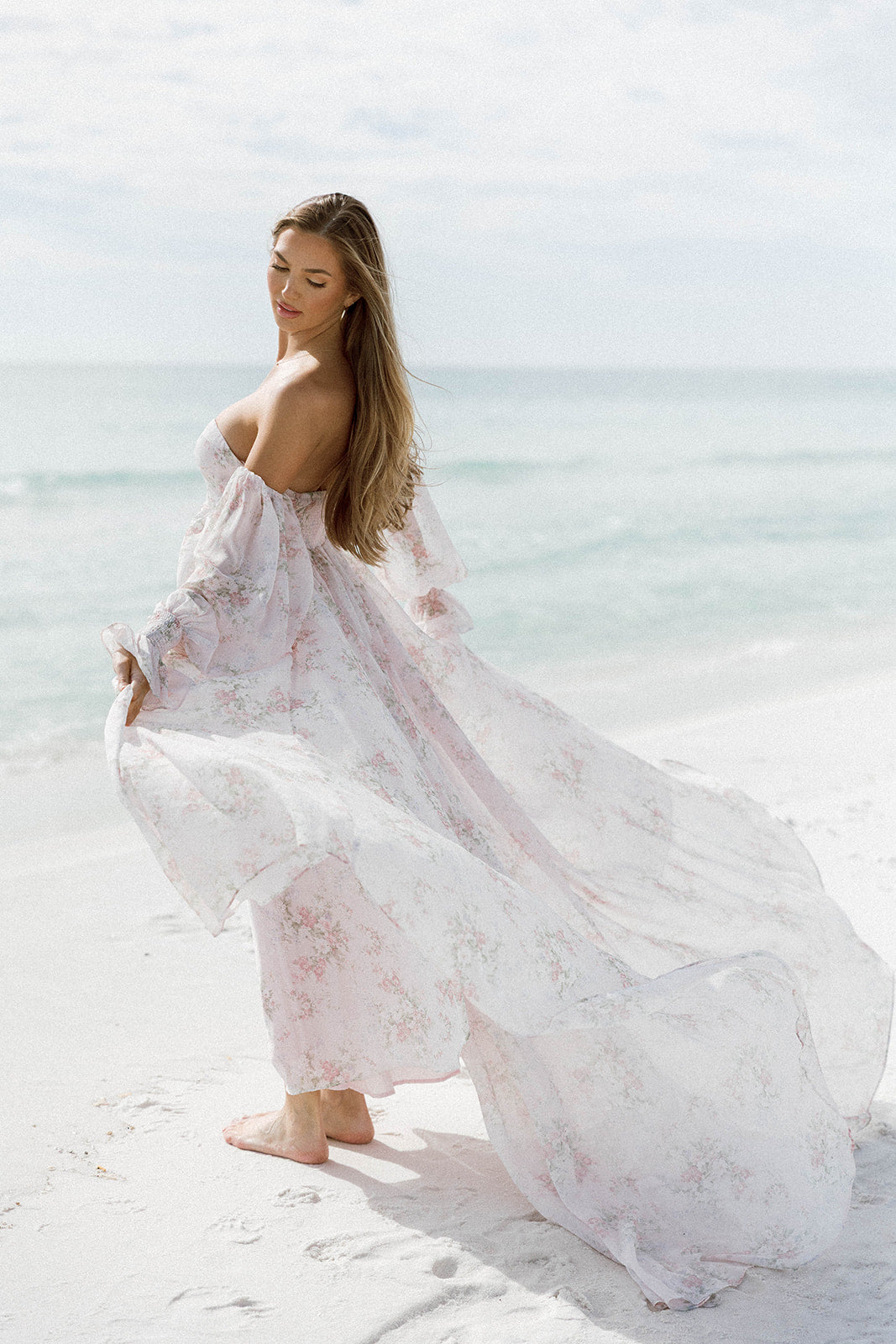 Delilah Maxi Dress with Train in Muted Blush Floral - Bump Friendly