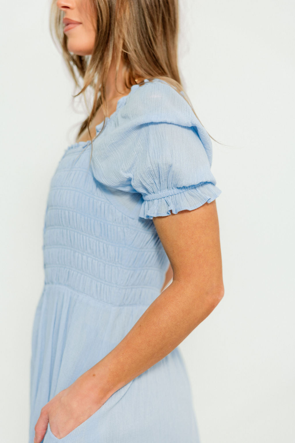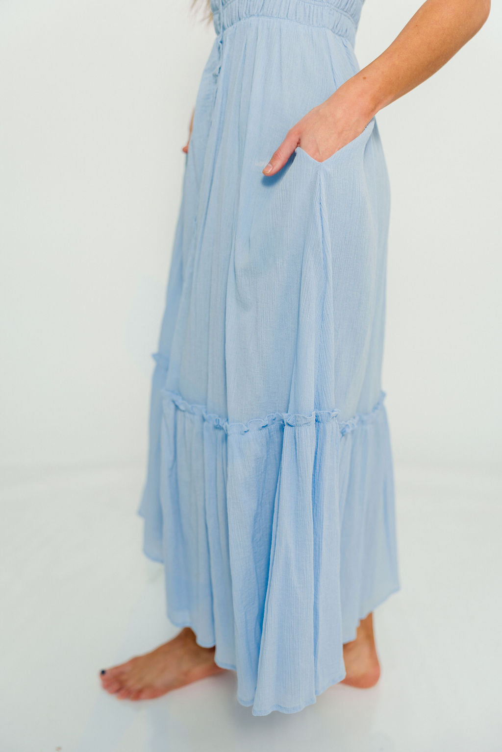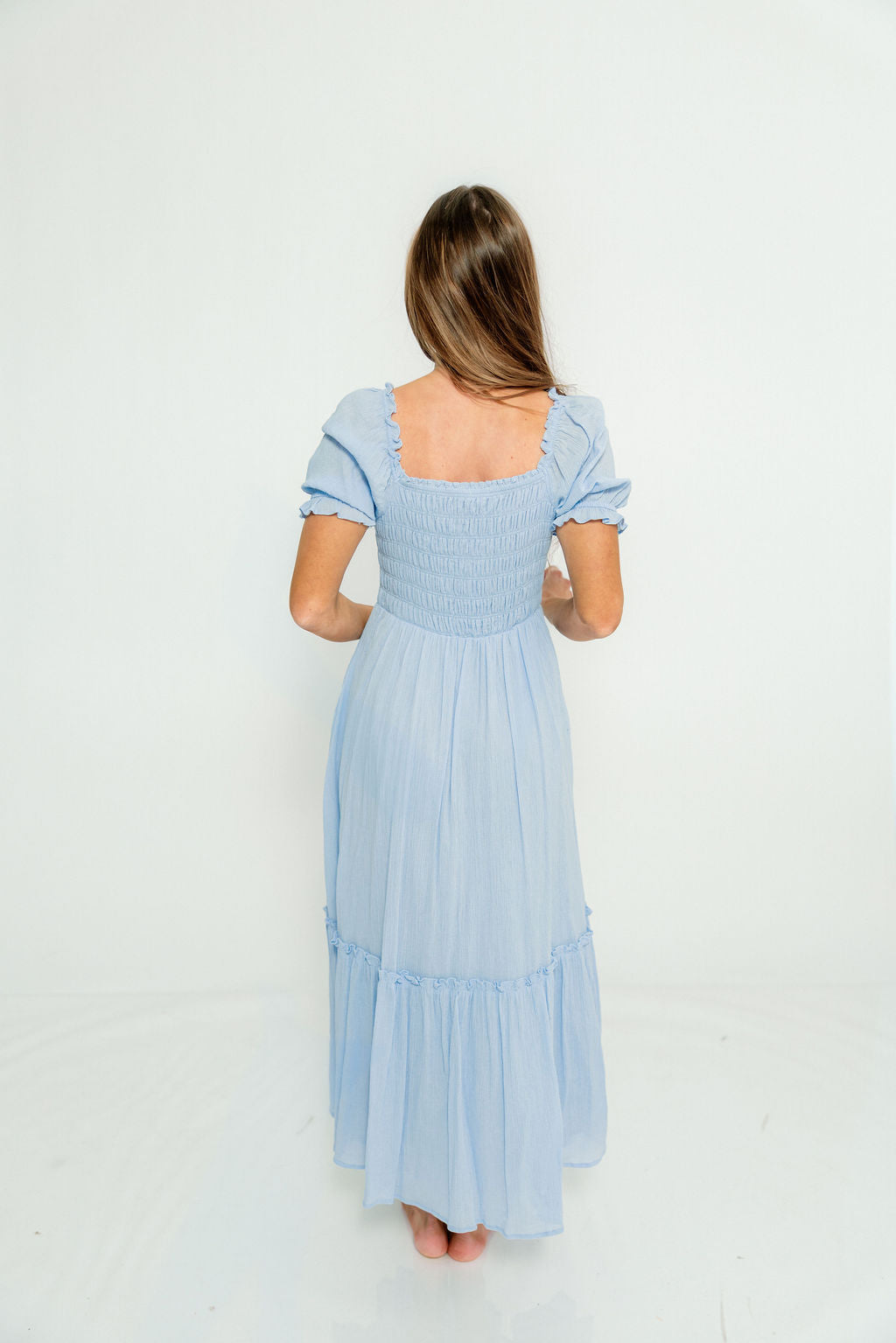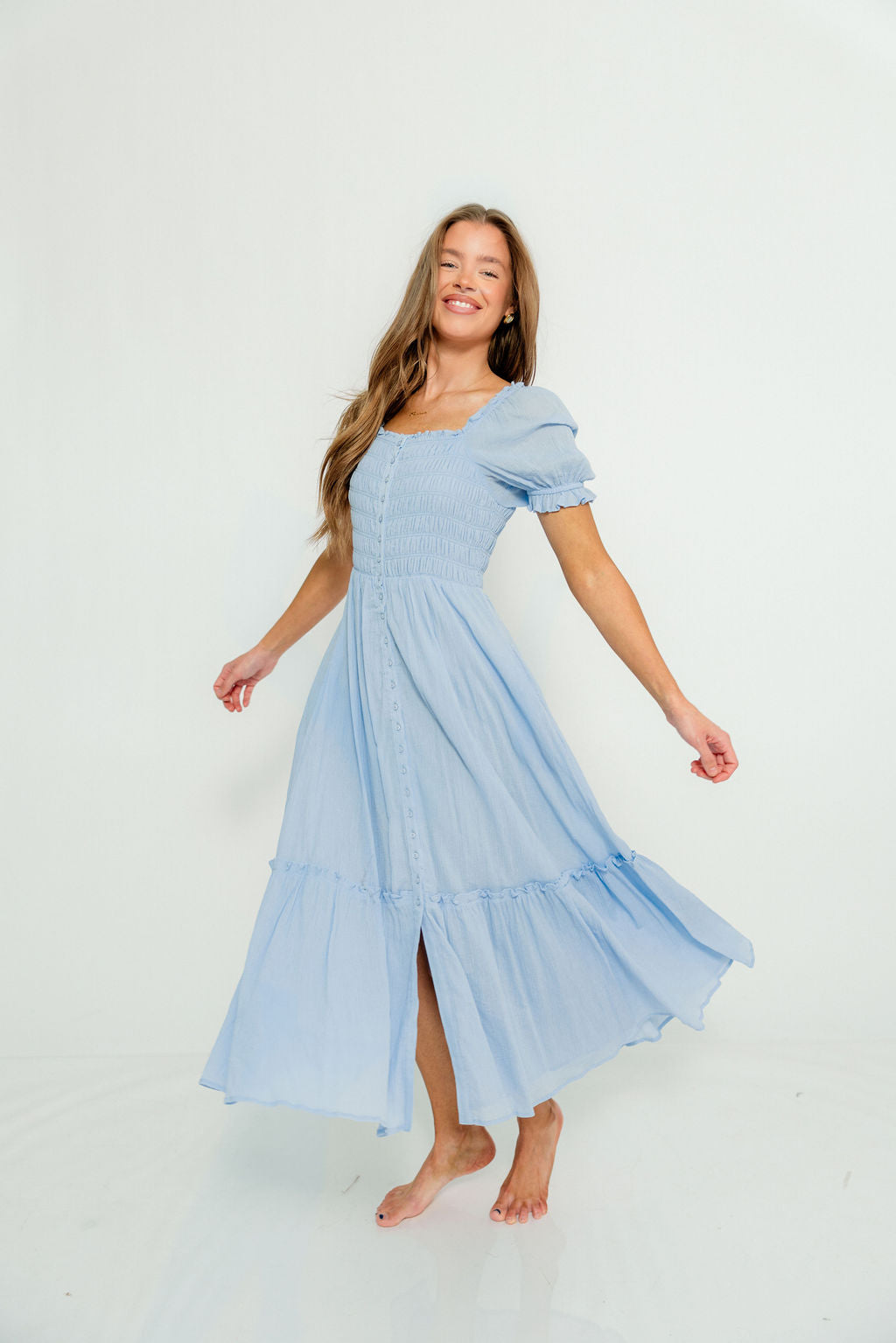 Mara Smocked Button Down Maxi Dress in Blue Aura