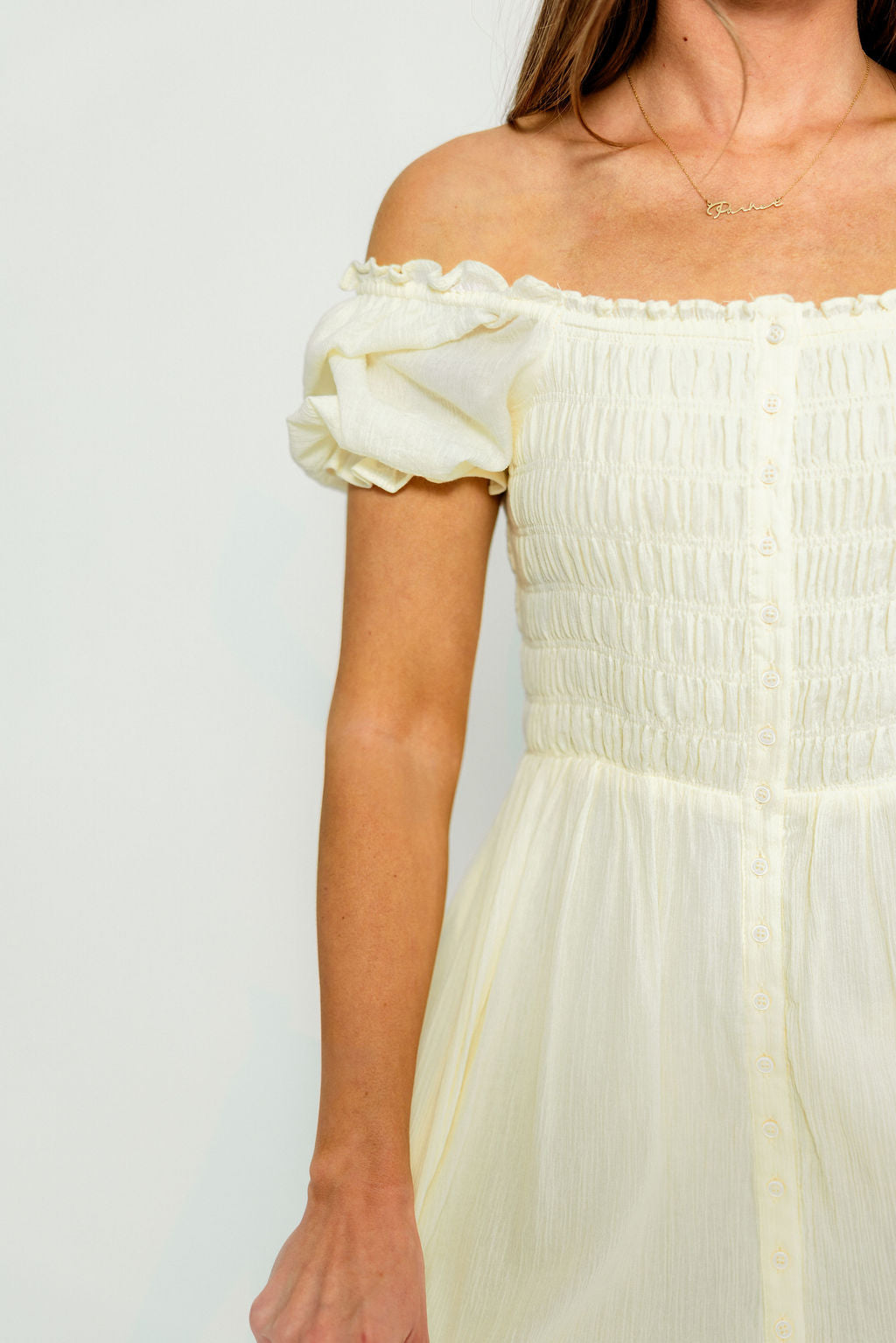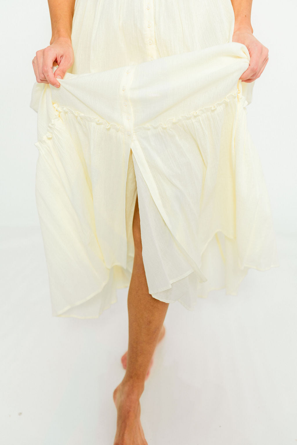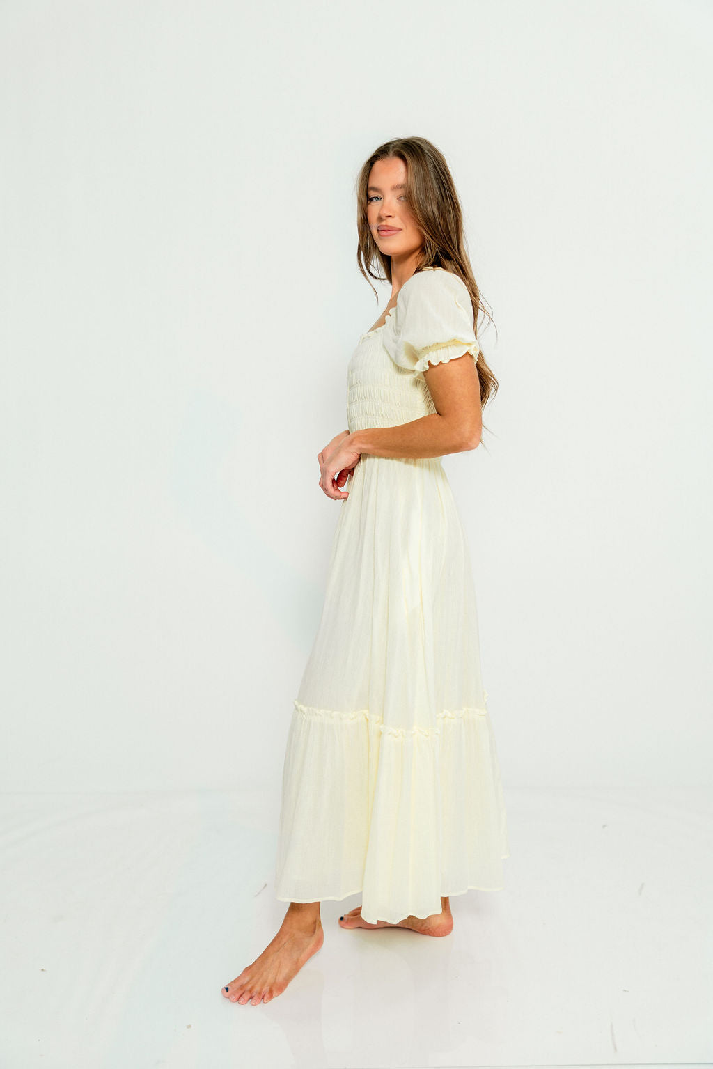 Mara Smocked Button Down Maxi Dress in Lemon Water