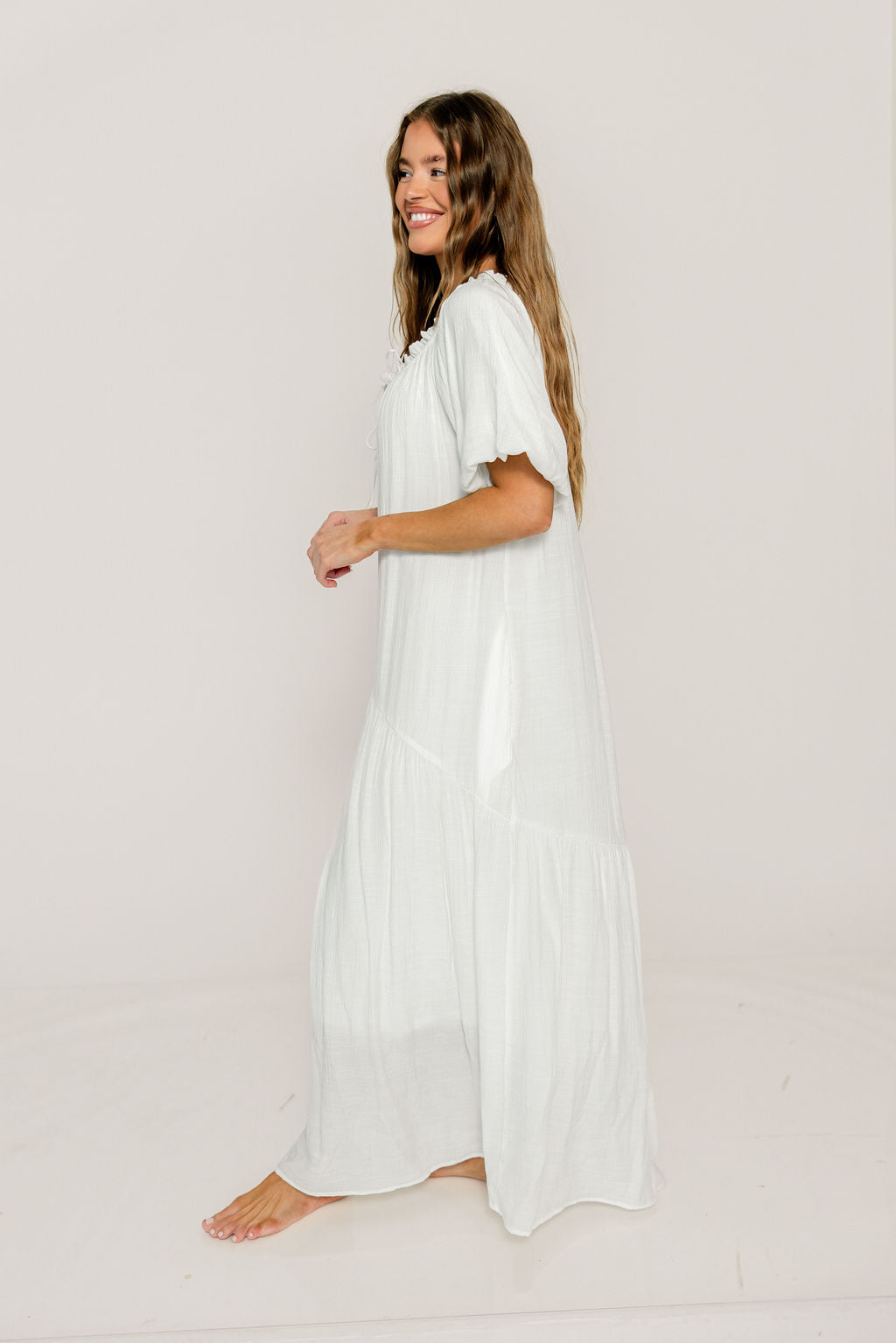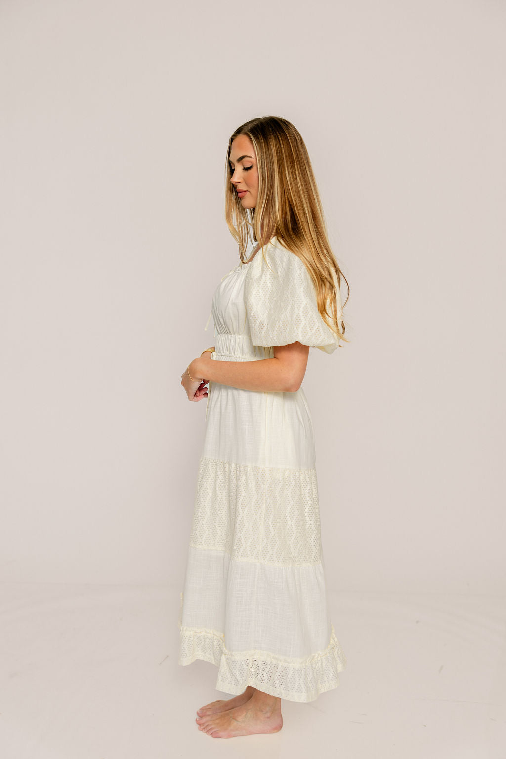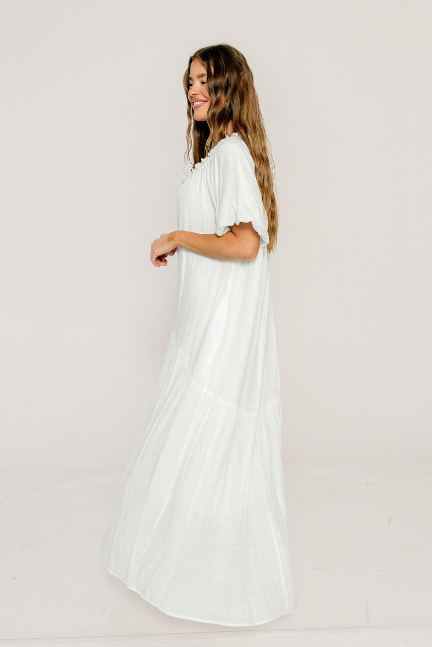 Christina Puffed Sleeve Maxi Dress in Off-White - Bump Friendly