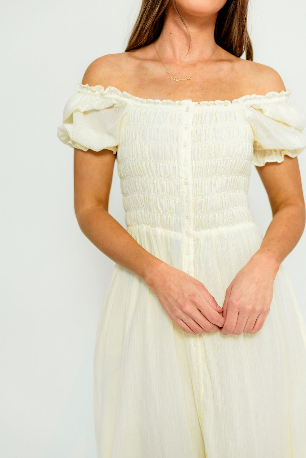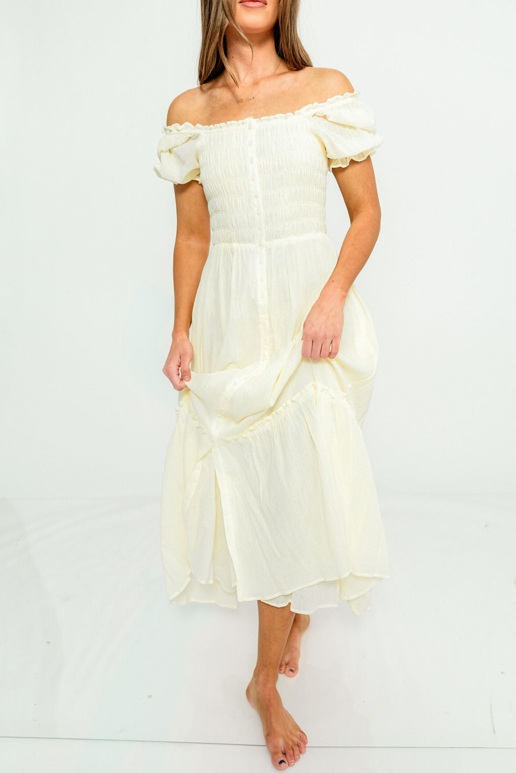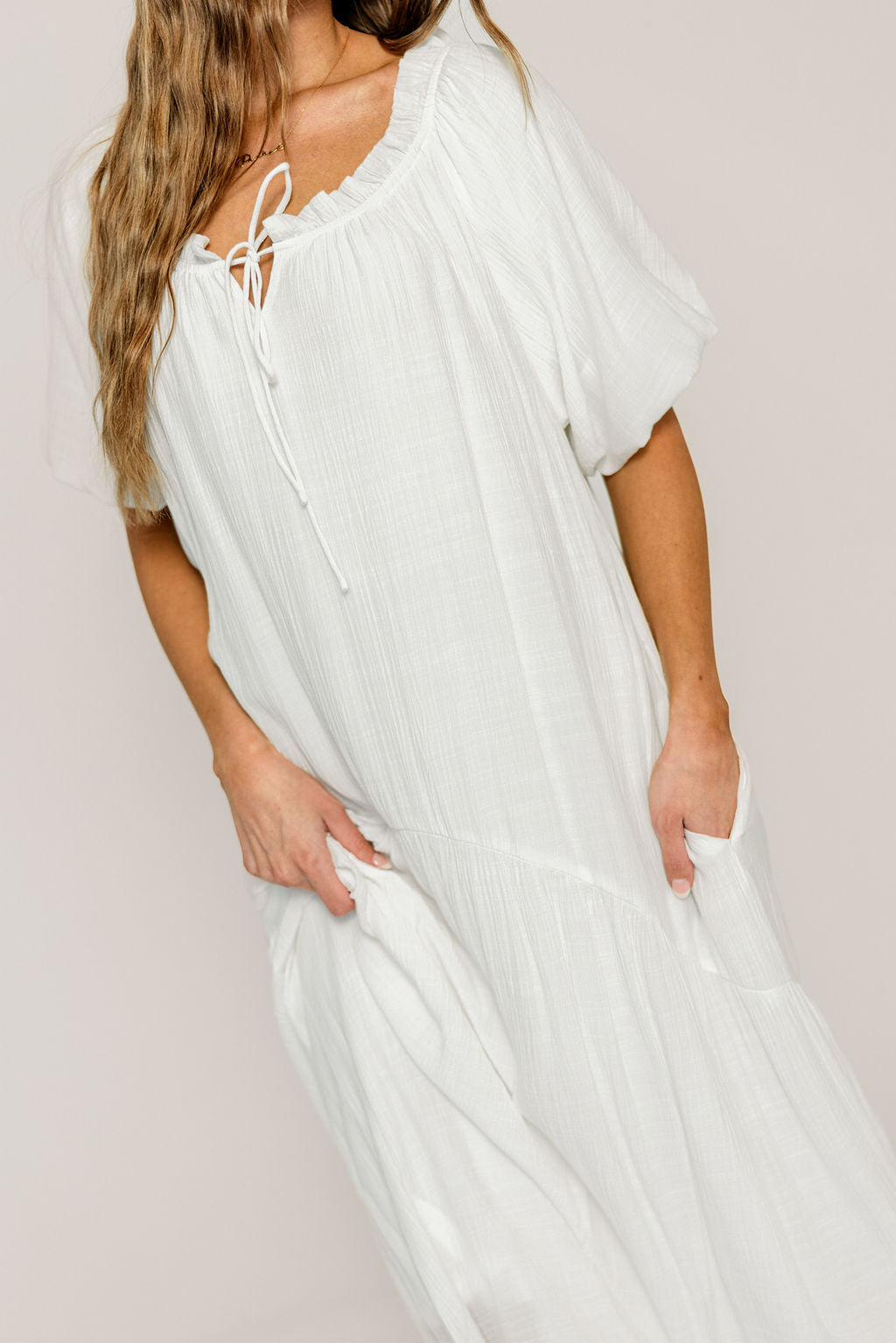 Christina Puffed Sleeve Maxi Dress in Off-White - Bump Friendly