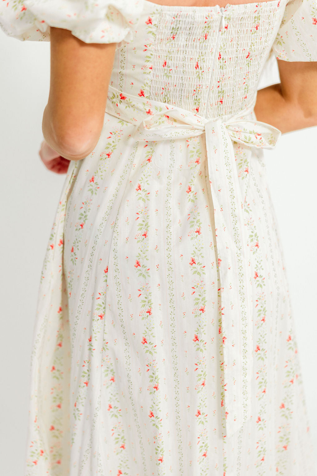 Nya 100% Cotton Smocked Midi Dress in Cream Blue Floral