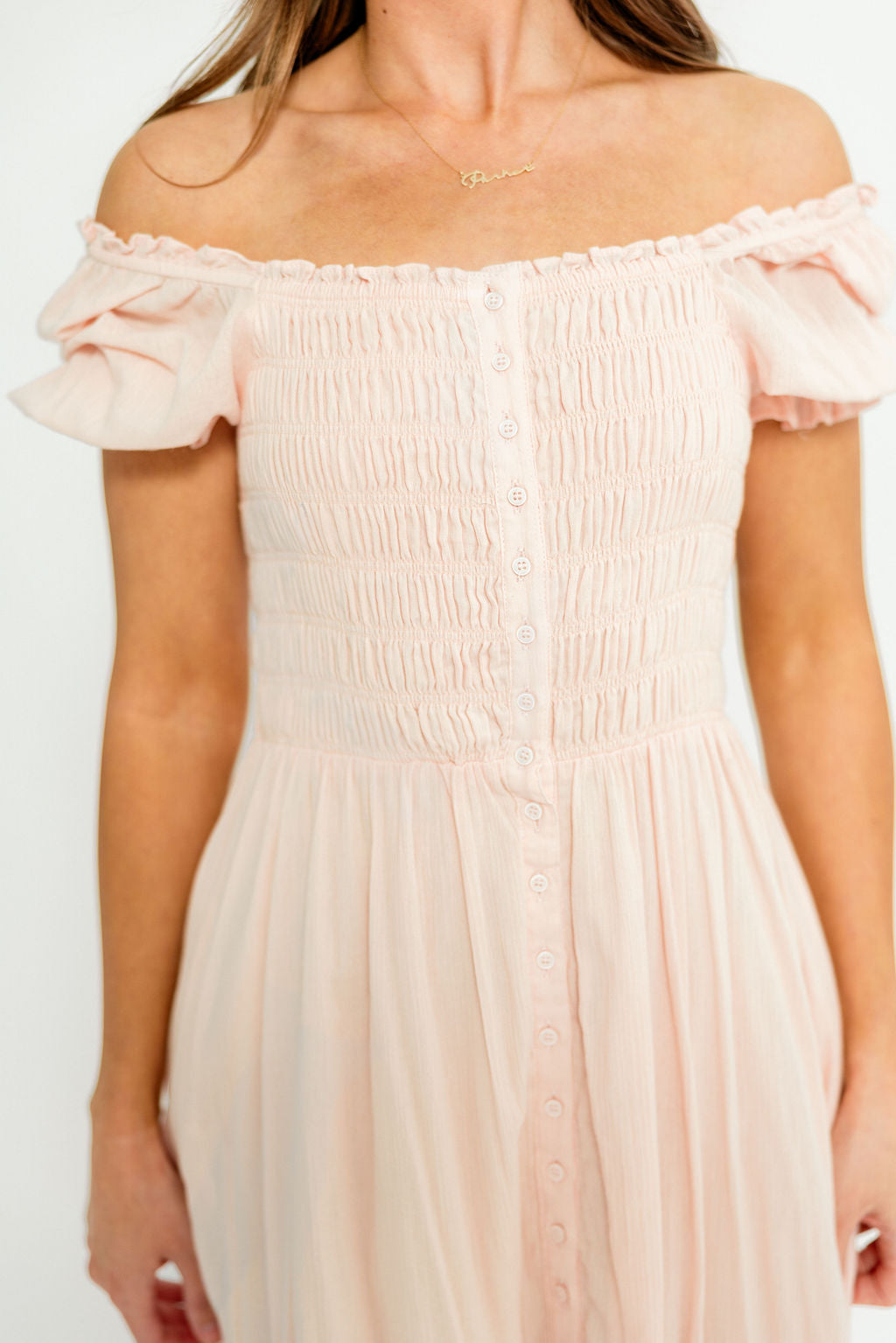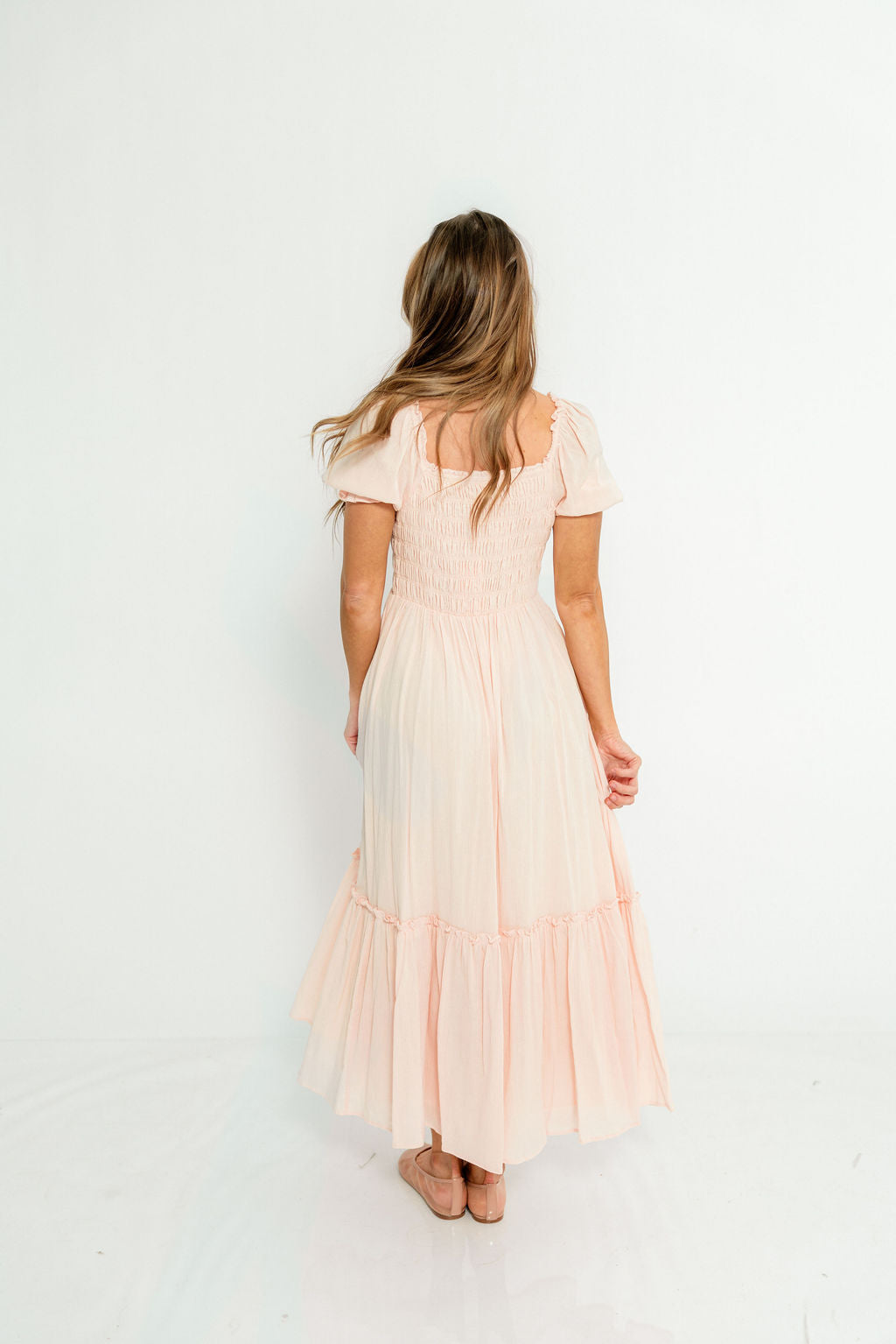 Mara Smocked Button Down Maxi Dress in Pastel Pink
