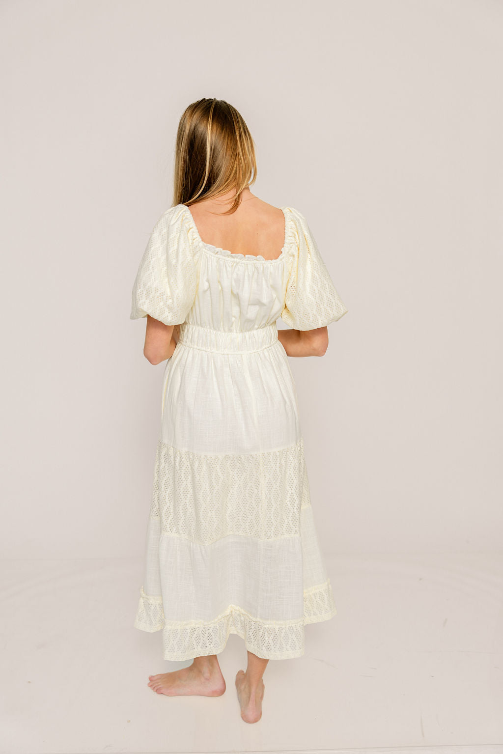 Miriam Cotton Lace Inset Maxi Dress in Buttercream