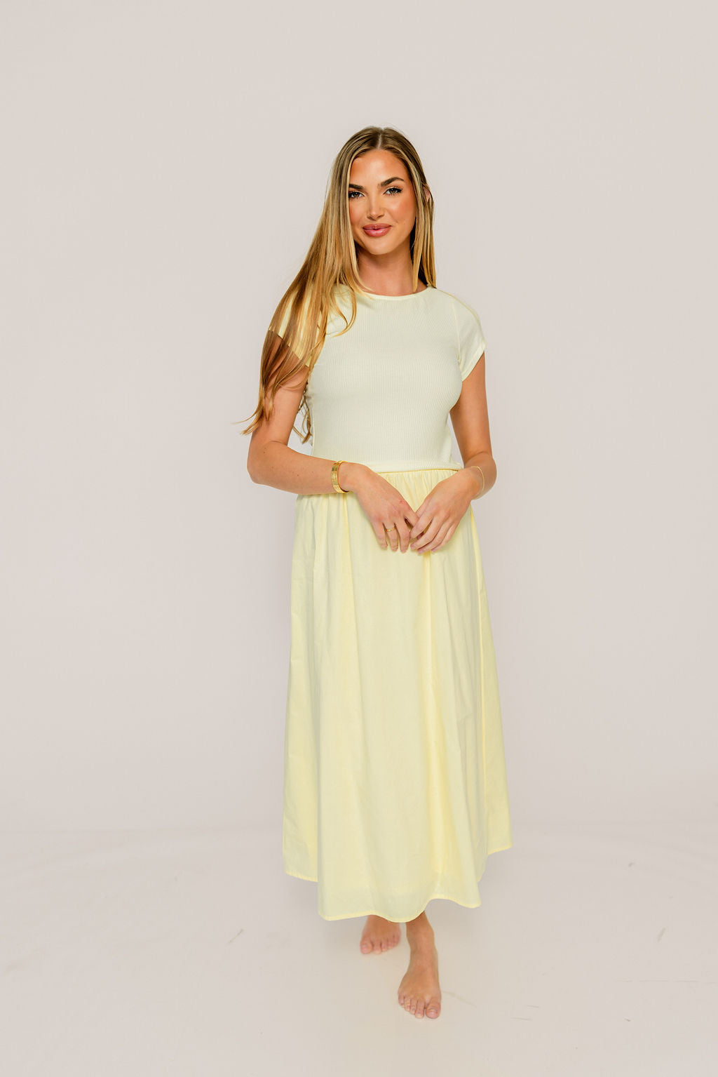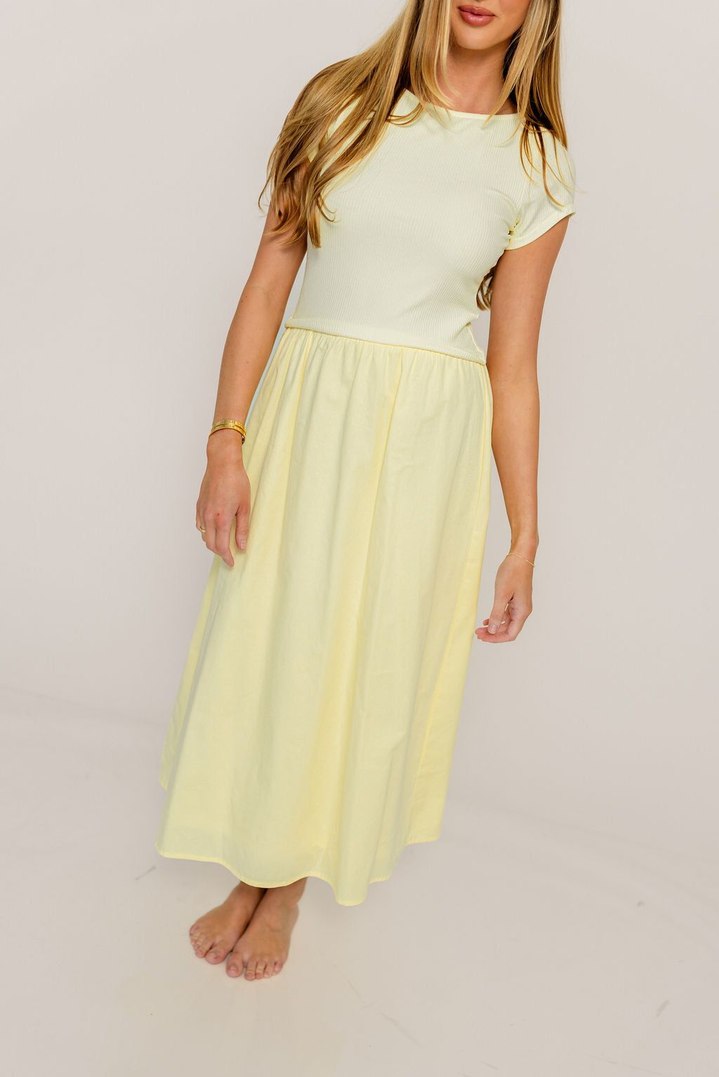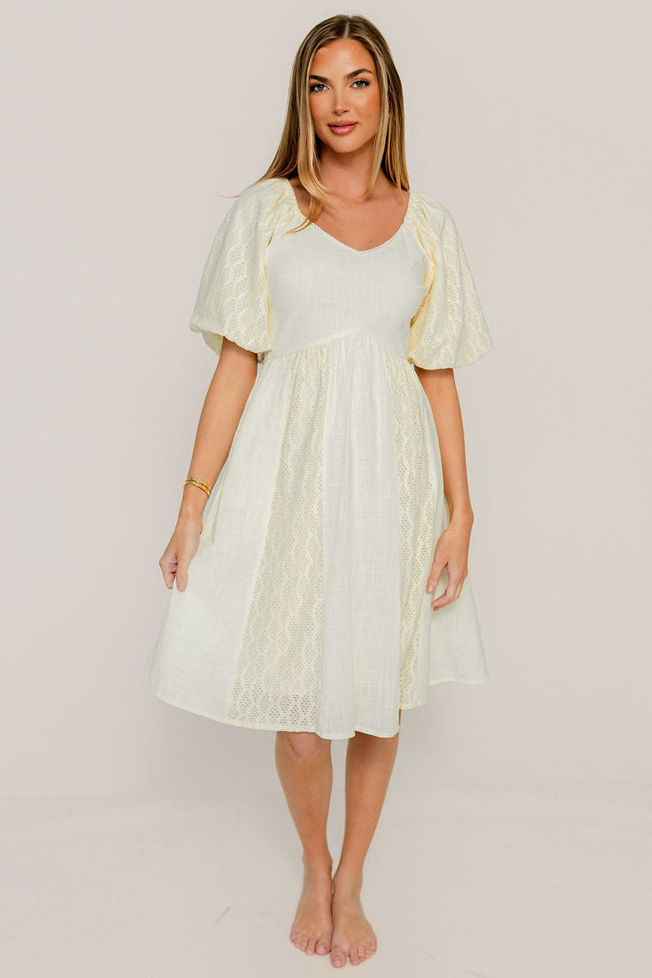Romy Mixed Media Midi Dress in Light Yellow